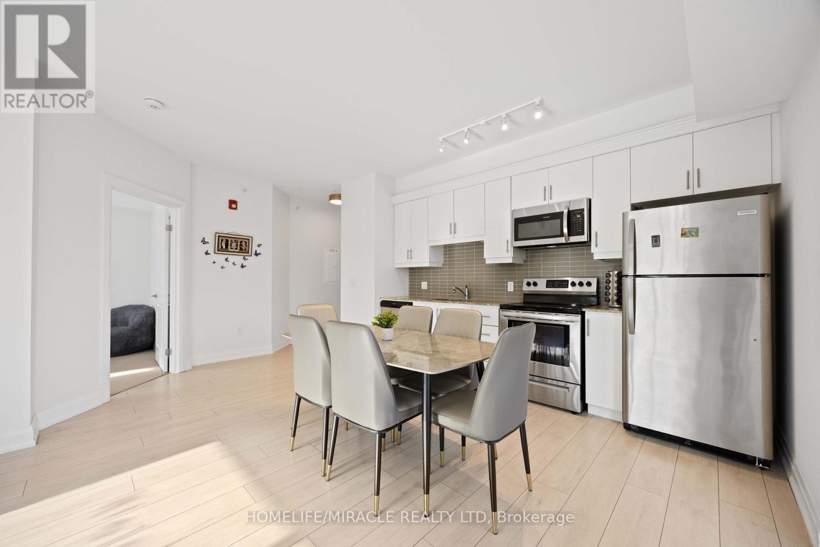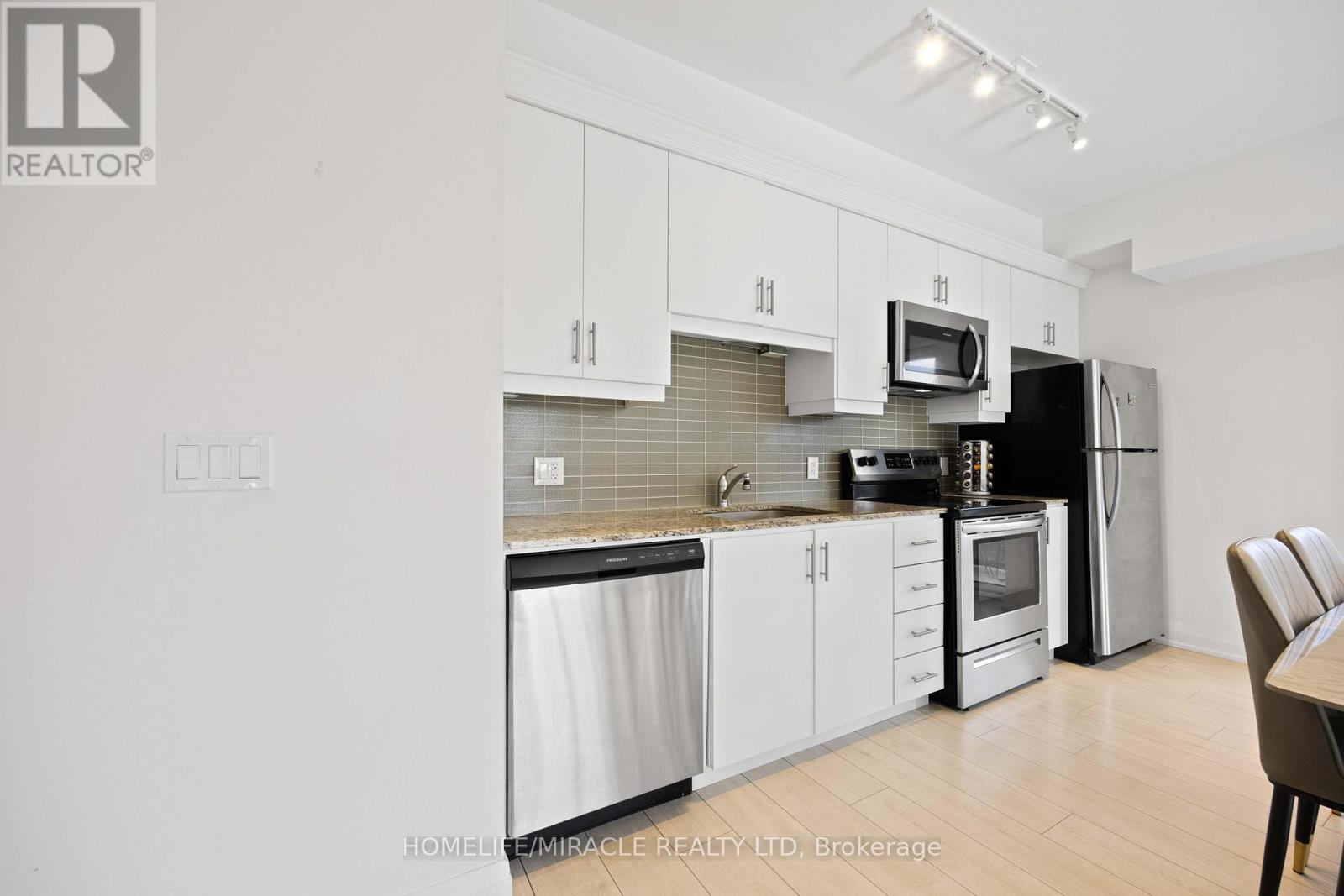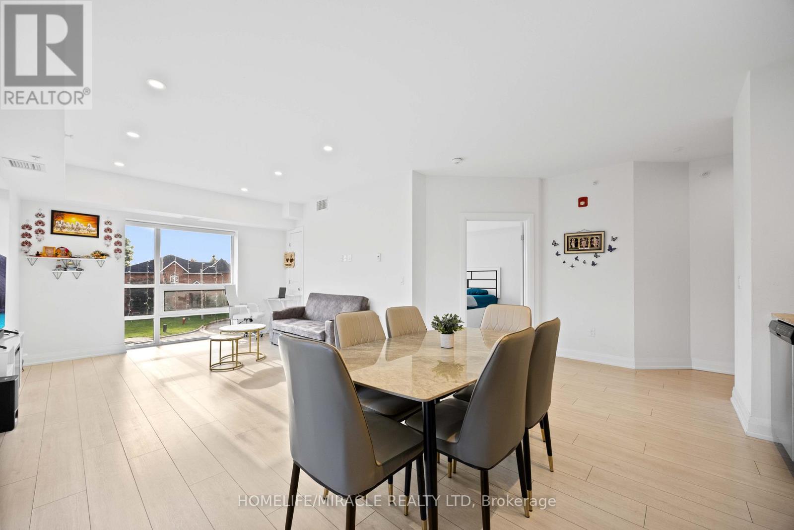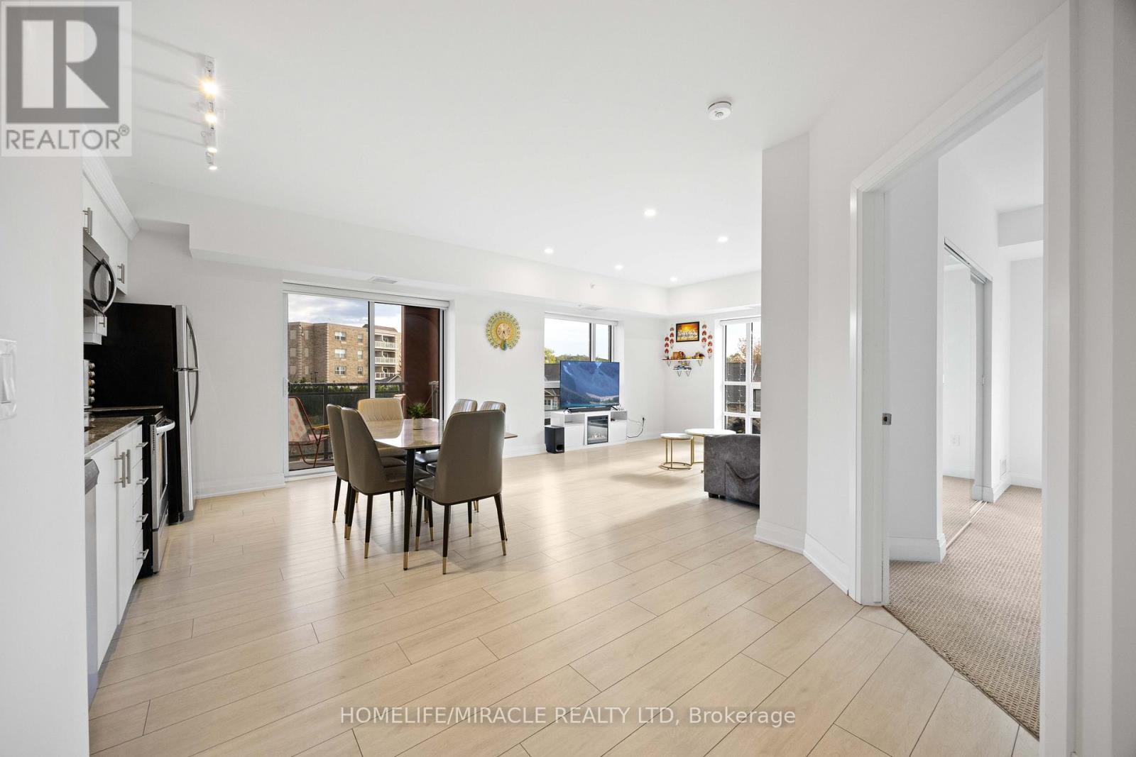 Welcome to this exceptional corner suite, perfectly situated in the heart of the highly sought-after Tansley neighbourhood. This bright and beautifully designed 2-bedroom, 2-bathroom residence offers an open-concept layout enhanced by soaring 9-foot ceilings and expansive floor-to-ceiling windows that flood the space with natural light while capturing tranquil south and east-facing views. With no neighbours on either side, the suite offers a rare sense of privacy, complemented by a private balcony ideal for relaxing or entertaining. The spacious primary bedroom features a luxurious 4-piece ensuite, while the second bedroom is thoughtfully appointed with wall-to-wall closets, providing generous storage. Elegant wide-plank laminate flooring flows throughout the home, leading into a contemporary kitchen complete with sleek white flat-panel cabinetry, granite countertops, and stainless-steel appliances-perfectly blending style and functionality. Additional highlights include in-suite laundry, abundant closet space, a storage locker on the same floor for convenience, and one underground parking space. Ideally located close to shopping, dining, parks, and transit, this refined condo offers the perfect balance of comfort, sophistication, and everyday convenience, an exceptional place to call home. (id:4555)