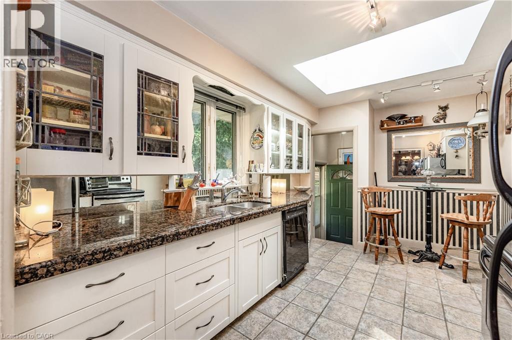 Located across the road from the lake this home has approximately 2400 sq ft of finished living space.The living room offers a cozy stone fireplace,ceiling coving and oak floors.There is easy access to the back deck through the dining room sliding doors were you can relax while over looking the fish and flower water pond with water fall, spacious stone patio and hot tub.Upgrades in the kitchen include a bright and cheery skylighy,new cupboards and pullout drawers and granite counter tops with mirrowed backsplash.Main bath upgrades include a whirpool soaker tub with marble surround,pedistal sink ,separate shower and marble flooring. The lower level offers a large guest suite, 4pc bath ,rec room,profesional workshop with built in work bench,music room(den),storage and large laundry room. (id:4555)