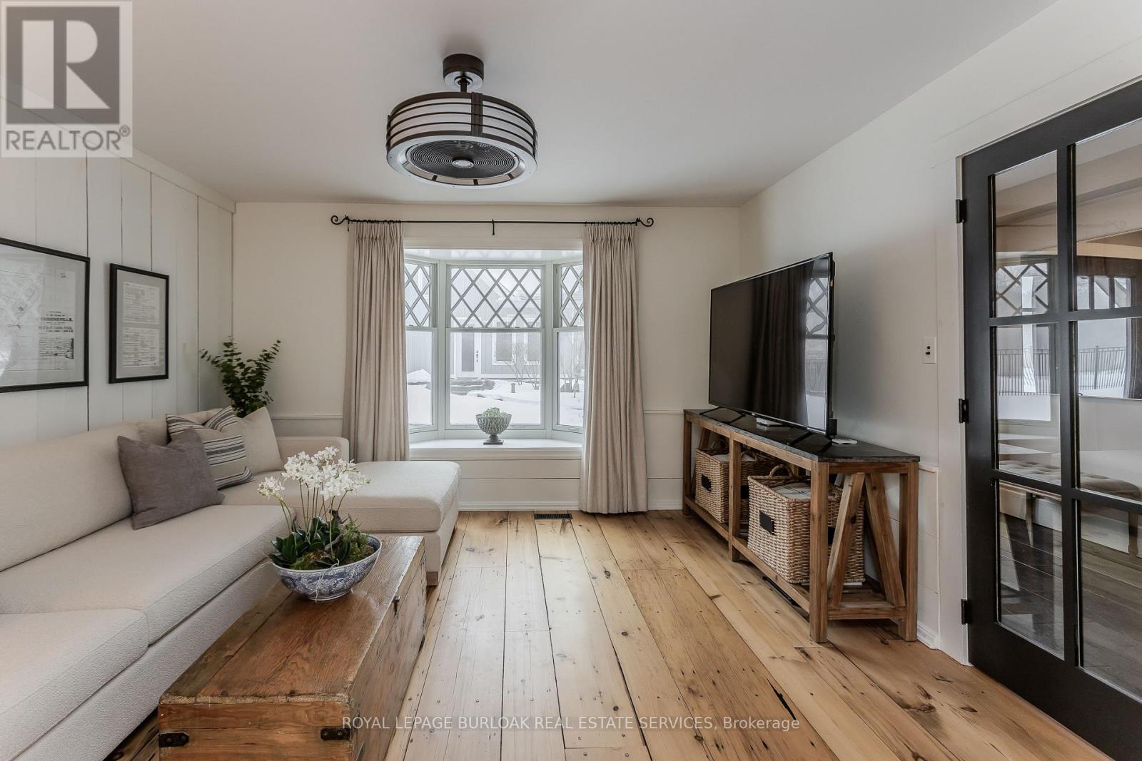 Discover the perfect blend of rural charm and refined luxury on an exceptional property that offers the tranquility of country living while remaining just mins from Burlington's everyday amenities, schools, shopping, and hwys. Set behind automated custom gates is a home steeped in history and charm, professionally renovated from top to bottom and is completely move in ready. A welcoming foyer with heated floors sets the tone, while beautiful original (1865) and reclaimed wood floors, 8" baseboards, and designer lighting add warmth throughout. The heart of the home is the eat in kitchen featuring concrete and quartz countertops, custom cabinetry, SS appliances, wood beam accents, tile backsplash, and a breakfast bar. Multiple gathering spaces offer flexibility for living and entertaining, including a living room with stone-surround fireplace, formal dining room, and a family room with wood paneling, french doors, and a bay window. A main-floor bedroom and beautifully renovated 3pc bath with heated floors and glass shower provide ideal space for guests or multigenerational living. Upstairs, the expansive primary retreat impresses with vaulted 12' ceilings, automated blinds, private balcony, and a custom California Closets walk-in. The spa-inspired ensuite features a freestanding tub, and glass walk-in shower. 2 additional spacious bedrooms and a stylish 4pc bath complete the level. The heated garage/rec room is a dream entertainment space, and offers polished concrete floors, and an EV charger rough-in. The partially renovated lower level provides excellent storage, laundry with new machines, a workbench, and walkout cellar doors. Outdoors, the fully fenced backyard is a true private retreat with a professionally landscaped stone patio, flagstone pathways, inground pool, hot tub, fire pit, and large shed-perfect for family gatherings, summer entertaining, and peaceful evenings under the stars. (id:4555)