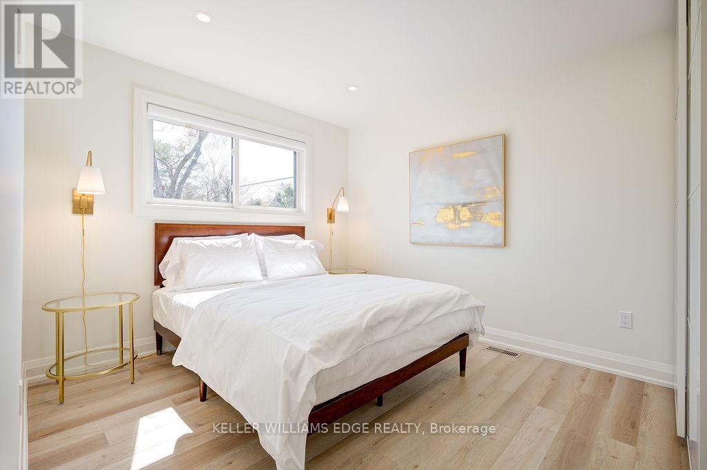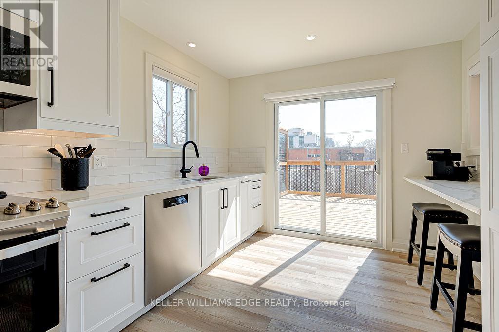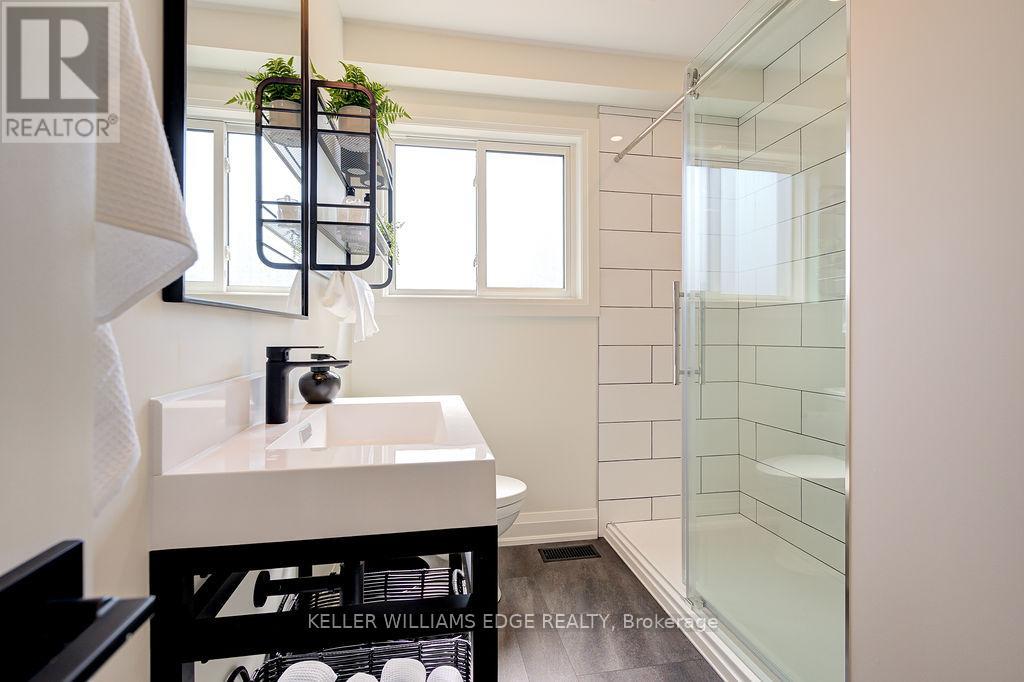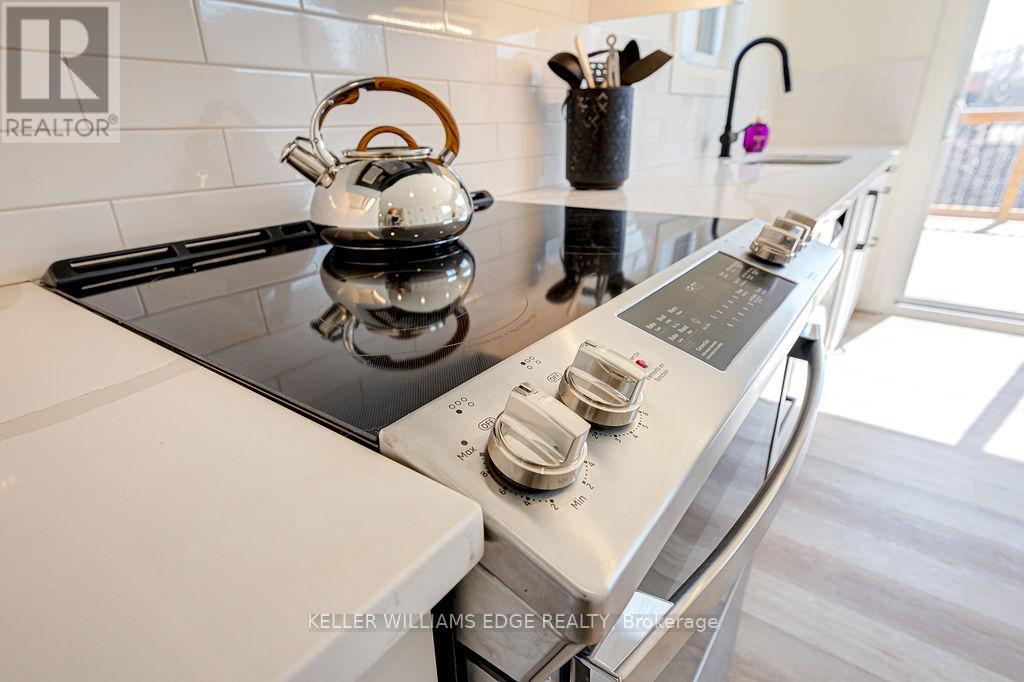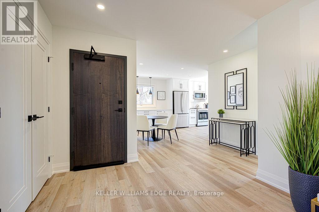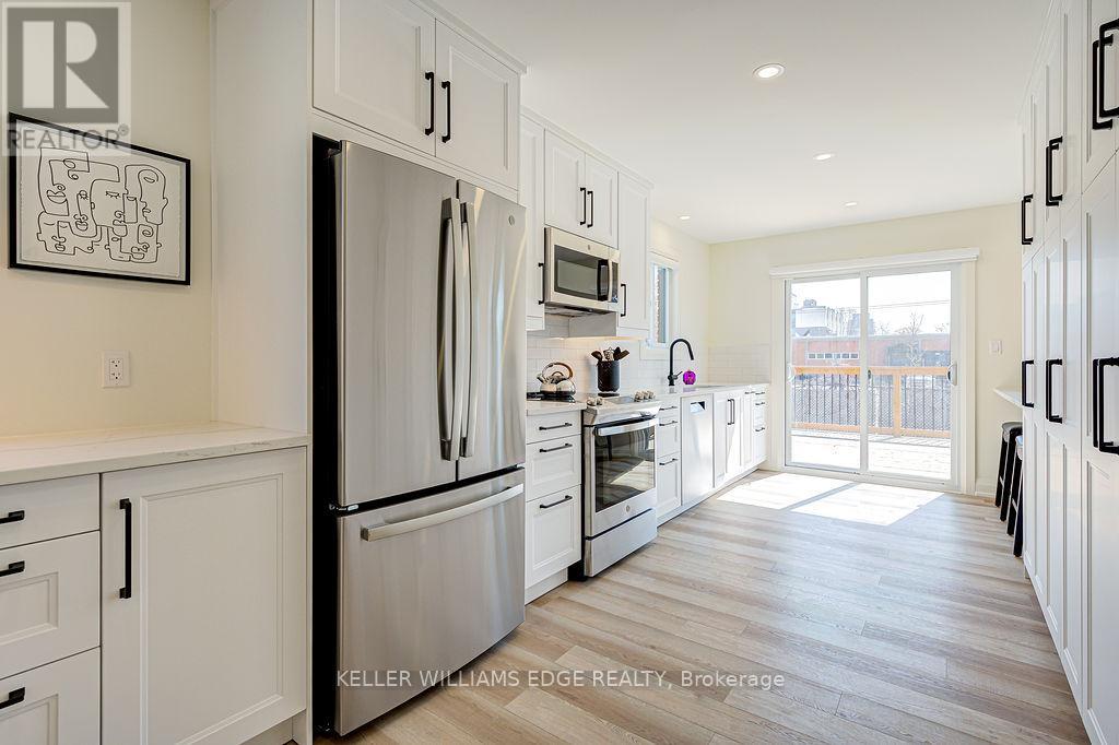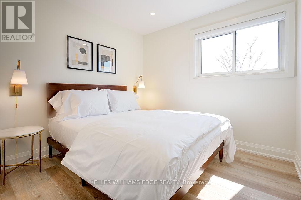 FULLY FURNISHED all inclusive Short or Long Term RENTAL Stunning luxury 2-bedroom, 1-bathroom, main floor suite located in boutique building. Elegantly appointed and beautifully upgraded suite features a purposeful layout with wide plank luxury vinyl hardwood throughout the open concept kitchen, dining and living rooms. This bright and spacious fully furnished suite features a comfortable living space with plush sofa and chairs, glass office desk with display shelving flanking and smart TV. Enjoy the chef-style kitchen, complete with floor to ceiling white shaker cabinetry, premium quartz countertop, full-sized stainless-steel appliances, including dishwasher and built-in microwave, tile backsplash, under cabinet lighting, breakfast bar and sliding glass patio door leading to the large private deck. Bedrooms are serene with neutral colour palettes, nightstands, quality linens, and wardrobe with plenty of storage. Spa-inspired bathroom with glass walk-in shower featuring rain head, adjustable handheld shower arm, modern pedestal sink, and full-sized stackable washer and dryer. Suite includes 2 car parking. Located steps to the exquisite downtown Burlington waterfront, Spencer Smith Park, boutique shops, restaurants, QEW, 403, 407 and GO. No smokers, all residents must qualify to lease suite. (id:4555)
