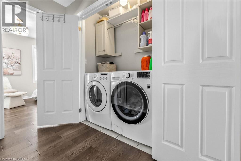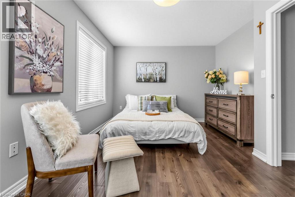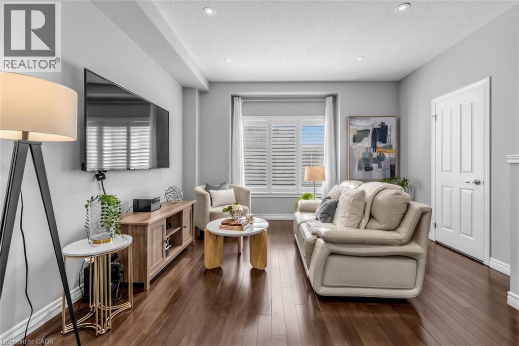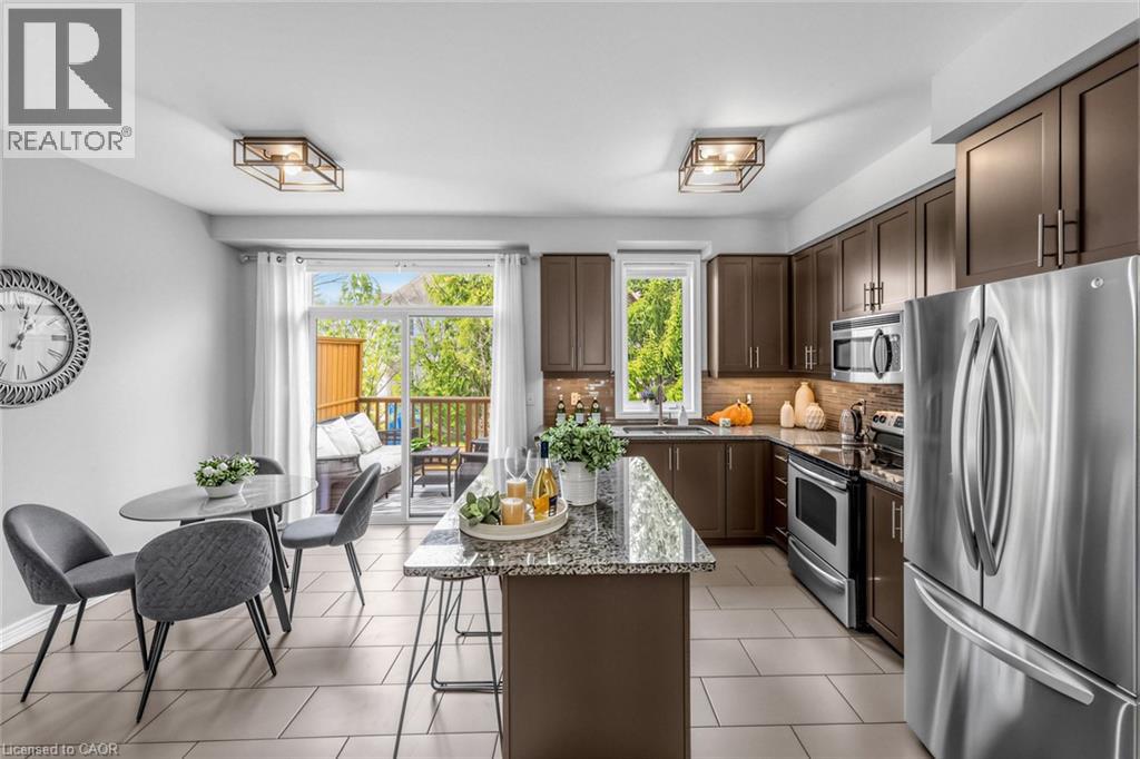 Bright and spacious, beautifully upgraded Branthaven luxury townhome located in the desirable Millcroft community. This home offers 3 bedrooms and 2.5 bathrooms with a functional and stylish layout. The main level features a versatile third bedroom with a 4-piece bathroom, convenient inside access to the garage, and a walkout to the private backyard wooden deck. The second level offers 9-ft ceilings and an open-concept living and dining area with hardwood floors and pot lights, creating a bright and welcoming space. The spacious kitchen includes a dinette area, centre island, stainless steel appliances, granite countertops, and extended cabinetry, with a walkout to an elevated private deck-perfect for entertaining or enjoying morning coffee. Convenient third-level laundry includes a front-load washer and dryer. The upper level also features an updated bathroom with a separate tub and shower, upgraded lighting throughout, and generous bedroom space. Wood staircases, engineered hardwood flooring, and the main level deck were updated, along with an upgraded powder room vanity. The home backs onto a private, treed common area, providing added privacy and a peaceful setting. Low condo road maintenance fees. Situated in Burlington's highly sought-after Millcroft neighbourhood, known for its tree-lined streets, executive homes, and the renowned Millcroft Golf Course. Close to top-rated schools, Tansley Woods Community Centre, shopping, restaurants, and with easy access to Highways 403, 407, and the QEW, Appleby GO for convenient commuting to Toronto, Oakville, and Hamilton. (id:4555)