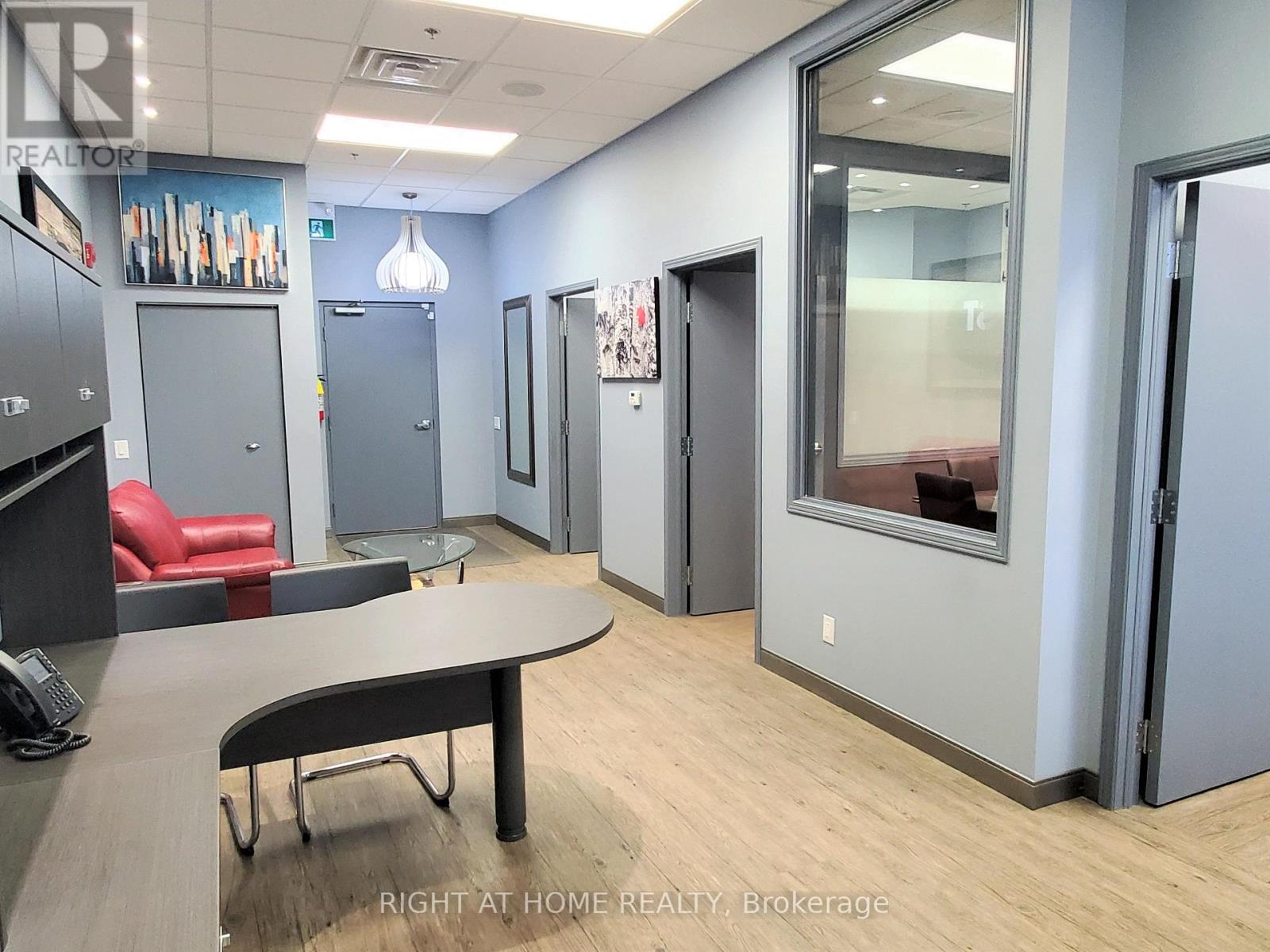 RARE CHANCE to actually OWN a modern fully built-out PROFESSIONAL OFFICE COND UNIT in an affluent neighborhood plaza with excellent main intersection exposure to two thru-streets! There's plenty of onsite free parking for staff and visitors, elevator to 2nd floor, quiet setting, ideal for Business Professionals (Lawyer, Accountant, Financial Planner, Engineer, Architect, Insurance Broker, Real Estate Team, Consultant, Doctor, Medical Clinic, Therapist). Upscale quality professional finishes. Very bright south/west panoramic views, natural light throughout. Designer décor. LED & pot lights. 3 private offices all sound-insulated walls. Large Reception and Lounge area. Storage and utility closets. Sprinkler system, oversized rooftop HVAC system, premium energy efficient and very quiet transformer. High traffic flooring system. Versatile space, lends itself to many applications. Excellent location. Public transit right in front of building. Just 4 blocks south of Highway 407, and a few minutes from QEW/403, GO Bus Station, 20 minutes to Pearson International Airport. Diverse commercial plaza featuring existing Health & Medical, Clinics, Daycare, Education, Food, Retail, Insurance, Real Estate, and various Professional Services. Located between 2 giant schools on the same street, in a high-priced residential neighborhood in North Burlington. Why pay rent when you can invest in your own space! (id:4555)