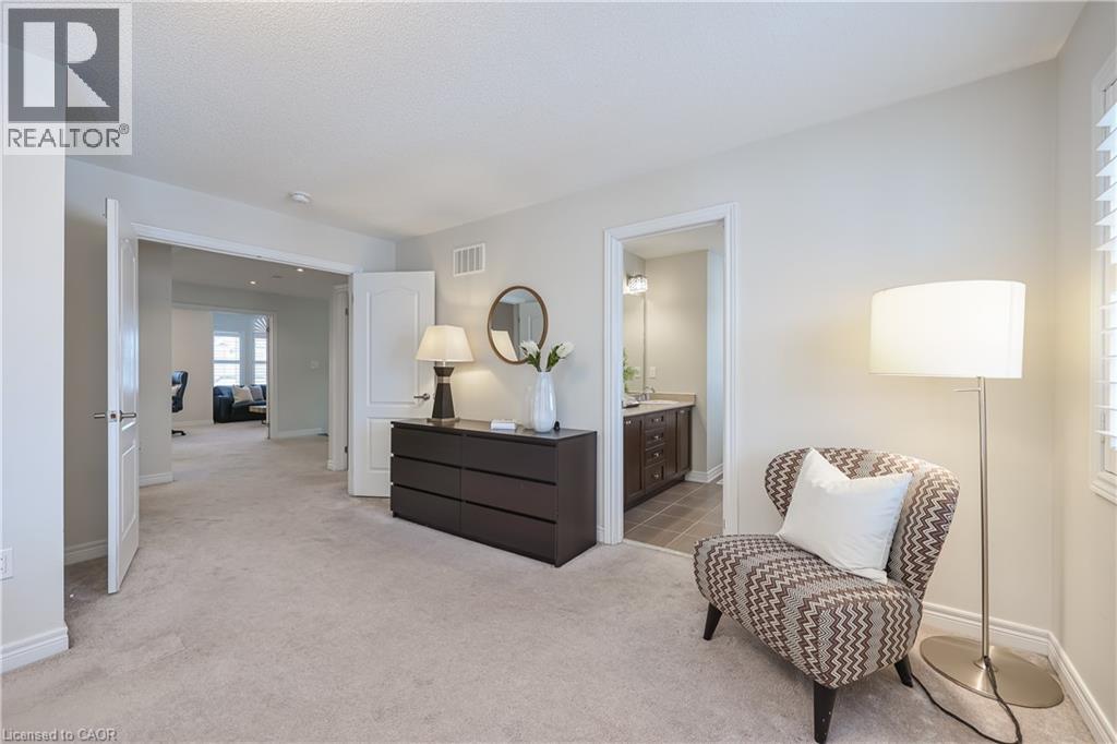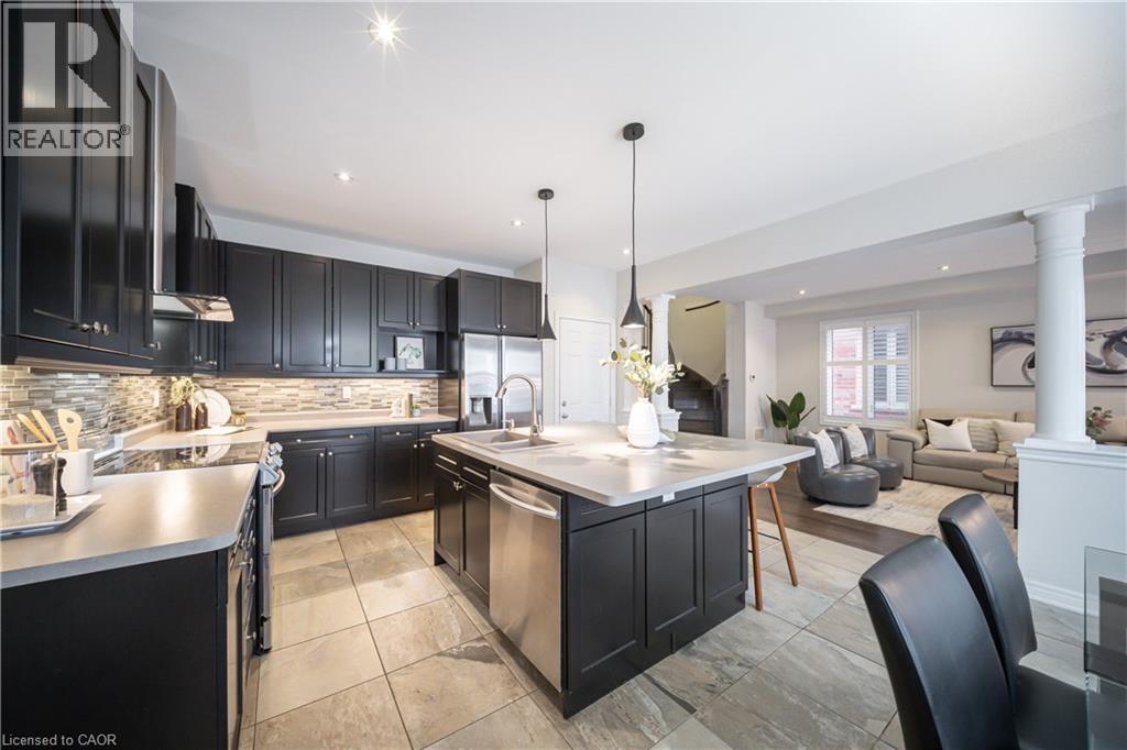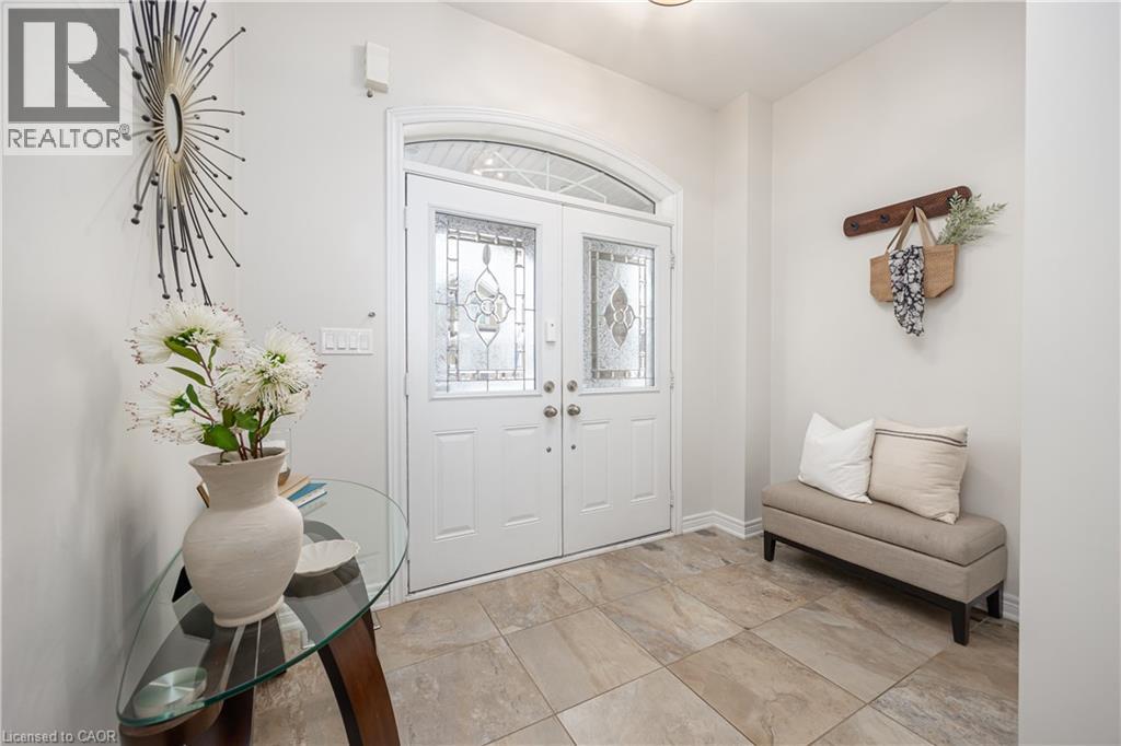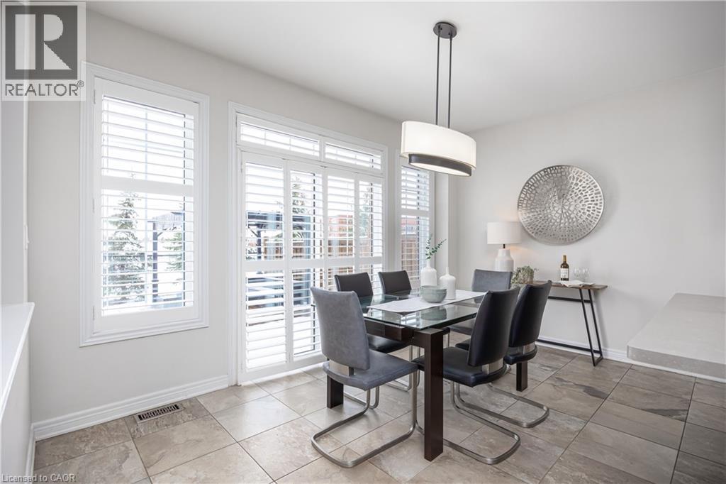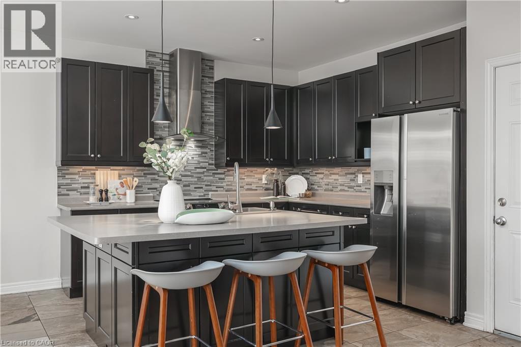 Nestled on a quiet and private street in sought-after Alton Village, this beautiful Fernbrook built home showcases the “Cornerstone” model, offering a beautifully designed layout that seamlessly blends comfort, style, and functionality. A double-door entry welcomes you into the open-concept main level, where 9-foot ceilings, hand-scraped hardwood flooring, pot lighting, and a gas fireplace with a custom feature wall that creates a warm and sophisticated ambience. The oak staircase with wrought-iron spindles adds an architectural element to the space. At the heart of the home is the chef-inspired kitchen, thoughtfully designed for both everyday living and entertaining. It features stainless steel appliances, upgraded cabinetry with ample storage, under-cabinet lighting, a stylish glass tile backsplash, and an impressive 5 ft x 6 ft oversized island—perfect for gathering with family and friends. The second level offers three spacious bedrooms and a bright, expansive family room that can easily be converted into a fourth bedroom if desired. The primary suite complete with a walk-in closet and a 5-piece ensuite featuring a glass shower and a relaxing soaker tub. Two additional generously sized bedrooms share a 4-piece bath, while the convenient upper-level laundry room adds everyday practicality. The basement features a 3-piece rough-in, cold room, and approximately 985 sq. ft. of additional space ready to be customized to suit your lifestyle. Step outside to your private, fully fenced backyard featuring a pergola and hot tub, backing directly onto a school and green space—providing both privacy and a serene setting for outdoor relaxation and entertaining. Perfectly located close to Burlington’s top-rated schools, parks, shopping, and amenities, this exceptional home offers the ideal blend of comfort and functionality. A must-see opportunity in one of Burlington’s most desirable communities. (id:4555)