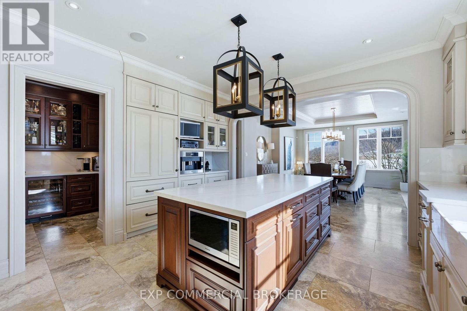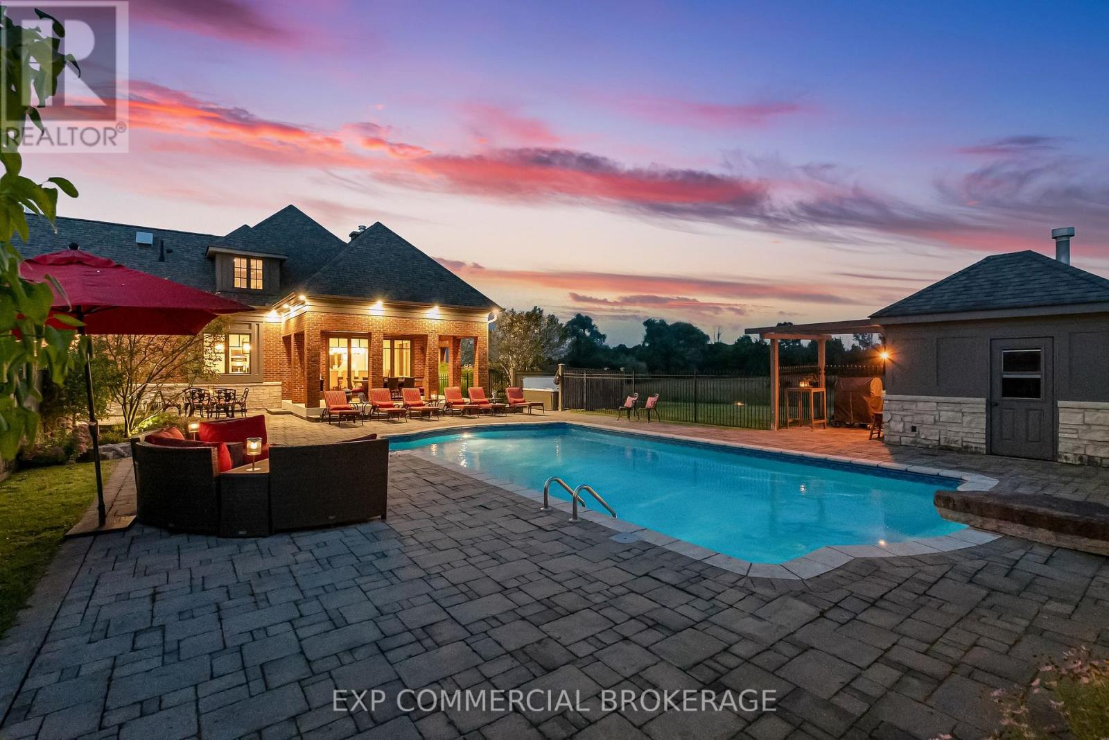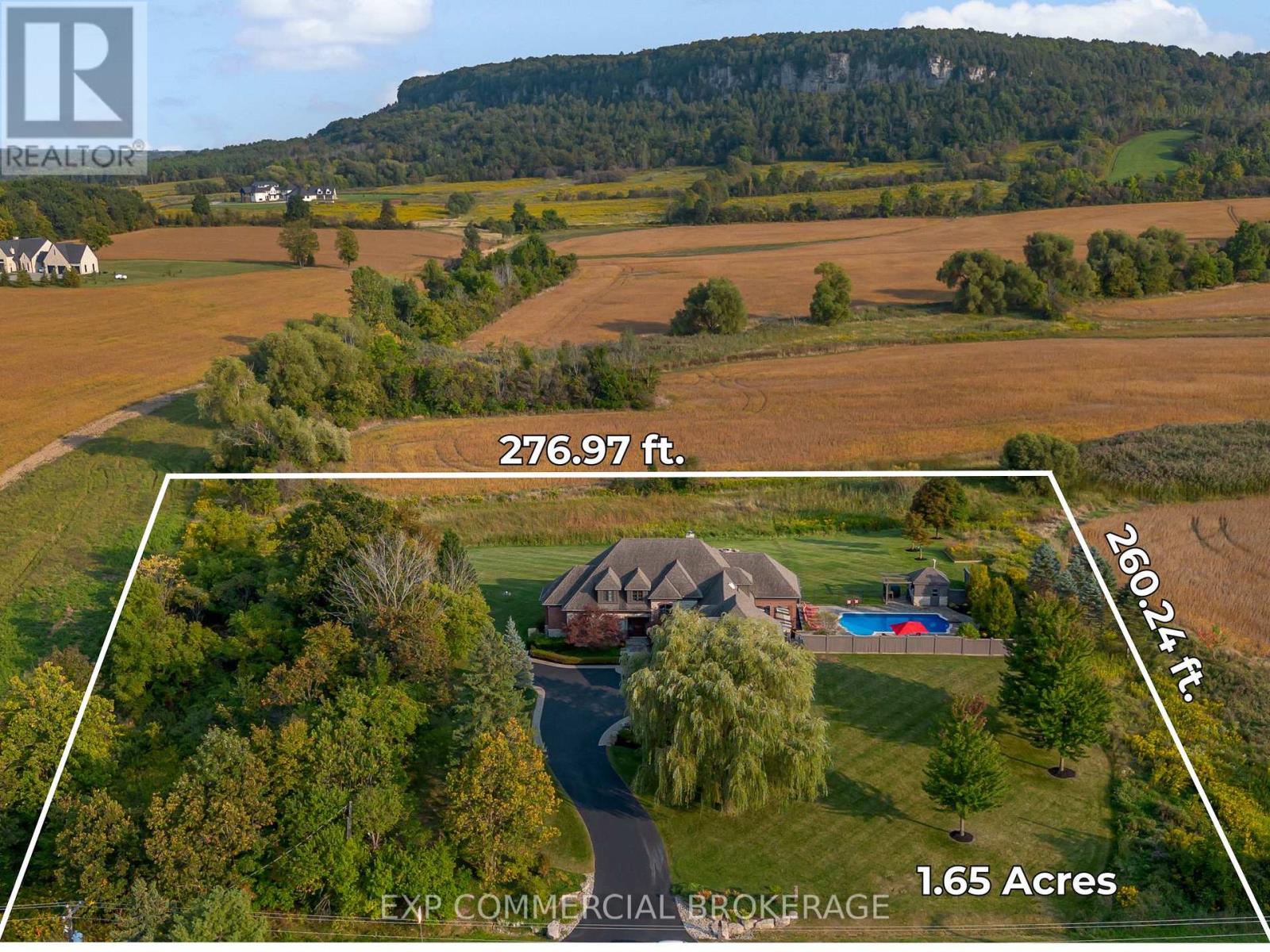A rare opportunity to enjoy a private, cottage-like escape without ever leaving home. Set on manicured, meticulously maintained grounds, this property offers complete privacy and a serene atmosphere that feels worlds away-yet remains minutes from top private and public schools, prestigious golf courses, parks, trails, and local farms. This beautifully designed custom two-storey home features over 5,300 sq. ft. of finished living space, crafted with exceptional attention to detail. The moment you enter, you're greeted by designer finishes and architectural touches, including a sunken family room with wood-beamed ceilings and a striking Owen Sound stone wood-burning fireplace. With 5 bedrooms and 6 bathrooms, the home blends luxury living with true resort-style amenities. It's ideal for both intimate family living and large-scale entertaining, indoors and out. The backyard is a private oasis, perfect for hosting gatherings or enjoying peaceful summer days. A large covered porch overlooks the in-ground heated pool, hot tub, cabana, and fire pit-an inviting space for sunset views, roasting marshmallows, or unwinding in total seclusion. The fully finished lower level extends the home's entertainment and lifestyle appeal, offering a private gym, oversized bar, expansive media area with surround sound, wine room, dedicated office, and an additional bedroom with a 3-piece bathroom. This is more than a home-it's a sanctuary, a retreat, and a place to live, entertain, and escape in complete privacy. (id:4555)