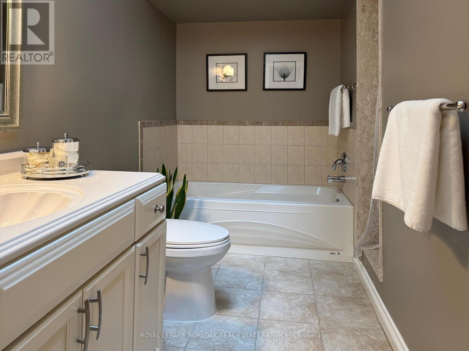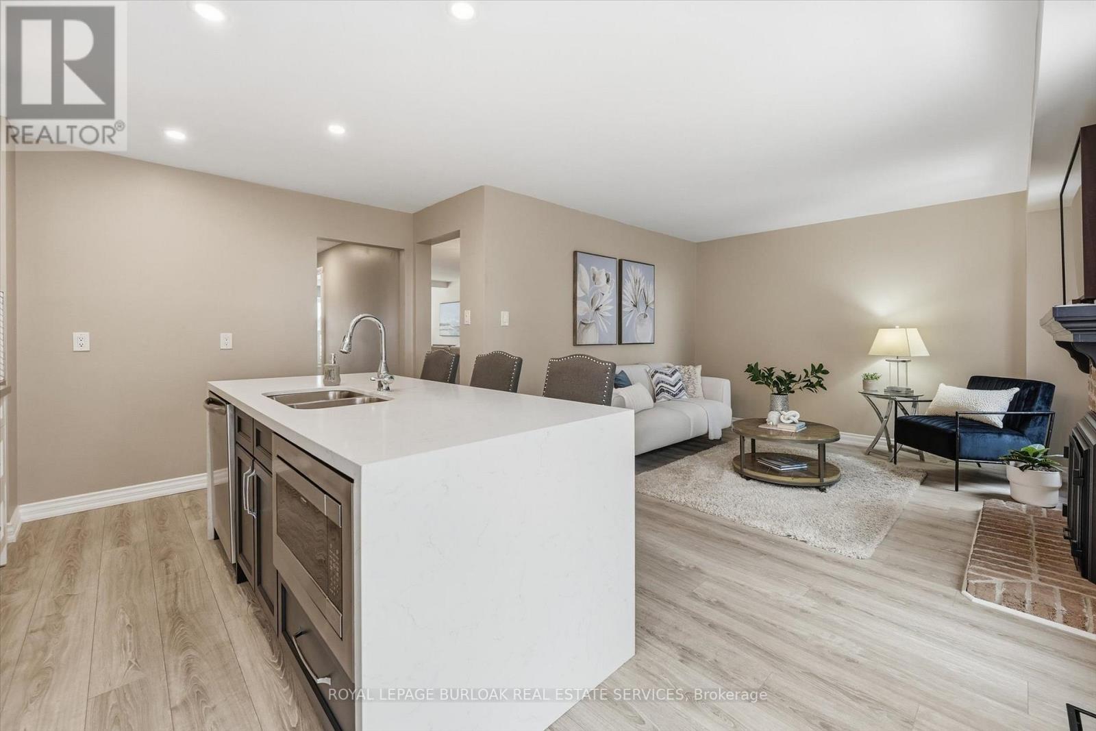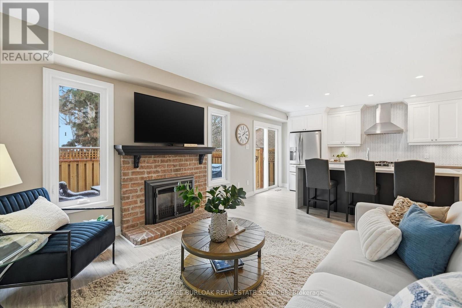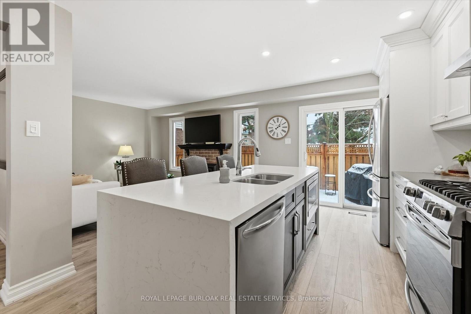 Gorgeous updated town home in the sought after South East Burlington steps to the Lake & all amenities. A small enclave of owners in a private setting with mature trees, gardens, parks and tree lined neighbourhoods for walking and enjoying life. The home has recently been updated with new flooring throughout, a stunning open concept chefs kitchen with large quartz island, backsplash, custom cabinetry, breakfast bar, pot lighting open to a cozy family room with natural gas fireplace, bright natural light and a walk-out to your private sun deck for outdoor dining/bbq area. Separate dining area with plenty of space for large gatherings open to a spacious living room for entertaining. The 2nd floor features two large primary bedrooms with spacious ensuites, large windows/natural light/skylights. The lower level has been fully finished with 3 piece bathroom, comfortable den and office space. This house is perfect for families, down sizers, retirees and those looking to lock up and go. Move in and enjoy. New A/C & furnace. HOA includes snow removal to the door, salting, all landscaping. Close to Go Train, Highway access, Lake Ontario, grocery, restaurants and banking. Move in ready. (id:4555)
