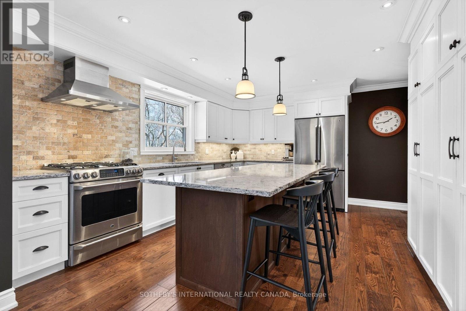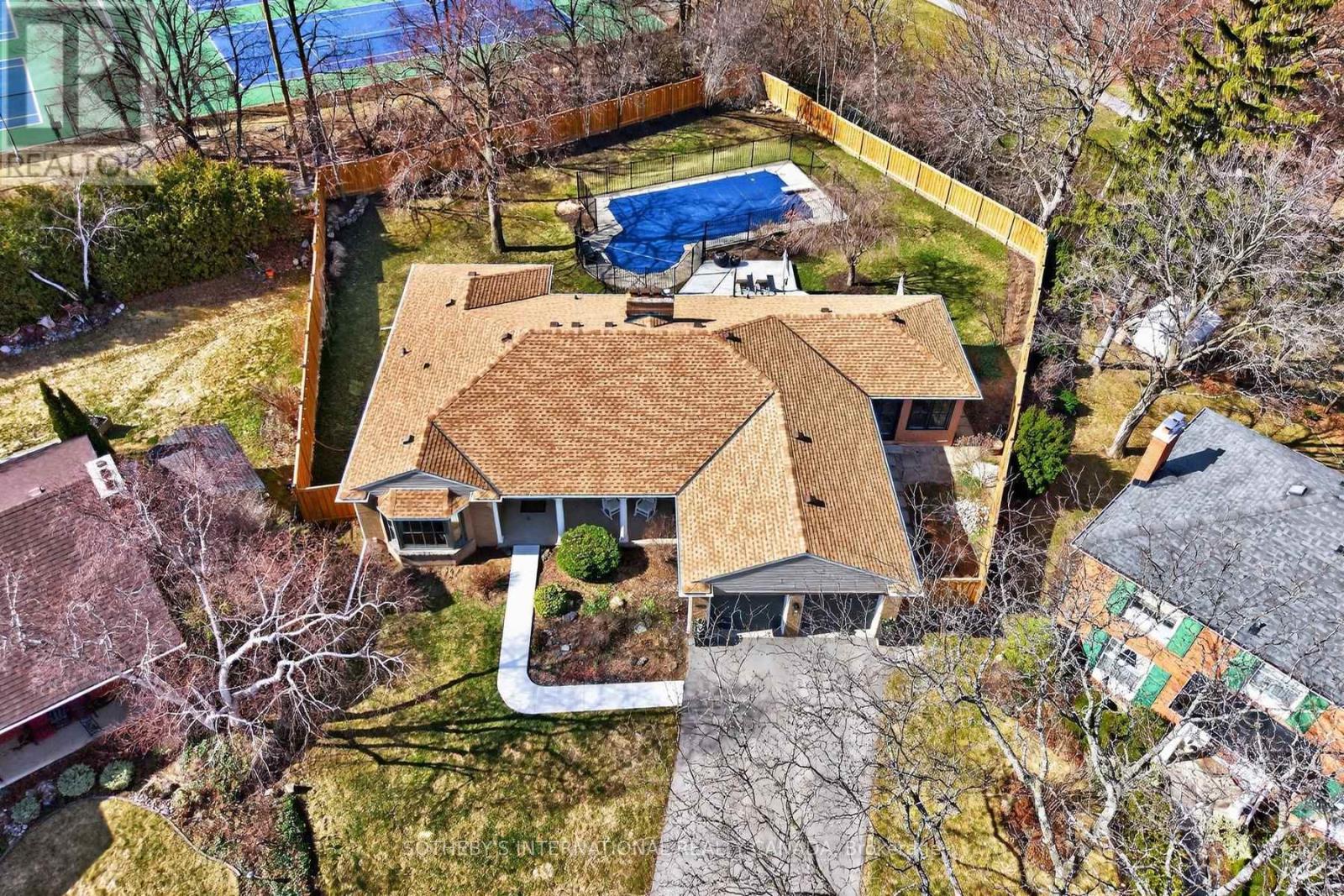 Welcome to 1582 Frontenac Place, a beautifully renovated sprawling bungalow in Burlington's highly sought-after Tyandaga neighbourhood. Located on a quiet court and backing onto Tyandaga Golf Course, this exceptional home offers over 4,000 sq ft of finished living space, including more than 2,000 sq ft on the main level-ideal for those seeking spacious main floor living. A classic centre hall floor plan offers generous principal rooms and a layout designed for both everyday comfort and entertaining. The eat-in kitchen overlooks the private backyard, where mature trees, professional landscaping, and a sparkling inground pool create a peaceful outdoor retreat. At the front of the home, the family room looks out toward the quiet court and expansive front porch, a welcoming place to relax and enjoy the neighbourhood setting. A charming Muskoka-style room provides a tranquil space to unwind while taking in views of the beautifully landscaped yard. The home offers 2+2 bedrooms and 4 bathrooms, with a fully finished lower level providing additional living space, bedrooms, and well-appointed storage areas. Set on an oversized pie-shaped lot, the fully fenced backyard features an inground pool, expansive deck, generous lawn space, and mature gardens, all backing onto the golf course for exceptional privacy. Located moments from Kerncliff Park, the Bruce Trail, and Tyandaga Tennis Club, this home offers access to some of Burlington's most renowned hiking and outdoor spaces while remaining close to everyday amenities. (id:4555)