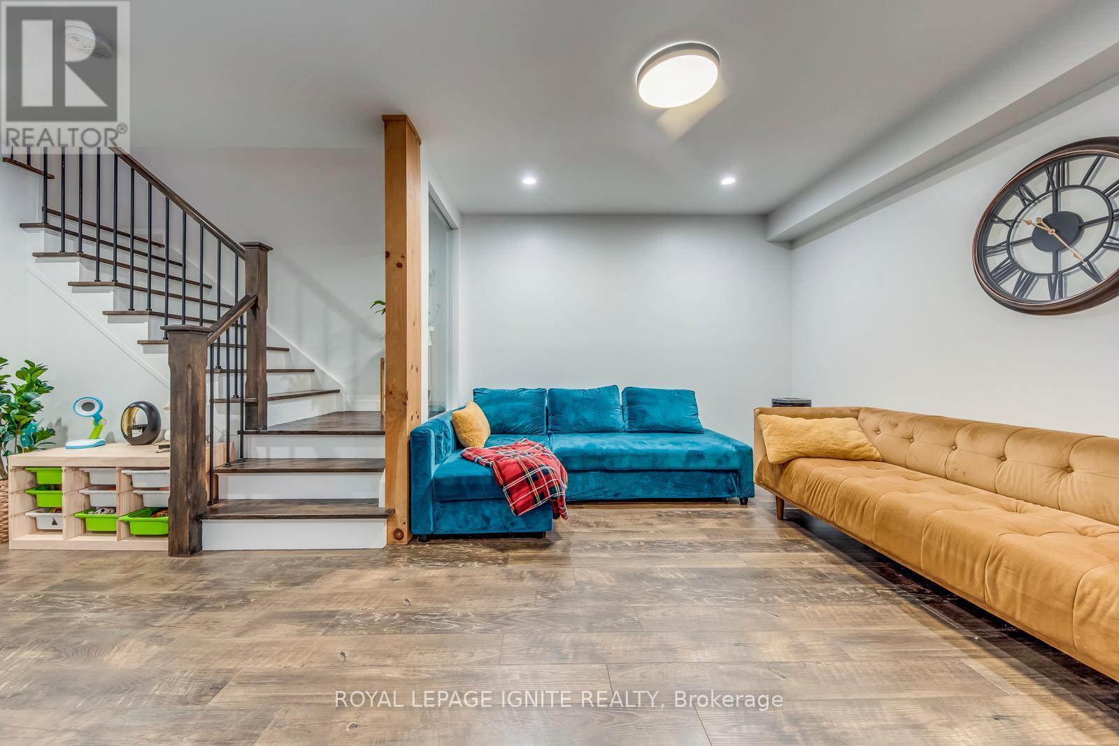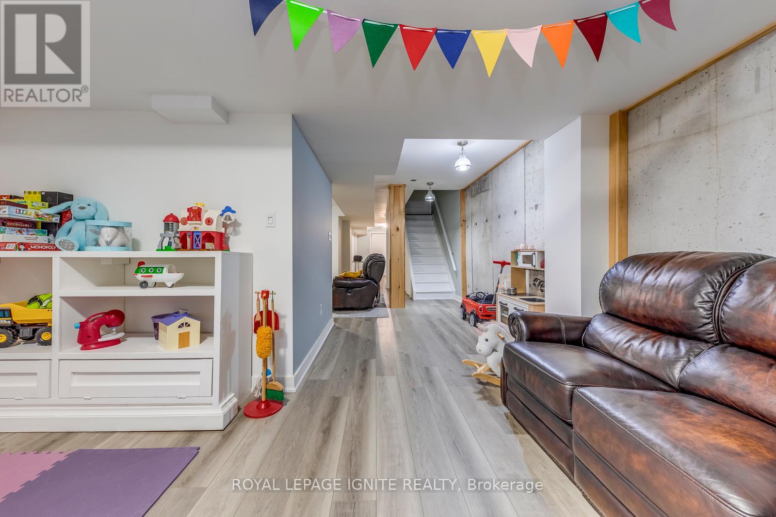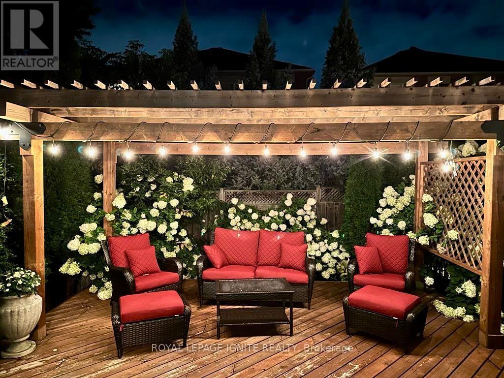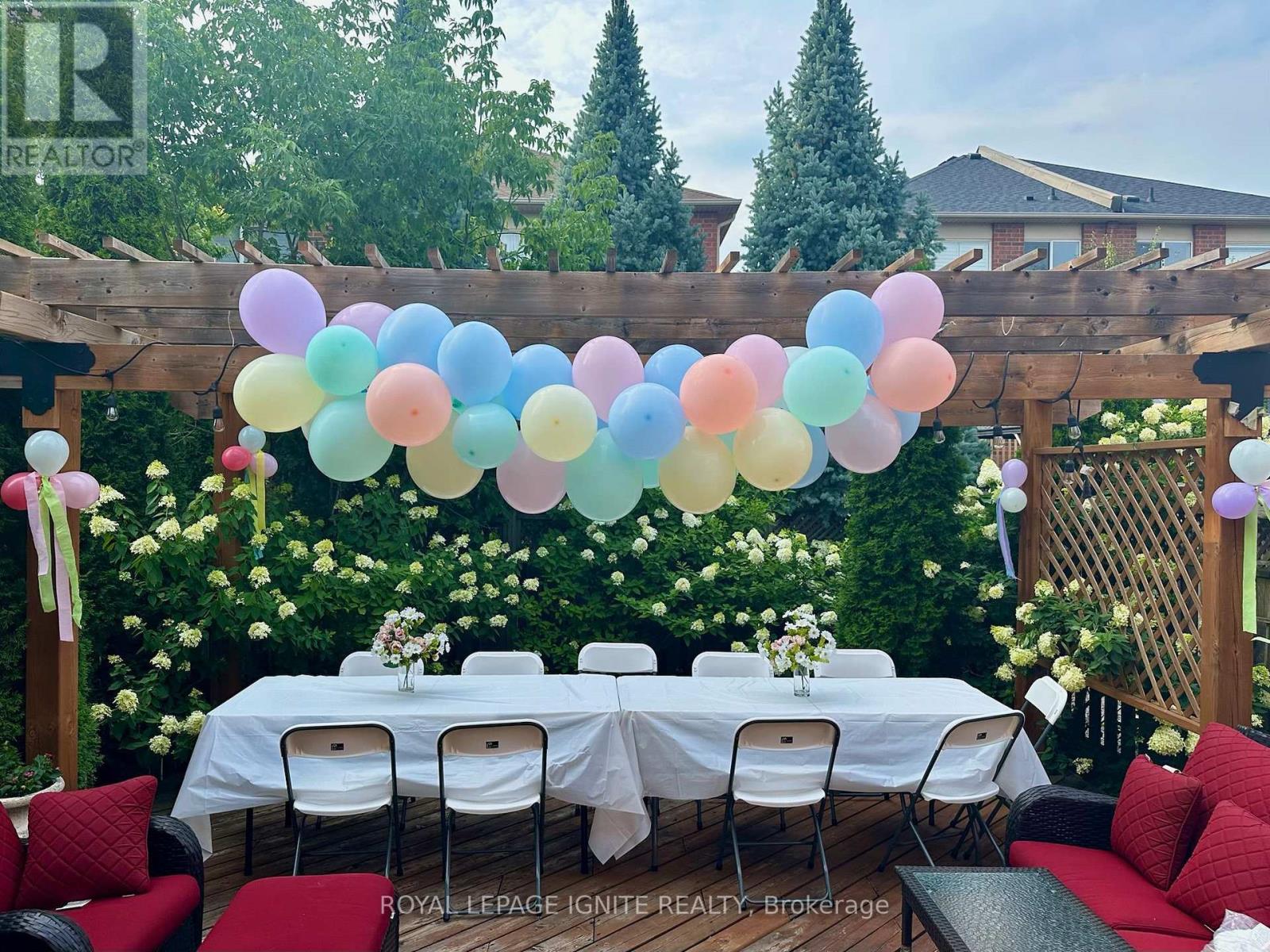 Beautiful, well-maintained and upgraded townhouse, linked only by the garage with convenient door access to both the home and backyard. Features a bright and inviting living/dining area with a real stone gas fireplace. Modern kitchen with a large eat-in area, granite countertops, slate backsplash, stainless steel appliances, and walk-out to a wood deck. Wood staircase with iron pickets leads to the second floor with 3 spacious bedrooms, including a primary bedroom with a 4-piece ensuite, while the second and third bedrooms are also generously sized. Finished basement. Freshly painted and very well maintained.( Included: Built-in dining table and cabinet, TV in the living area, cabinetry in the storage area and basement Rec/playroom, patio maintenance tools, BBQ propane tank, two iron backyard chairs, plant pots and stands).. Enjoy a private, fully landscaped backyard with Arborvitae, white hydrangeas, and lilies-perfect for relaxing or entertaining. Great location within minutes to Fortinos, Longos, the Outlet Mall, and the upcoming Costco. Close to Food Basics, Shoppers Drug Mart, local shops, Cineplex, restaurants, cafes, beaches, and scenic trails. Near a community centre, parks, and just 7 minutes to Appleby GO. Located in a safe and quiet neighborhood with friendly neighbor's-perfect for comfortable family living. (id:4555)