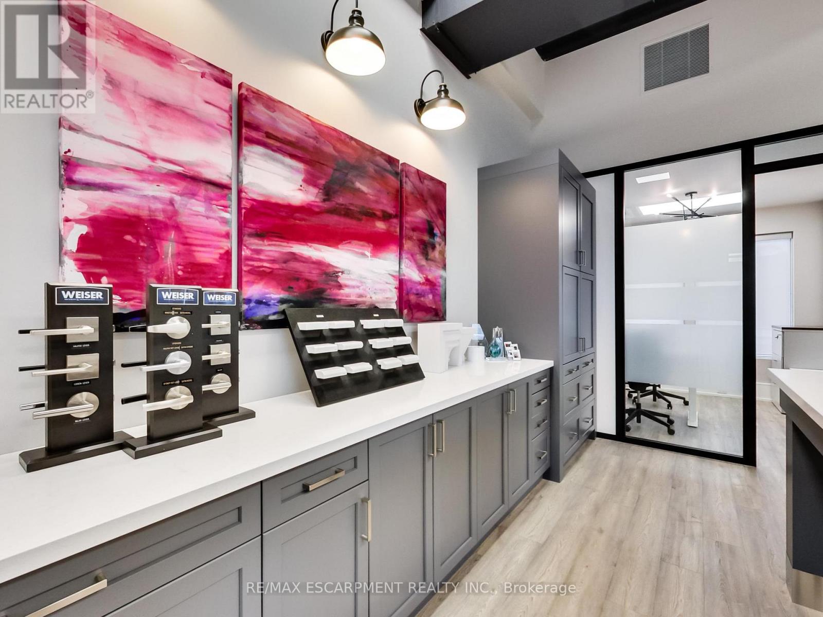 Class A, Ground floor, Prime location for your professional office/retail/service business on Harvester Rd. Unit features it's own entrance with convenient parking and good signage, soaring ceiling of up to 13 ft high, large reception with waiting room or use as an open concept collaborative working area, 5 private offices, 1 boardroom and kitchenette. High end finishes and a corner unit with lots of windows make this a perfect turnkey space. Plenty of free on site parking. Located on major bus route located just east of Guelph Line. Close access to QEW and plenty of amenities. Central Burlington location. TMI for 2026 is estimated at $15.12 and includes utilities. Unit furniture can be negotiated if desired for a turn key option that can start immediately. (id:4555)