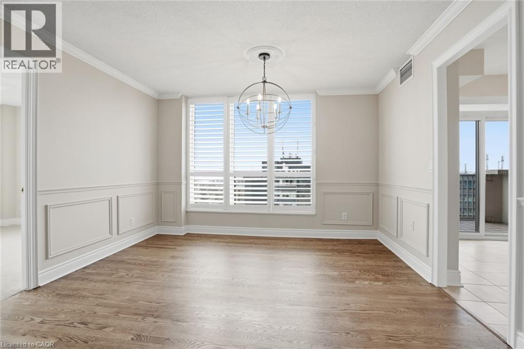 Do you enjoy breathtaking waterfront views? Welcome to luxury living at Spencer’s Landing—one of Burlington’s most sought-after condo residences. Perfectly situated just steps to vibrant downtown Burlington and the Great Lakes Waterfront Trail, this quiet 12th-floor suite offers an exceptional lifestyle. This spacious 2+1 bedroom unit features an updated eat-in kitchen complete with brand new stainless steel appliances, white cabinetry, quartz countertops, and a second private balcony showcasing stunning lake views. The primary retreat offers serene water vistas, a large walk-in closet, updated carpeting, and a beautifully renovated ensuite with glass shower and jetted tub. The expansive living room is filled with natural light and opens to your private balcony, where you can enjoy sweeping 180º panoramic waterfront views. A versatile corner den provides the perfect space for a home office or potential third bedroom. The second bedroom is generously sized with updated carpeting and is conveniently located next to a full bathroom. Additional features include in-suite laundry, two underground parking spaces, and two storage lockers. Residents enjoy premium amenities including concierge/security, indoor pool, sauna, whirlpool, party room, fitness centre, bike storage, hobby room, outdoor BBQ area with gazebo, and an overnight guest suite. Rent includes heat, hydro, water, and cable/internet (first year of lease). Don’t be TOO LATE*! *REG TM. RSA. (id:4555)