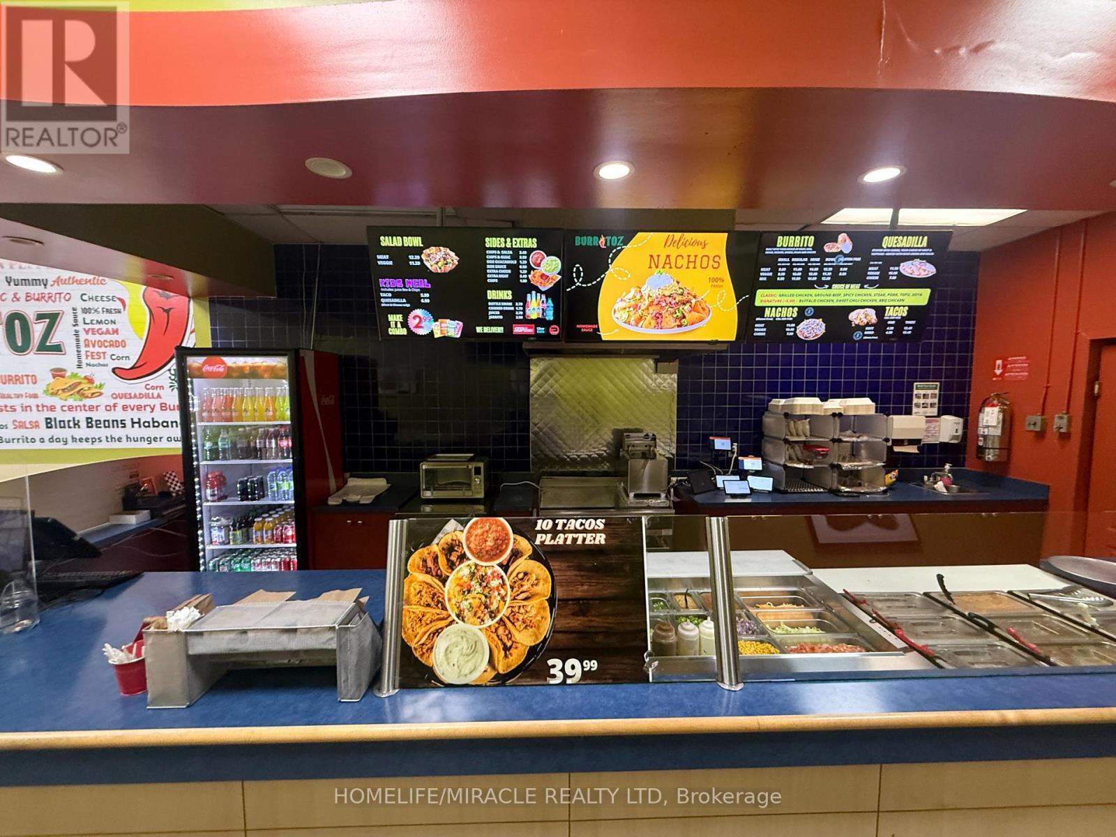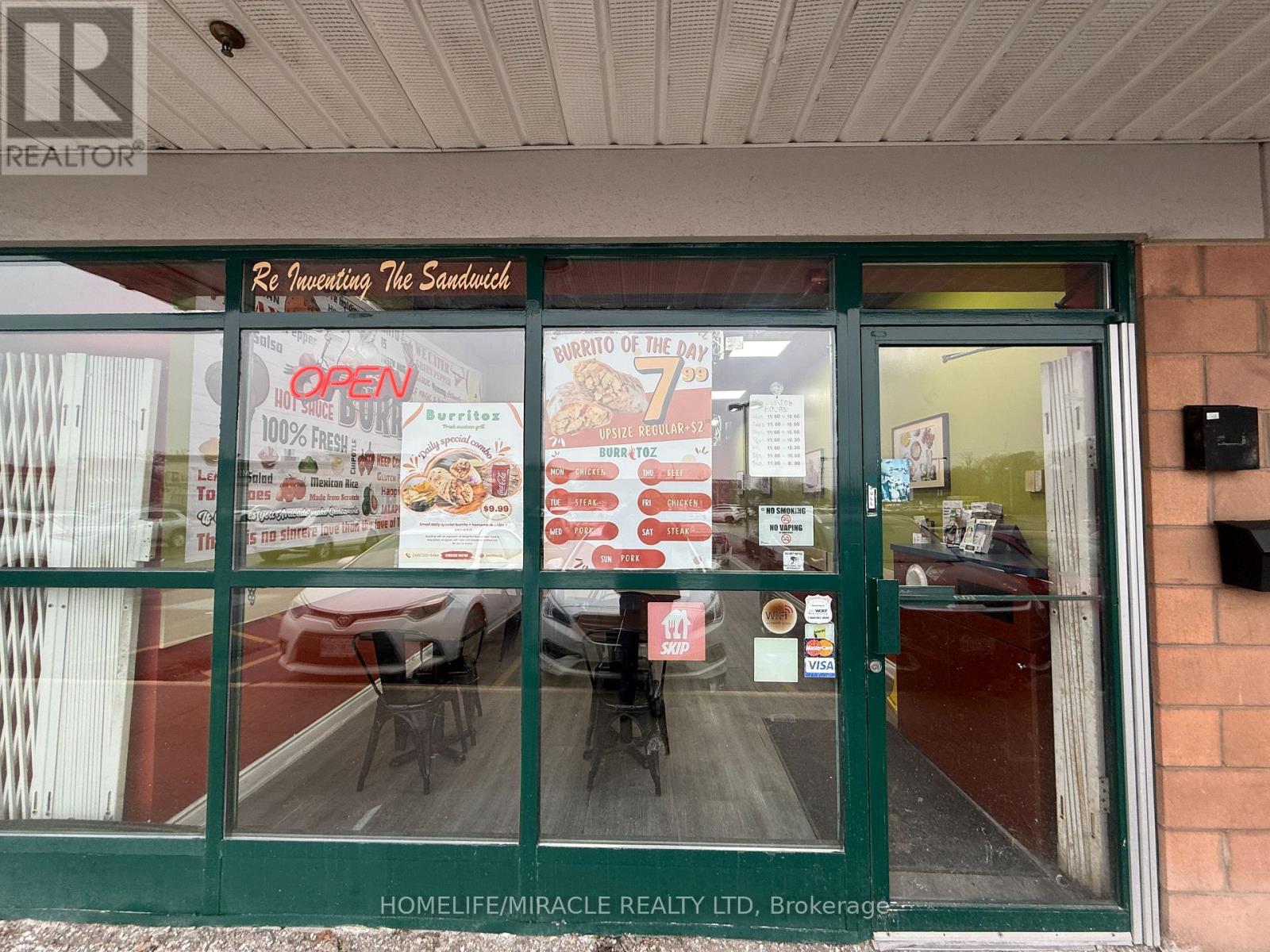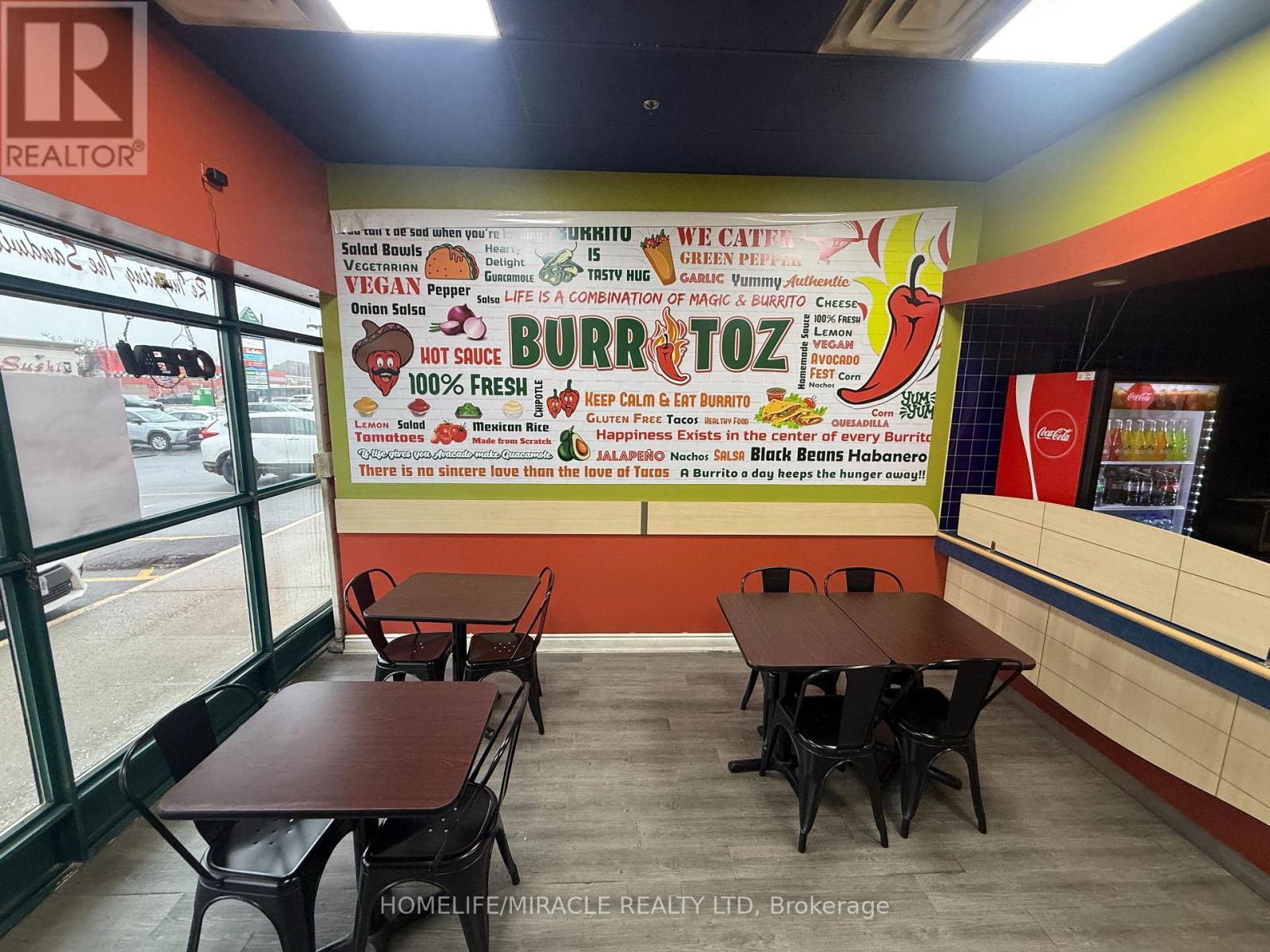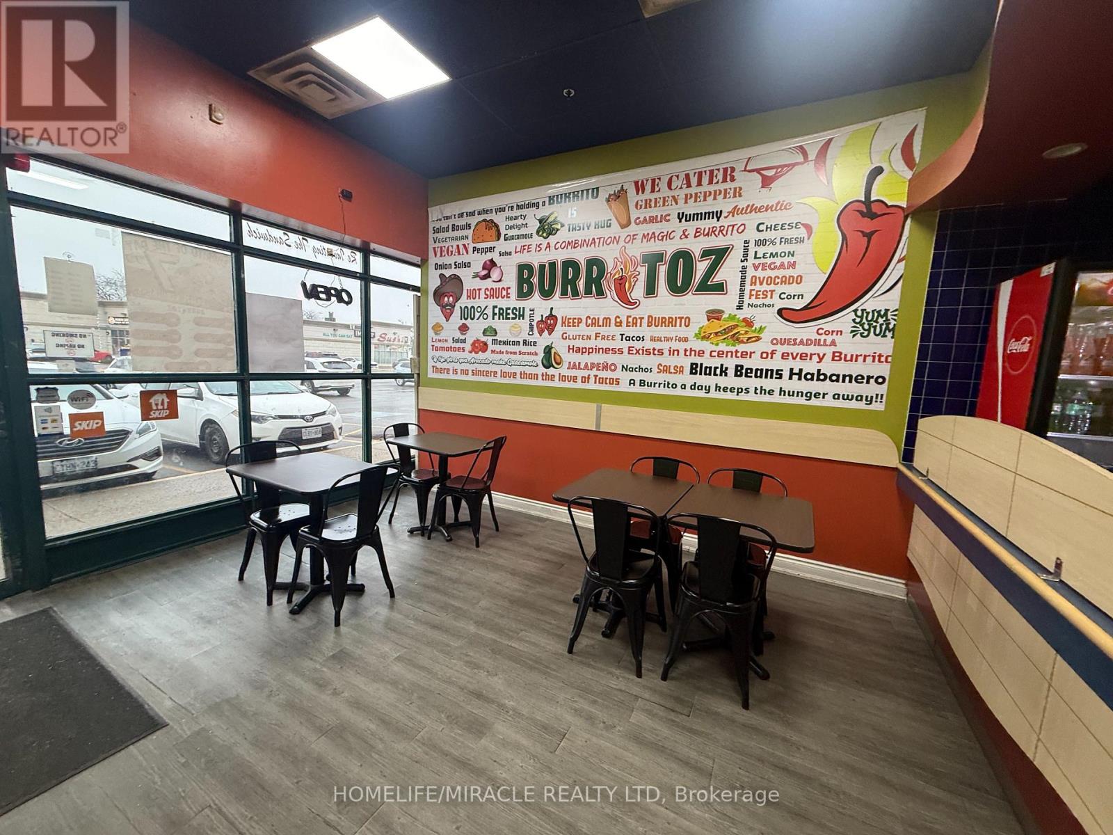 BURRITOZ business in Burlington is For Sale. Located at the intersection of Brant St/Plain Rd E. Surrounded by Fully Residential Neighbourhood, Office Buildings, close to Hwy 403, QEW, Schools, Lots of foot traffic, busy area and much more. Great business that with Good Sales, Long Lease and so much opportunity to grow the business even more. Rent: $3407.58/m including TMI & HST, Lease: Existing 4 + 5 years option to renew, Store Area: Approx. 900sqft. (id:4555)