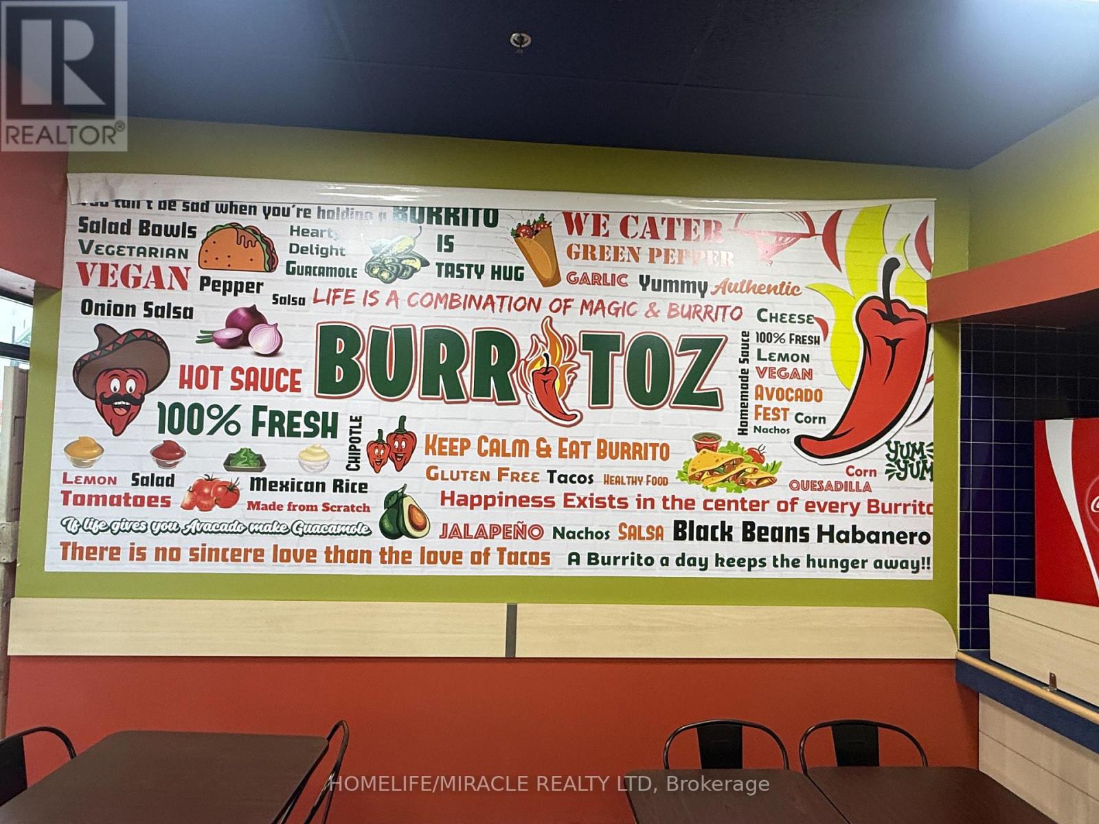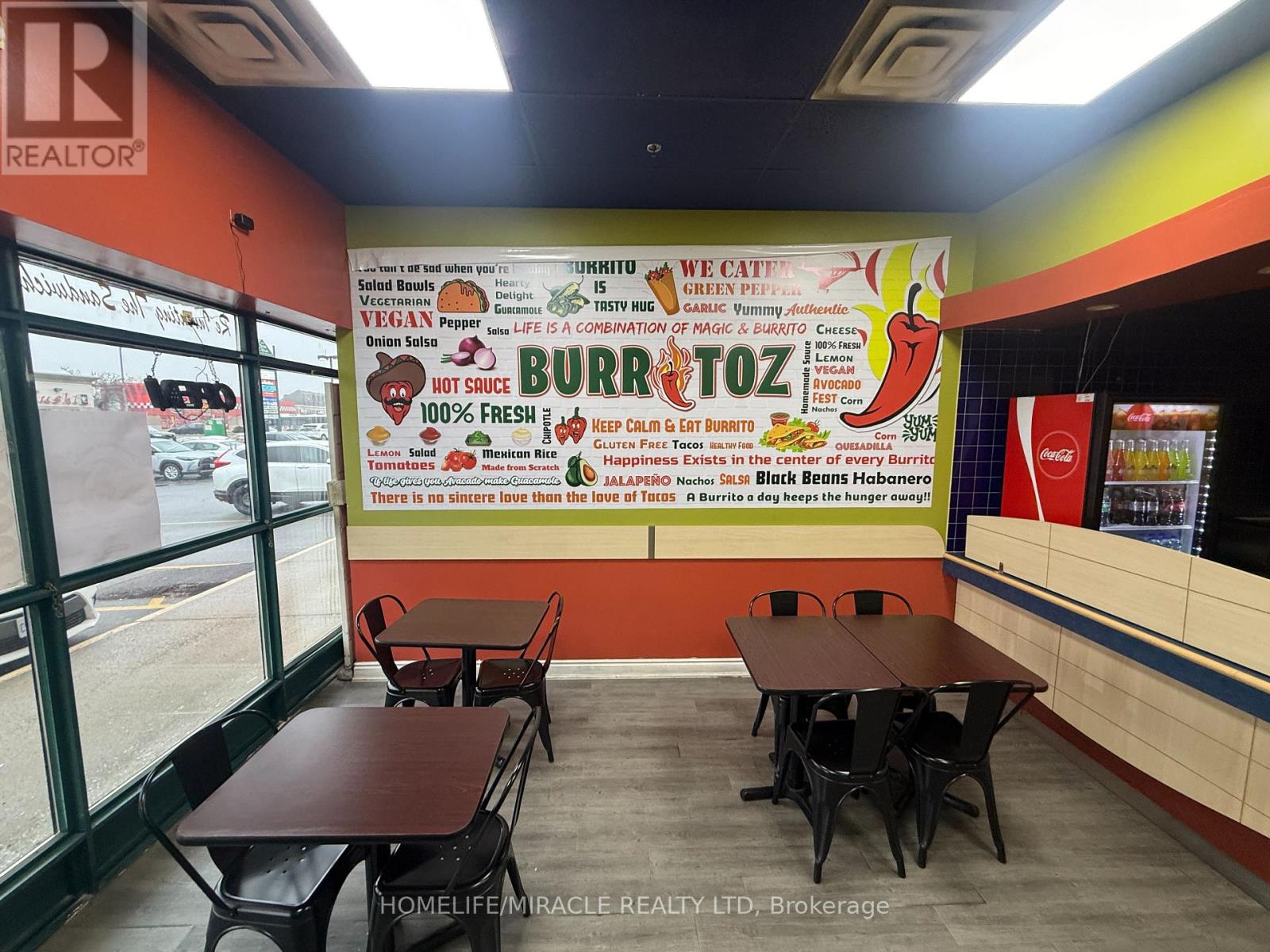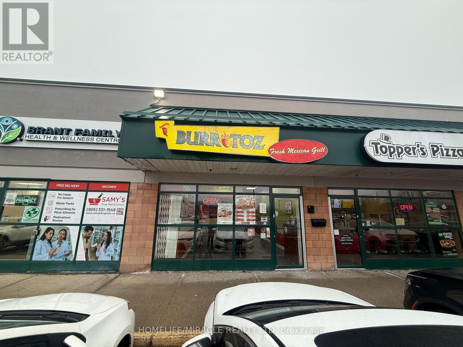 BURRITOZ business in Burlington is For Sale. Located at the intersection of Brant St/Plain Rd E. Surrounded by Fully Residential Neighbourhood, Office Buildings, close to Hwy 403, QEW, Schools, Lots of foot traffic, busy area and much more. Great business that with Good Sales, Long Lease and so much opportunity to grow the business even more. Rent: $3407.58/m including TMI & HST, Lease: Existing 4 + 5 years option to renew, Store Area: Approx. 900sqft. (id:4555)