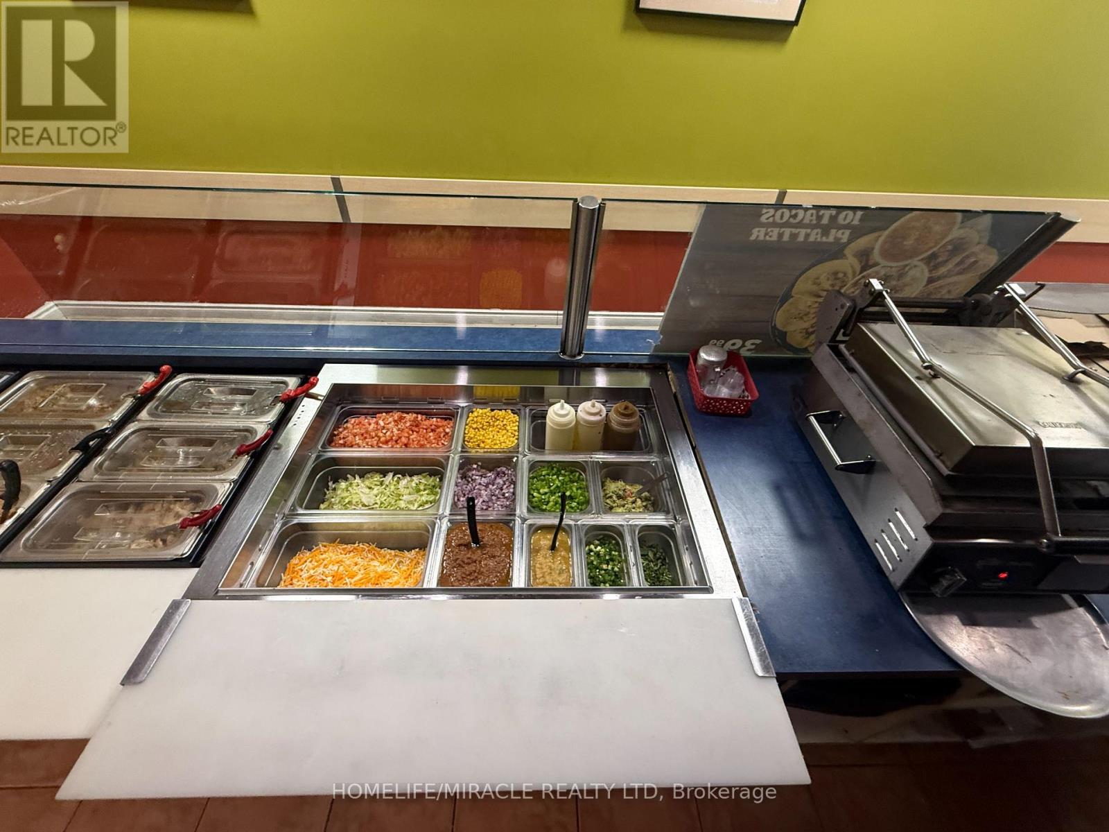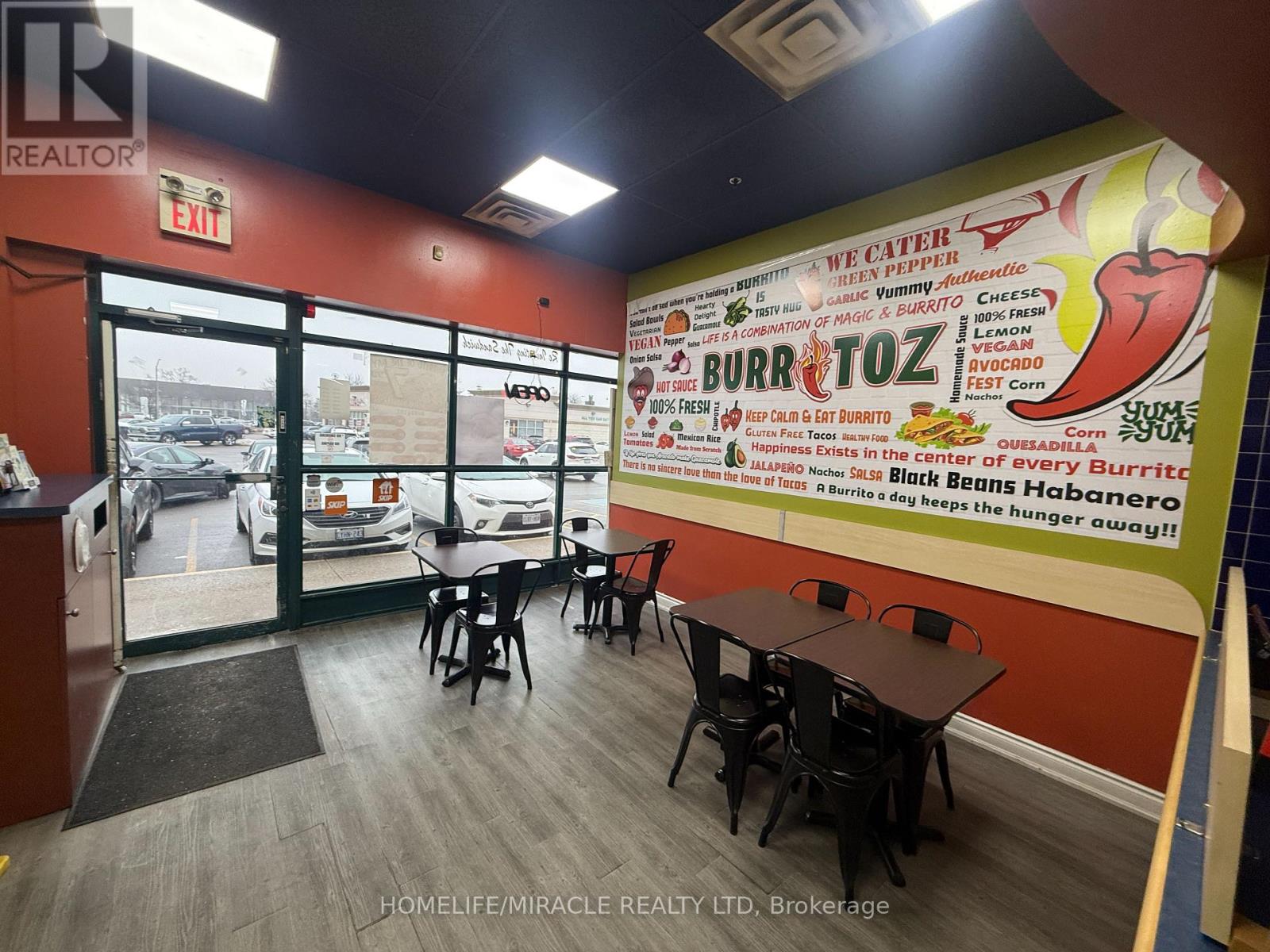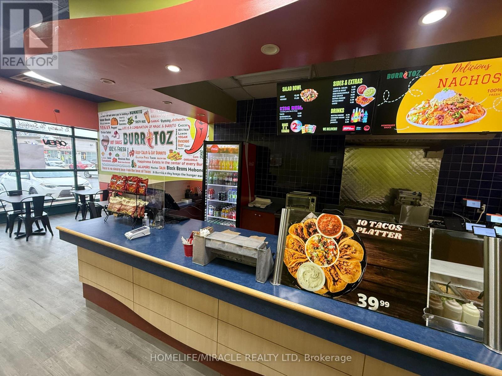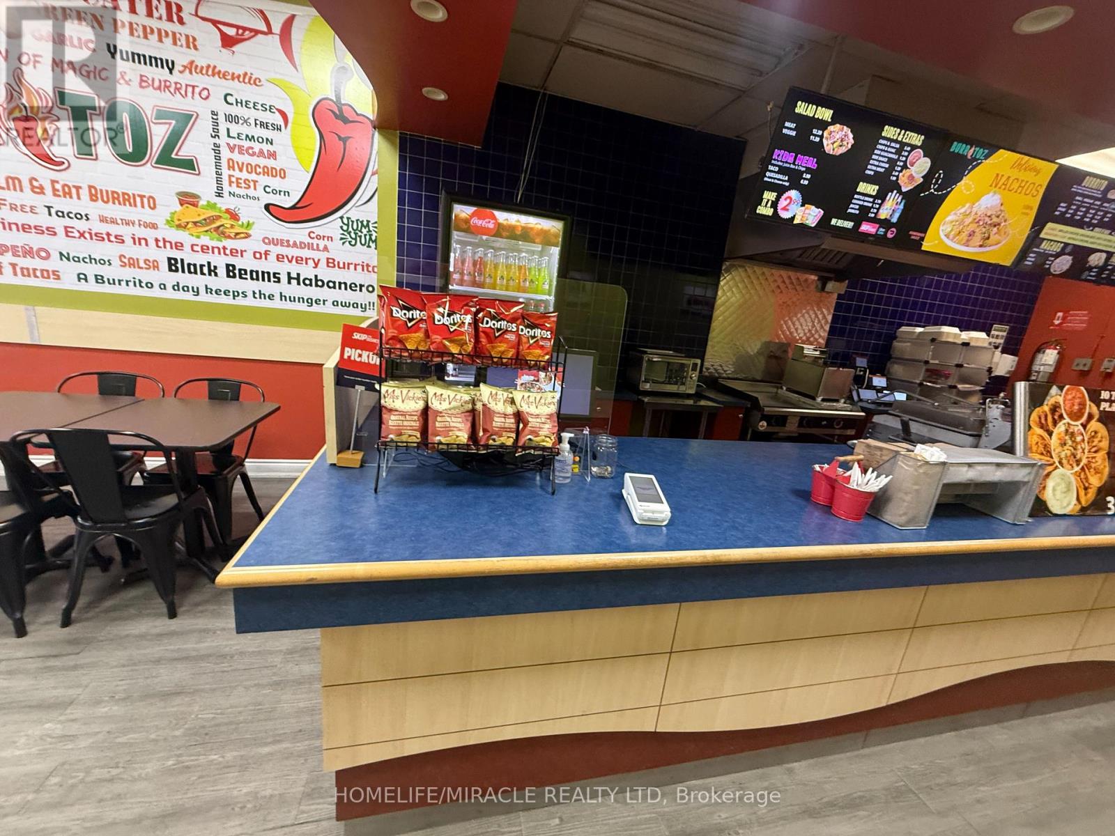 BURRITOZ business in Burlington is For Sale. Located at the intersection of Brant St/Plain Rd E. Surrounded by Fully Residential Neighbourhood, Office Buildings, close to Hwy 403, QEW, Schools, Lots of foot traffic, busy area and much more. Great business that with Good Sales, Long Lease and so much opportunity to grow the business even more. Rent: $3407.58/m including TMI & HST, Lease: Existing 4 + 5 years option to renew, Store Area: Approx. 900sqft. (id:4555)