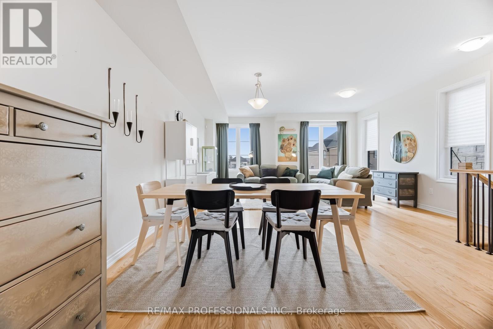 Beautiful new luxurious 4 Bedroom, 4 Bathroom Townhome built by Award Winning National Homes in the desirable Tyandaga community. This rare end-unit Townhome is one of the larger units offering over 2,100 sq ft of above ground living space & is loaded with upgrades. Elegant oak hardwood floors thru-out all Main Floor Rooms. This gourmet-style kitchen has granite counter tops, all new appliances, plenty of counter & cupboard space, Centre Island with breakfast bar as well as separate breakfast area with a walk-out the deck & backyard, PLUS a 2-Piece Powder Room. Formal dining area combined with bright & spacious Great Room with soaring 9 foot ceilings. Primary Bedroom has a well-designed 5-piece bath featuring double sinks, large Soaker Tub, glass enclosed shower & Ceramic Tiles. Primary B/R overlooks the back garden & has walk-in closet. The Laundry is conveniently located on Upper Level & features stackable washer & dryer & a laundry tub. Foyer has closets & plenty of storage areas with direct access to garage. The 4th Bedroom has 3-Pc bath & can easily be converted to an Office or Family Room. This family friendly pocket is ideally located near several nature trails, parks, golf courses, fitness clubs, good schools, transit, great shopping choices & close to Burlington GO, QEW, and 407. (id:4555)