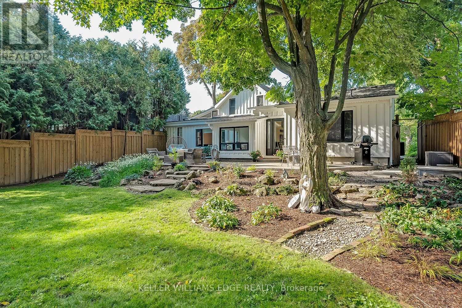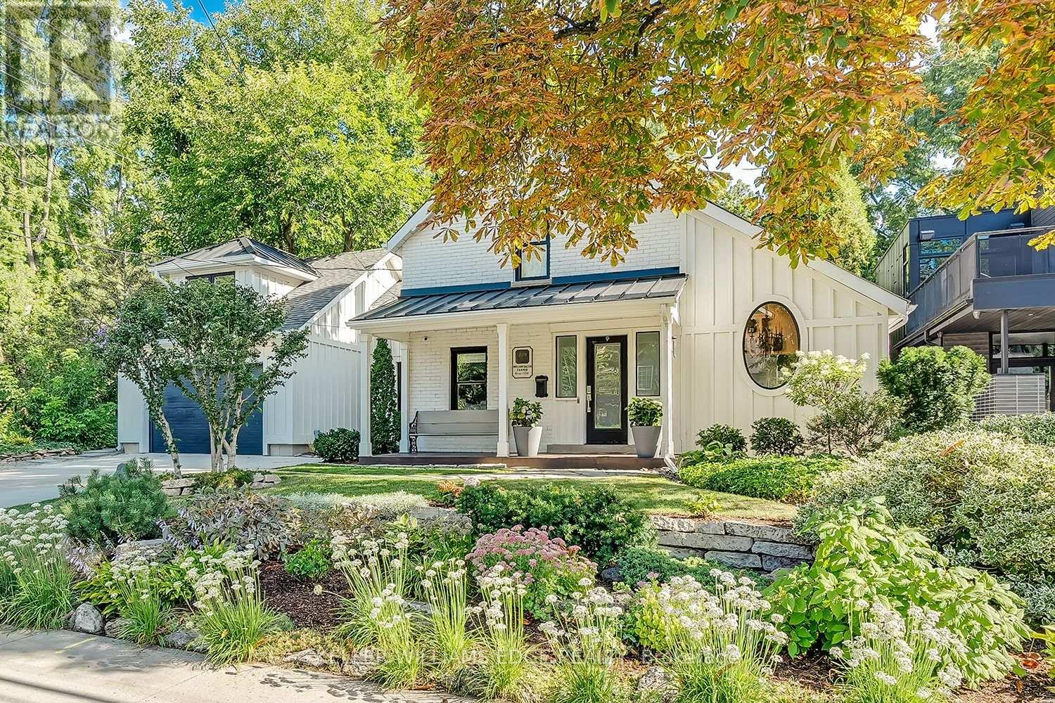This tastefully renovated century farmhouse sits on one of the most sought after streets in downtown Burlington, offering a truly unique opportunity on a premium park like 60 x 181 ft lot adjacent to the waterfront trail and bike path. This 3 bedroom, 3.5 bathroom home features hardwood floors, exposed brick, skylights and pot lighting that add warmth and character throughout. The main level features a beautiful primary bedroom with a spa inspired 5 piece ensuite and a large walk in closet with stacked washer and dryer. The open concept kitchen includes stainless steel appliances, marble counters, tile backsplash and under cabinet lighting. Enjoy the formal dining room with exposed brick, vaulted ceiling and a rough in wet bar, perfect for entertaining. Along the back is an inviting family room with custom built ins, a charming office or reading nook, and a powder room overlooking the expansive fully fenced backyard. The upper level offers 2 bedrooms and a full bathroom, ideal for kids or guests. The finished lower level provides even more flexibility, featuring a comfortable rec room or home office along with a 3 piece bathroom. There is inside access to the spacious 1.5 car garage with a bonus fully finished kids retreat above, complete with electric fireplace and AC. The driveway provides parking for 4 cars.Steps to schools, parks, Lake Ontario, Spencer Smith Park, the YMCA, performing arts centre, library, shops and restaurants, this home offers an unmatched walk-able lifestyle in downtown Burlington. (id:4555)