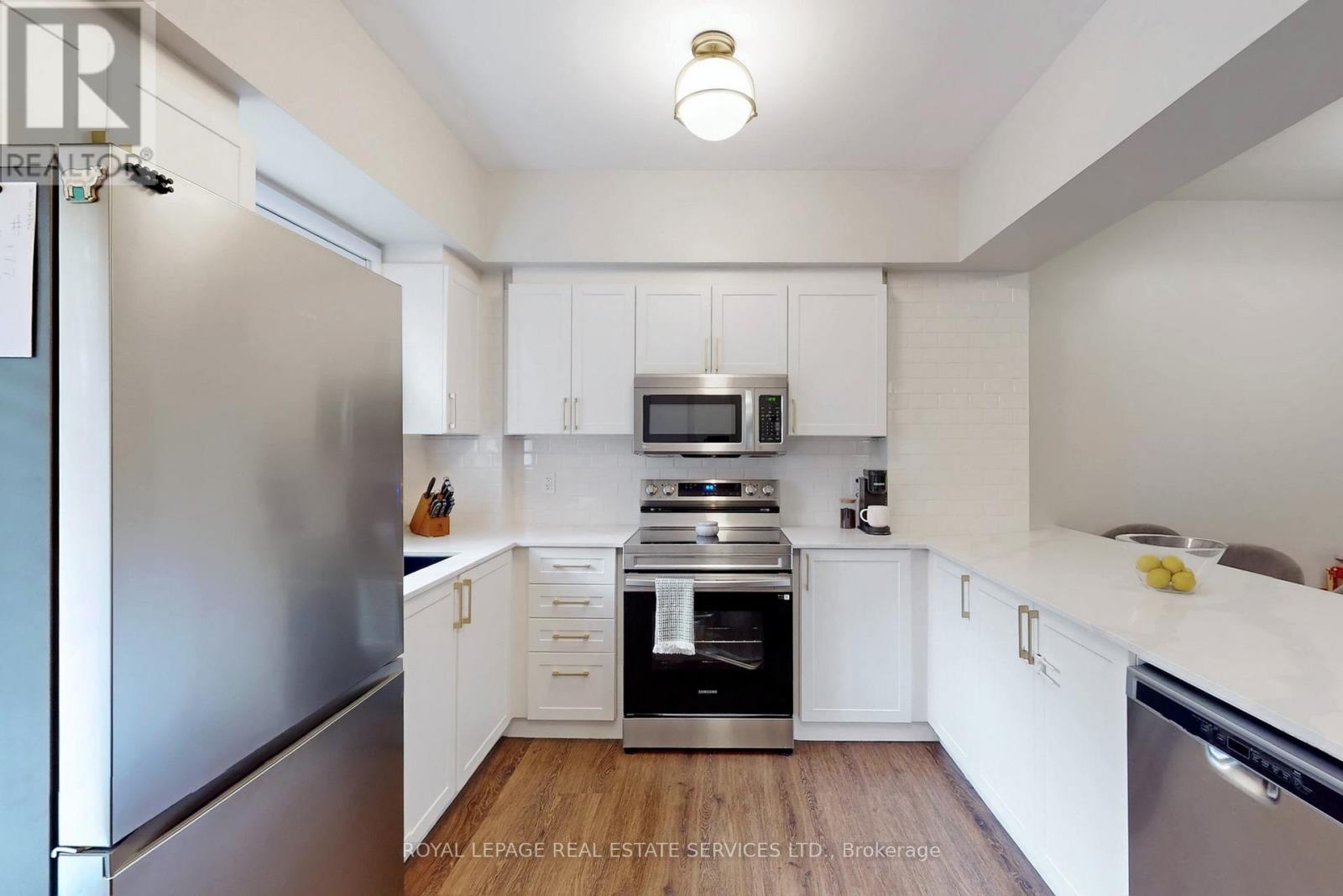 Welcome to a home where move-in ready is an understatement. This stunning 2 bedroom and 2 washroom residence offers literal turn-key living, having been meticulously updated to meet the highest standards of modern comfort and style. From the moment you step through the front door, you will notice the seamless flow and premium finishes that set this property apart, including the rare convenience of 2 dedicated parking spots a storage locker for your seasonal items. The heart of the home is a true showstopper, designed for both the casual cook and the seasoned chef. The kitchen features brand new quartz countertops. These counters are designed as a breakfast bar, offering a perfect spot where you can eat your morning meal or entertain guests. This is paired with a freshly installed backsplash that adds a sophisticated, contemporary flair. You will also find practically brand-new stainless steel fridge and stove just 2 months old, ensuring peace of mind and peak performance for years to come. The attention to detail is evident in the brand new baseboards and casings with high-end finishes that have been professionally installed throughout the entire home. In terms of flooring, you can say goodbye to allergens and high-maintenance cleaning. This home features premium laminate flooring in every single room. With no carpet anywhere, the space feels expansive, cohesive, and incredibly easy to maintain. Location is everything, and this property is positioned in a highly sought-after neighborhood where you are never more than a few minutes away from the essentials. You will enjoy unparalleled convenience with immediate access to the QEW for effortless commuting. The home is just a stone's throw from major shopping centers and grocery stores, and is in close proximity to top-rated schools, parks, and recreational facilities. Whether you need a cafe, a pharmacy, or anything else to streamline your lifestyle, it is all right here. (id:4555)