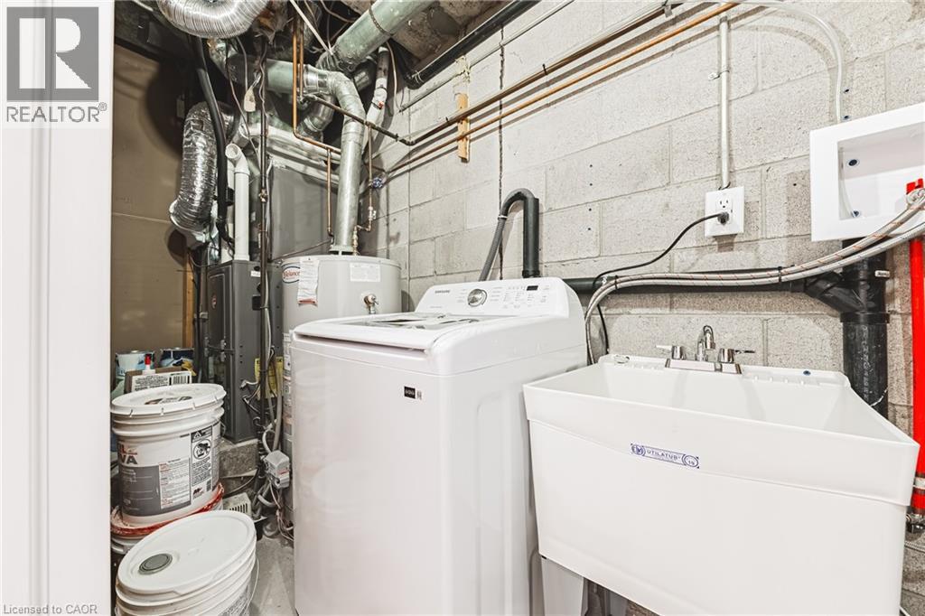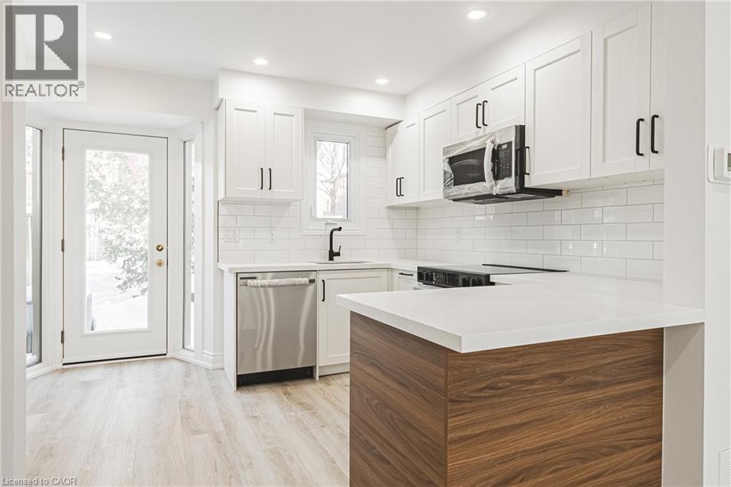 This fantastic NEWLY renovated END UNIT offers 2 spacious bedrooms, 1.5 baths and private backyard! Situated in the sought-after Brownstone complex in central Burlington, this unit boasts almost 1200 sqaure feet plus a fully finished lower level! The home has a great open concept floorplan with plenty of natural light and beautiful finishes / fixtures throughout. The main level features a large living/dining room combination with a brand new eat-in kitchen. The kitchen has airy white cabinetry, quartz counters and stainless-steel appliances. The upper level includes 2 generous sized bedrooms and a stunning newly renovated 4-piece bathroom with plenty of storage. The finished lower level features a generously sized rec room, separate laundry area, 2-piece bathroom and inside entry to the garage! This (id:4555)
