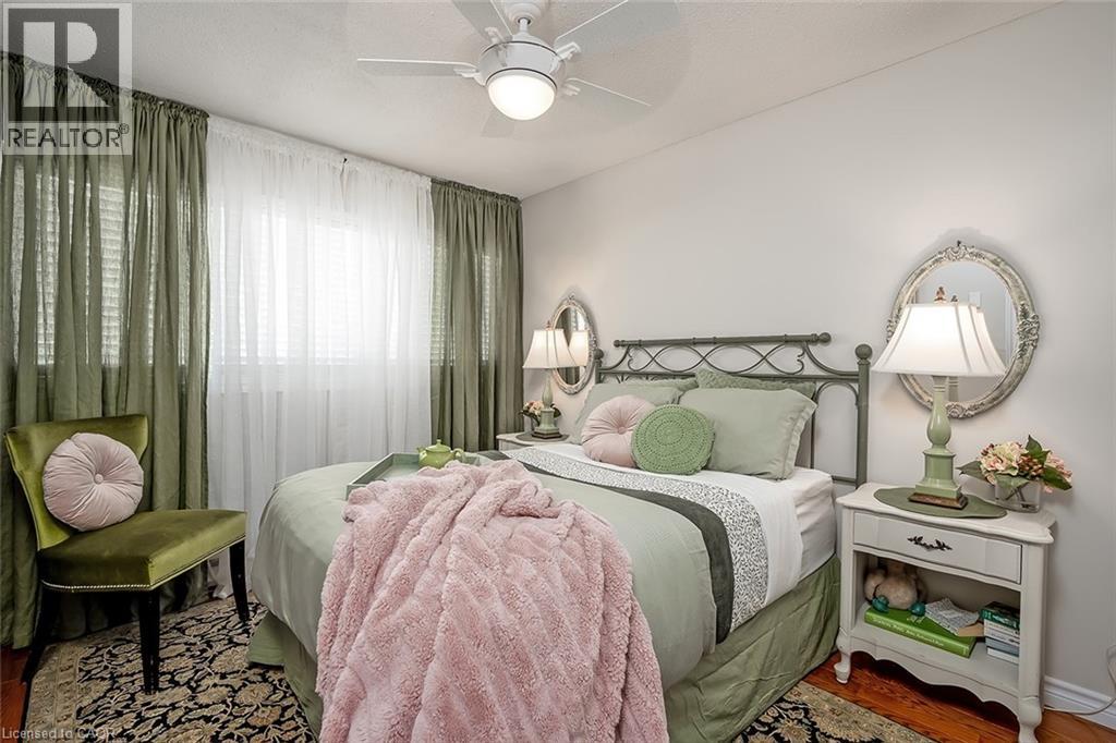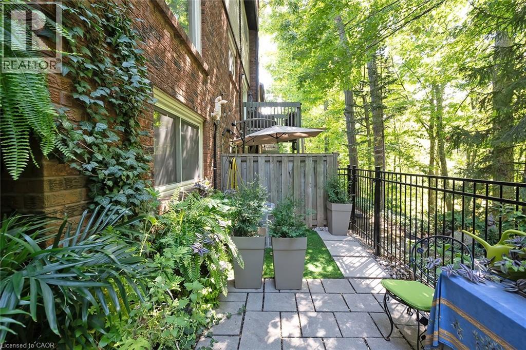 This stunning townhome offers 3 bedrooms, 2.5 baths and backs onto a beautiful ravine in Tyandaga! This updated unit boasts almost 1600 square feet of well-appointed space PLUS a finished walk-out lower level! The main level has hardwood flooring throughout, a large family room with a gas fireplace and separate dining room. The kitchen features solid wood cabinetry, stainless steel appliances, quartz counters and a stone backsplash. The main level also has a 2-piece bathroom and screened in porch overlooking the ravine. The upper level includes 3 spacious bedrooms and hardwood flooring throughout. The primary bedroom has a 3-piece ensuite, walk-in closet and its own private screened in porch overlooking the ravine. There is also a 4-piece main bath with a separate tub and shower. The walk-out lower level has vinyl flooring, a large family room with plenty of natural light, a gas fireplace, a laundry room and plenty of storage space! The exterior of the home features a single car garage and beautiful landscaping. The private gated backyard patio overlooks the ravine. This quiet complex boasts an in-ground pool, party room and full snow removal / grass cutting! Situated in a quiet, family friendly neighbourhood and close to schools, parks and all amenities! (id:4555)