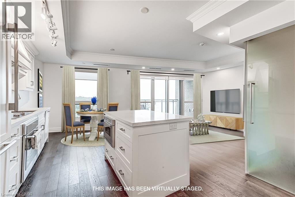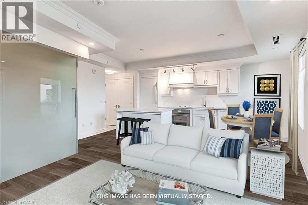 Welcome to the Bridgewater Residences where Lifestyle living meets Luxury. Superiorly Located on the Lake in the Heart of Burlington's Restaurant and Shopping District this luxurious residential condominium Features a four-star world-class Hotel Plus Decor by Brian Gluckstein. Soak up the sun in this Beautiful 1 Bedroom Suite with in-suite laundry, 1 bath and unobstructed South East views of Lake Ontario. Suite finishes include natural stone tiles and quartz counters in the Kitchen, engineered hardwood floors throughout, built-in Thermador appliances, custom Barzotti cabinetry, heated bathroom floors, balcony has a gas line for bbqs. Suite includes One underground parking spot and storage locker. The building also includes a Rooftop terrace, TWO state of the art fitness centres, social lounge and use of the indoor pool at the PEARLE HOTEL AND SPA. (id:4555)