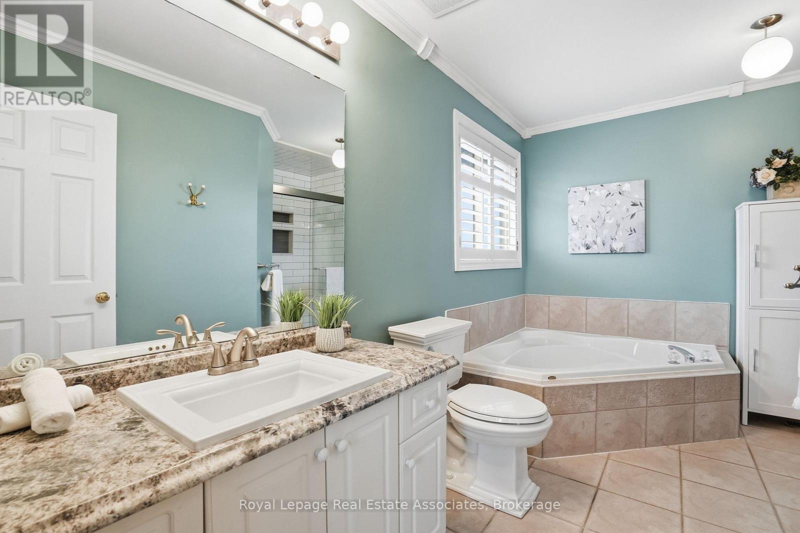 Welcome to 486 Delaney Court, a spacious, 4-bedroom home tucked away on a beautiful, family-friendly court in Burlington's sought-after Longmoor neighbourhood. Offering 2,352 sq ft above grade plus a beautifully finished 1,200 sq ft basement, this is the kind of home that gives your family room to grow, gather, and truly settle in. This neighbourhood combines a strong sense of community with mature surroundings, top-rated schools, nearby parks, and exceptional day-to-day convenience. Designed for everyday comfort and easy entertaining, the main floor offers high ceilings, a private office or craft room, a contemporary white eat-in kitchen, formal living and dining rooms, and a welcoming family room with a gas fireplace and views of the gardens. California shutters and central vac add to the home's everyday convenience. Upstairs offers 4 generous bedrooms plus a separate library/office/flex room, convenient second-floor laundry with new Electrolux washer and dryer, high ceilings, palladium windows, and a spacious primary suite with walk-in closet and ensuite with separate tub and glass shower. The finished basement is bright and airy with high ceilings, new carpet and paint, pot lights, a gas fireplace with custom mantle, large storage area, closet, exercise and entertainment space, plus rough-in potential for a future bathroom. Major updates include roof (2012), furnace, water heater, and backwater valve (2024).Outside, the fenced backyard is a private retreat with native plants and perennials, raised vegetable gardens, a deck, lilac tree, BBQ gas hookup, and hot tub. The long driveway offers rare space for an RV, in addition to the double garage with brand new 2026 LiftMaster opener, keypad, and 2 remotes. A rare opportunity to own a substantial family home on a quiet court in one of Burlington's most established and desirable communities. (id:4555)