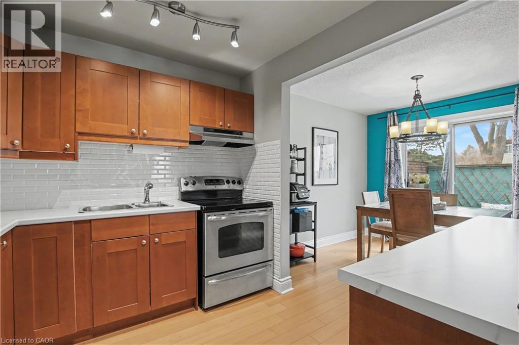 Introducing this charming 3 bed, 1.5 bath townhome in south Aldershot. Features include a bright kitchen with stainless steel appliances, a new backsplash, and updated countertops. A convenient passthrough window connects the kitchen to the cozy living room, creating an open and inviting flow, while the dining area offers a walkout to a private patio; perfect for relaxing or hosting friends. Upstairs you’ll find three generously sized, carpet-free bedrooms along with a well-appointed four-piece main bath. The finished basement adds even more living space with a large recreation room making it ideal for movie nights, a home office, or a play area—while the laundry room offers ample storage to keep everything organized. As a condo townhouse, this home delivers the ease of maintenance-free living, giving you more time to enjoy everything the surrounding area has to offer. Conveniently located close to downtown, the hospital, public transit, arts centre, parks and playgrounds, Mapleview Mall, and a wide range of shopping and dining options. Plus, you’re just minutes from the beach and have quick access to major highways for an easy commute. Attractively priced and packed with value, this is an incredible opportunity you won’t want to miss. Book your private showing today! (id:4555)