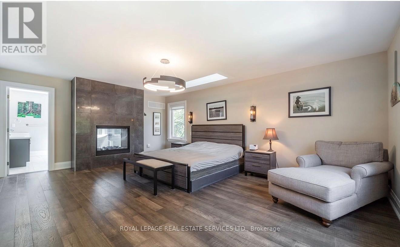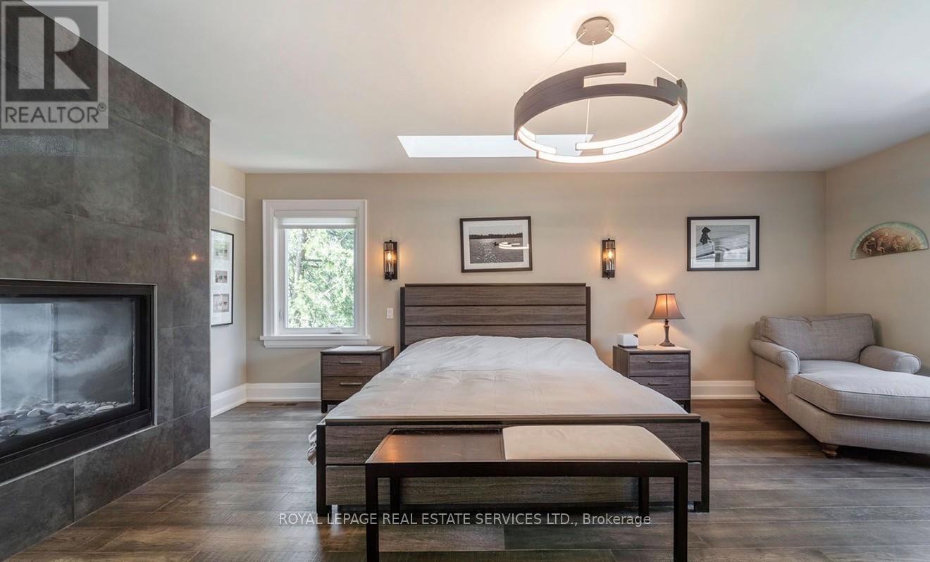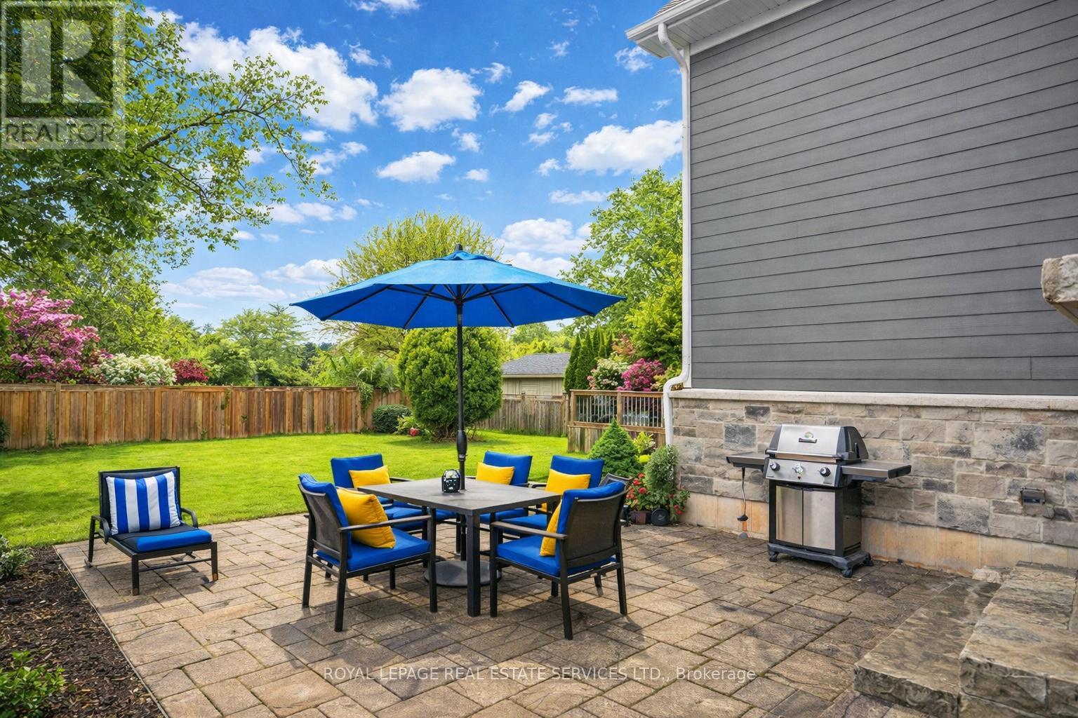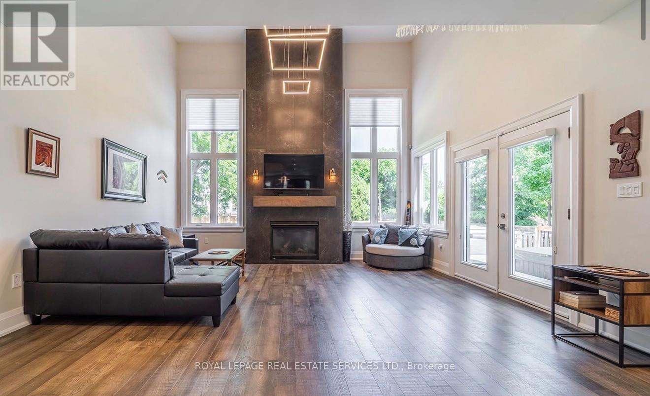 Custom built in 2018 and nestled in one of Burlington's most desired neighbourhoods, 2163 Deyncourt Drive offers a seamless blend of luxury, comfort, and modern living. Situated on a premium 60' x 142' north-west facing lot on a quiet street in Central Burlington, this home is designed for both everyday living and effortless entertaining. The main level showcases a living room with soaring cathedral ceiling, a dramatic gas fireplace, and a French door walkout to the deck, creating a bright and inviting atmosphere. The gourmet kitchen is a true centrepiece, complete with quartz countertops, designer backsplash, premium stainless steel appliances, and an oversized 8' island with breakfast bar, flowing seamlessly into the dining area. A dedicated main floor office provides the perfect space for working from home. Upstairs, the private primary retreat offers a luxurious escape with a walk-in closet, two-sided gas fireplace, and a spa-inspired five-piece ensuite featuring a skylight, double sinks, freestanding tub, steam shower, and heated floor. Two additional bedrooms, a family room, beautifully appointed five-piece main bathroom, and a convenient laundry room complete the upper level. The finished basement extends the living space with a recreation area, fourth bedroom, laminate flooring, and a three-piece bathroom - ideal for guests or extended family. Step outside to your private backyard oasis, featuring a custom deck with hot tub and an interlock patio, perfect for relaxing or entertaining. Additional highlights include expansive windows that flood the home with natural light, engineered hardwood flooring throughout the main and upper levels, multiple walkouts, and a full irrigation system. Ideally located close to Burlington's vibrant downtown core, Spencer Smith Park, the lake, major highways, and the GO Train, this exceptional home delivers the perfect balance of luxury, convenience, and lifestyle. (certain images have been digitally enhanced) (id:4555)