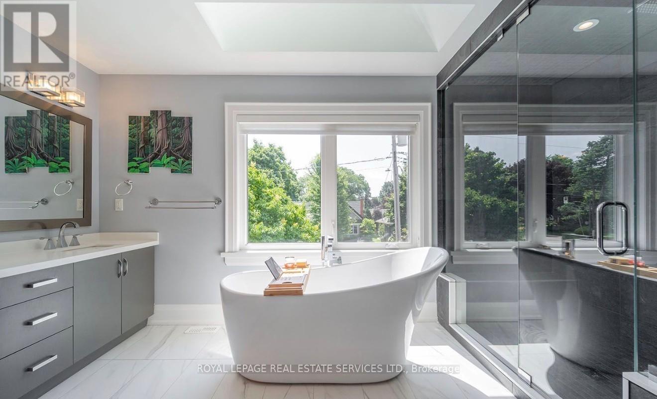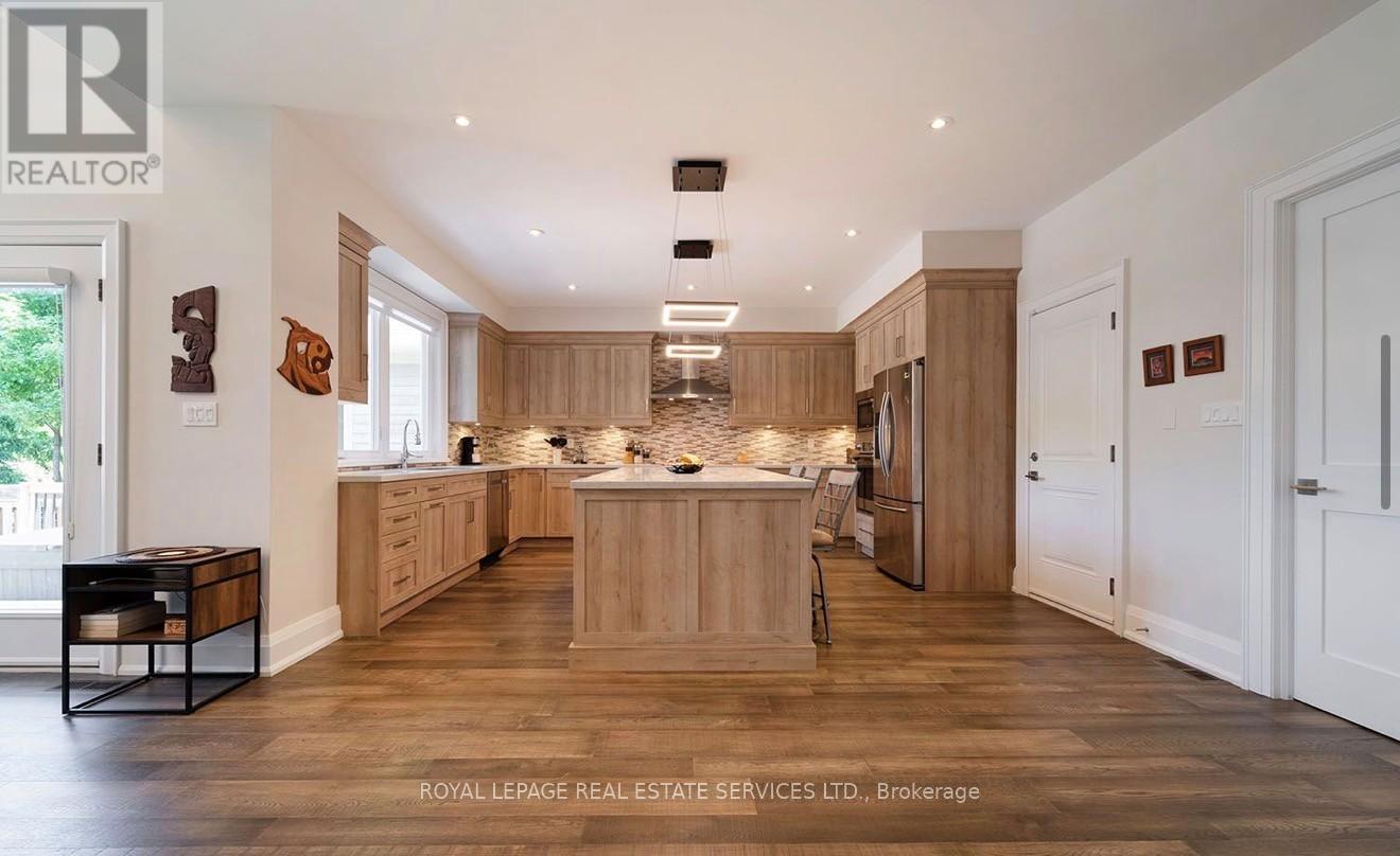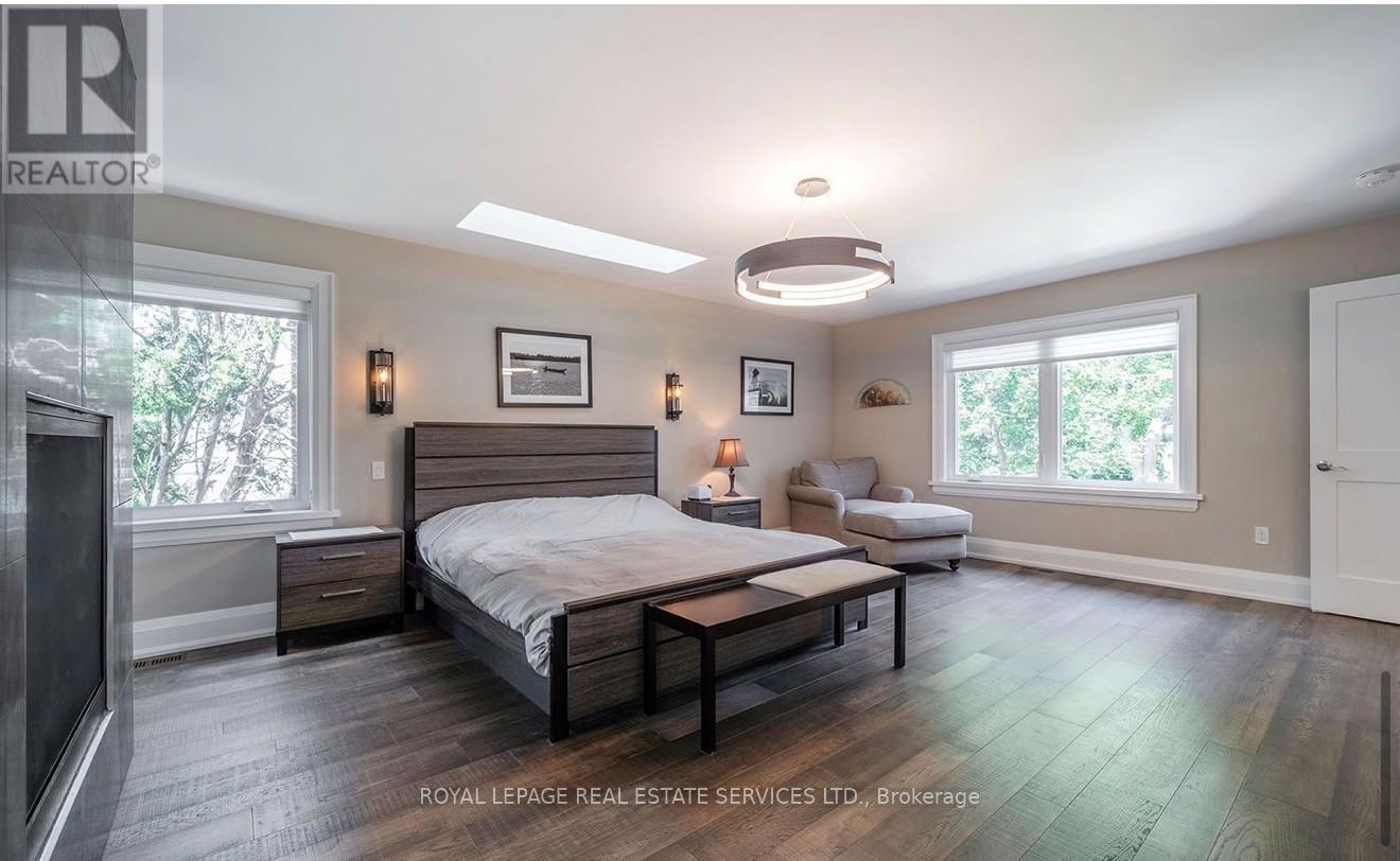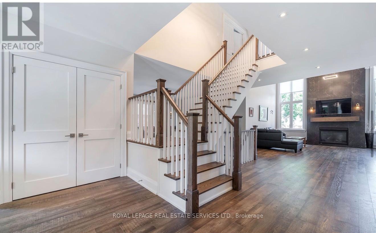 Custom built in 2018 and nestled in one of Burlington's most desired neighbourhoods, 2163 Deyncourt Drive offers a seamless blend of luxury, comfort, and modern living. Situated on a premium 60' x 142' north-west facing lot on a quiet street in Central Burlington, this home is designed for both everyday living and effortless entertaining. The main level showcases a living room with soaring cathedral ceiling, a dramatic gas fireplace, and a French door walkout to the deck, creating a bright and inviting atmosphere. The gourmet kitchen is a true centrepiece, complete with quartz countertops, designer backsplash, premium stainless steel appliances, and an oversized 8' island with breakfast bar, flowing seamlessly into the dining area. A dedicated main floor office provides the perfect space for working from home. Upstairs, the private primary retreat offers a luxurious escape with a walk-in closet, two-sided gas fireplace, and a spa-inspired five-piece ensuite featuring a skylight, double sinks, freestanding tub, steam shower, and heated floor. Two additional bedrooms, a family room, beautifully appointed five-piece main bathroom, and a convenient laundry room complete the upper level. The finished basement extends the living space with a recreation area, fourth bedroom, laminate flooring, and a three-piece bathroom - ideal for guests or extended family. Step outside to your private backyard oasis, featuring a custom deck with hot tub and an interlock patio, perfect for relaxing or entertaining. Additional highlights include expansive windows that flood the home with natural light, engineered hardwood flooring throughout the main and upper levels, multiple walkouts, and a full irrigation system. Ideally located close to Burlington's vibrant downtown core, Spencer Smith Park, the lake, major highways, and the GO Train, this exceptional home delivers the perfect balance of luxury, convenience, and lifestyle. (certain images have been digitally enhanced) (id:4555)