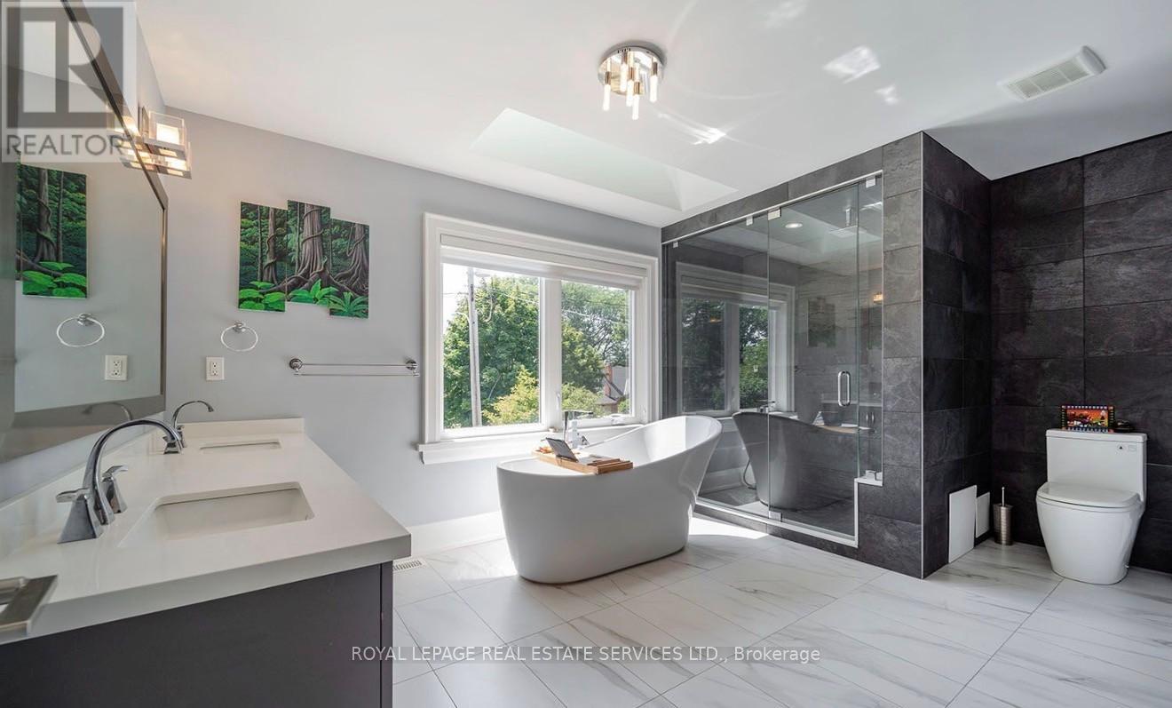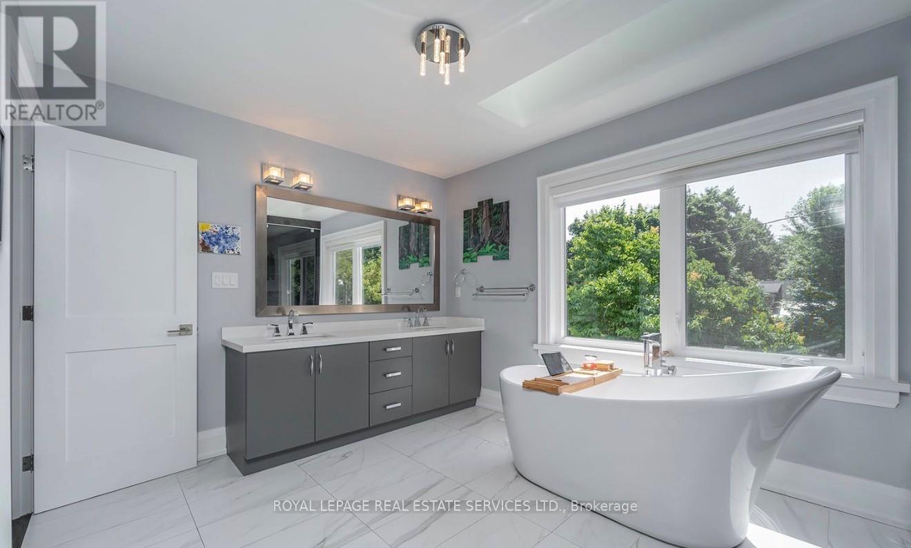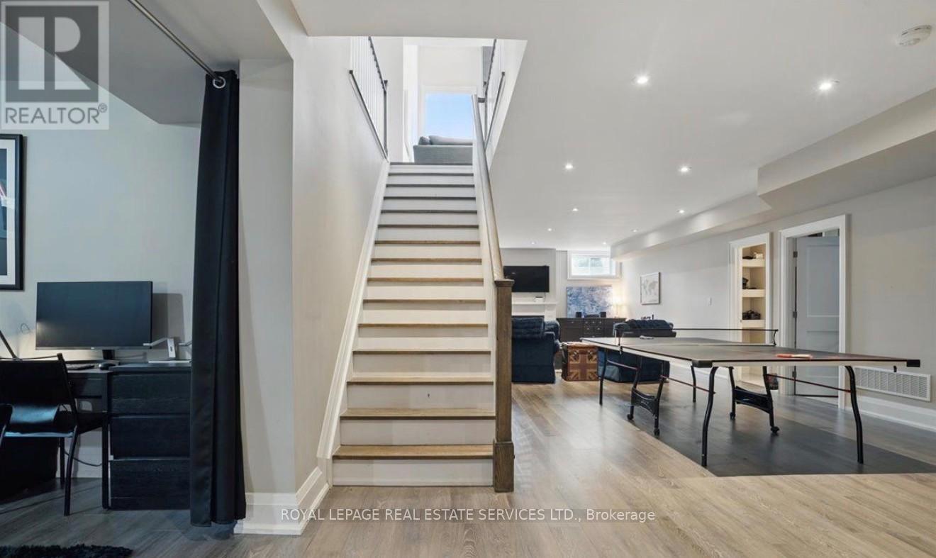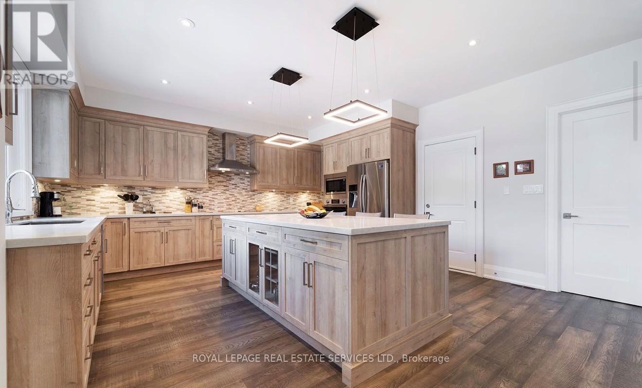 Custom built in 2018 and nestled in one of Burlington's most desired neighbourhoods, 2163 Deyncourt Drive offers a seamless blend of luxury, comfort, and modern living. Situated on a premium 60' x 142' north-west facing lot on a quiet street in Central Burlington, this home is designed for both everyday living and effortless entertaining. The main level showcases a living room with soaring cathedral ceiling, a dramatic gas fireplace, and a French door walkout to the deck, creating a bright and inviting atmosphere. The gourmet kitchen is a true centrepiece, complete with quartz countertops, designer backsplash, premium stainless steel appliances, and an oversized 8' island with breakfast bar, flowing seamlessly into the dining area. A dedicated main floor office provides the perfect space for working from home. Upstairs, the private primary retreat offers a luxurious escape with a walk-in closet, two-sided gas fireplace, and a spa-inspired five-piece ensuite featuring a skylight, double sinks, freestanding tub, steam shower, and heated floor. Two additional bedrooms, a family room, beautifully appointed five-piece main bathroom, and a convenient laundry room complete the upper level. The finished basement extends the living space with a recreation area, fourth bedroom, laminate flooring, and a three-piece bathroom - ideal for guests or extended family. Step outside to your private backyard oasis, featuring a custom deck with hot tub and an interlock patio, perfect for relaxing or entertaining. Additional highlights include expansive windows that flood the home with natural light, engineered hardwood flooring throughout the main and upper levels, multiple walkouts, and a full irrigation system. Ideally located close to Burlington's vibrant downtown core, Spencer Smith Park, the lake, major highways, and the GO Train, this exceptional home delivers the perfect balance of luxury, convenience, and lifestyle. (certain images have been digitally enhanced) (id:4555)