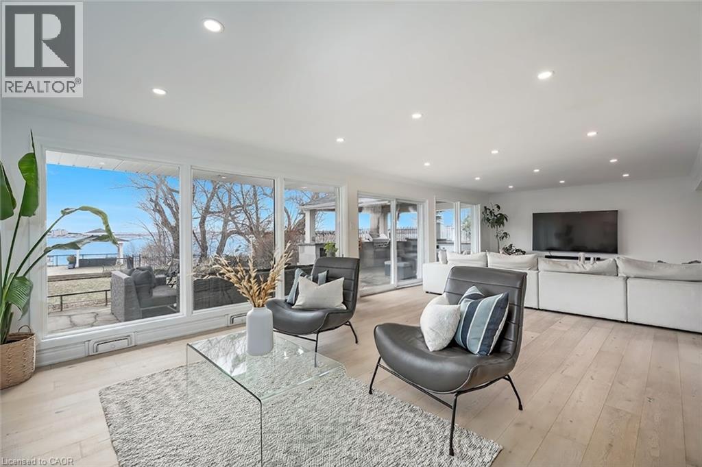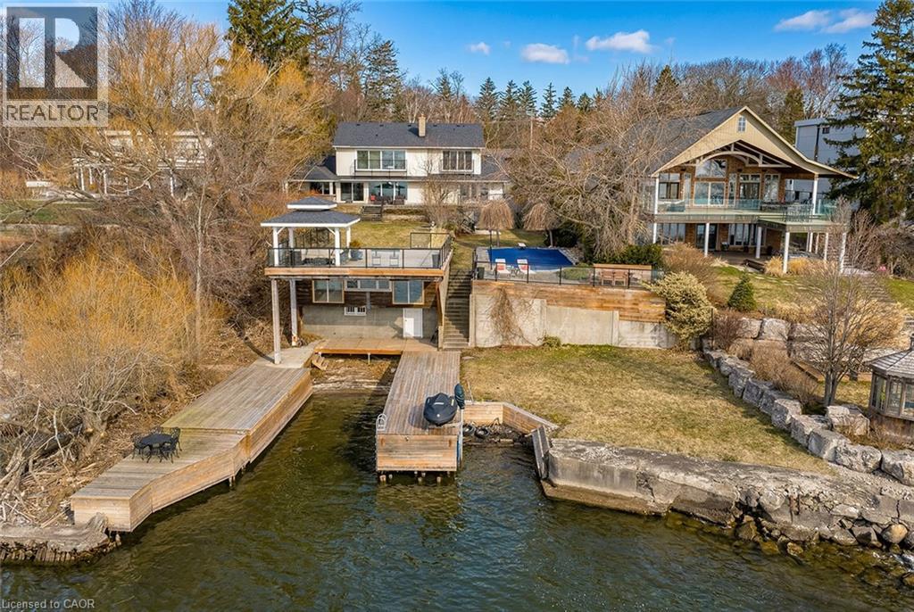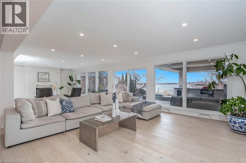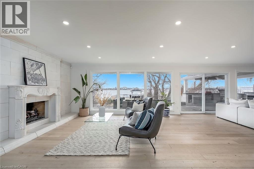 Extensively updated waterfront home offering over 6900 square feet of total living space including 6 bedrooms, 4.5 baths, and three self-contained living spaces ideal for multi-generational living. Set on a rare 93 x 313 ft lot on the bay, this property delivers breathtaking views, private docking, and exceptional outdoor living. The main level features an open concept living and dining area with a wall of windows, gas fireplace, and walkout to a resort-style backyard. The custom chef’s kitchen showcases marble countertops, stainless steel appliances including a six-burner gas stove, wine, and beverage fridges, skylight, and extensive cabinetry. A main floor primary or in-law suite offers a private living area with wet bar and fireplace, a bedroom with office, nursery or dressing room, and ensuite bath. Upstairs, the luxurious primary retreat features a walk-in closet, spa-like ensuite with jetted tub, a fireplace, and private balcony overlooking the water, while three additional bedrooms provide ample space and share a gorgeous bath. The walkout lower level includes a recreation room with fireplace, kitchenette, sixth bedroom, full bath, and separate entrance. Outside, enjoy a saltwater pool, covered outdoor kitchen, multiple decks, gazebo, docks, and a boathouse with heated room—perfect as a gym or lounge. Ten-car circular driveway, double garage, and extensive updates throughout complete this exceptional lakeside offering. (id:4555)