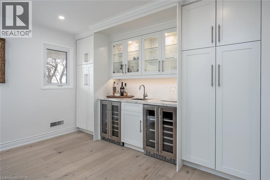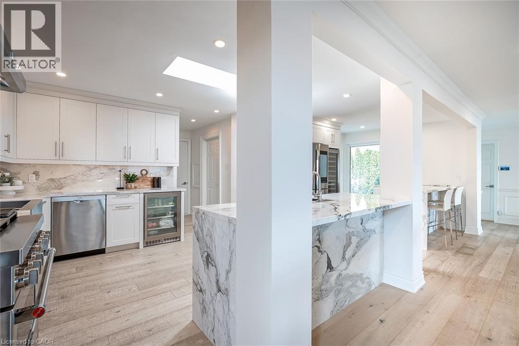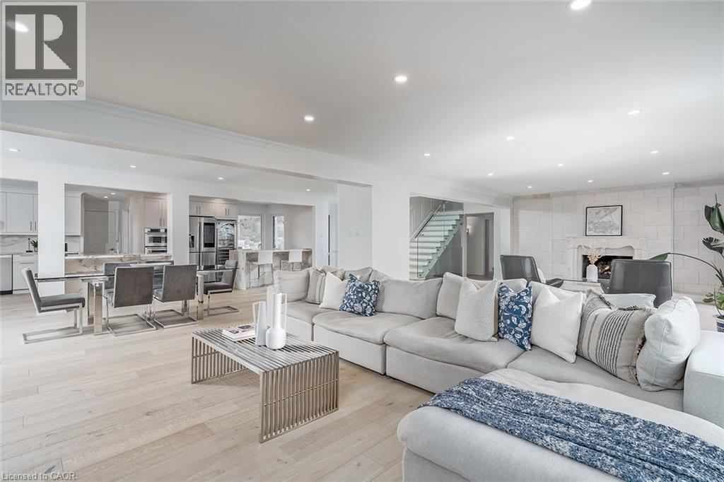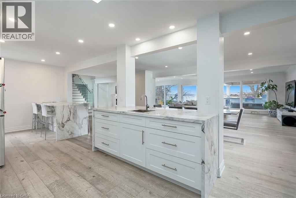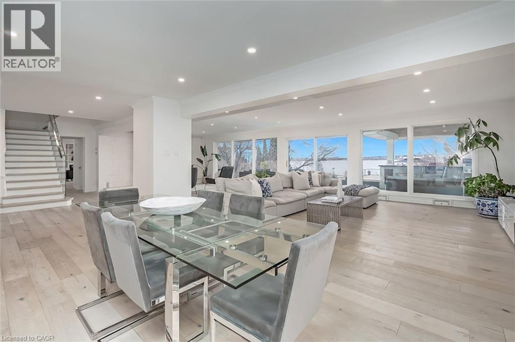 Extensively updated waterfront home offering over 6900 square feet of total living space including 6 bedrooms, 4.5 baths, and three self-contained living spaces ideal for multi-generational living. Set on a rare 93 x 313 ft lot on the bay, this property delivers breathtaking views, private docking, and exceptional outdoor living. The main level features an open concept living and dining area with a wall of windows, gas fireplace, and walkout to a resort-style backyard. The custom chef’s kitchen showcases marble countertops, stainless steel appliances including a six-burner gas stove, wine, and beverage fridges, skylight, and extensive cabinetry. A main floor primary or in-law suite offers a private living area with wet bar and fireplace, a bedroom with office, nursery or dressing room, and ensuite bath. Upstairs, the luxurious primary retreat features a walk-in closet, spa-like ensuite with jetted tub, a fireplace, and private balcony overlooking the water, while three additional bedrooms provide ample space and share a gorgeous bath. The walkout lower level includes a recreation room with fireplace, kitchenette, sixth bedroom, full bath, and separate entrance. Outside, enjoy a saltwater pool, covered outdoor kitchen, multiple decks, gazebo, docks, and a boathouse with heated room—perfect as a gym or lounge. Ten-car circular driveway, double garage, and extensive updates throughout complete this exceptional lakeside offering. (id:4555)