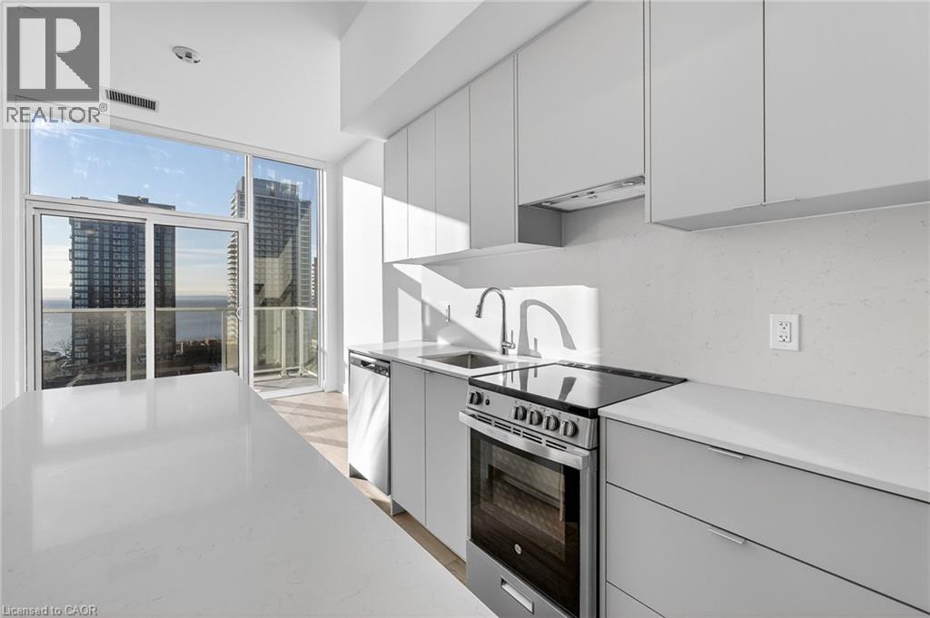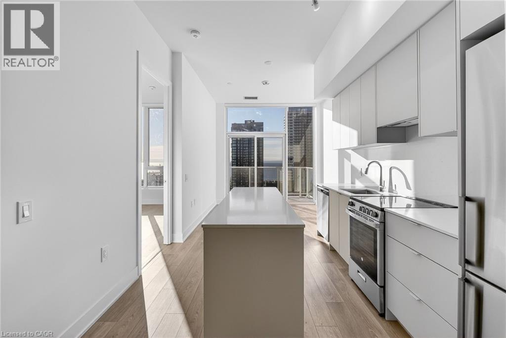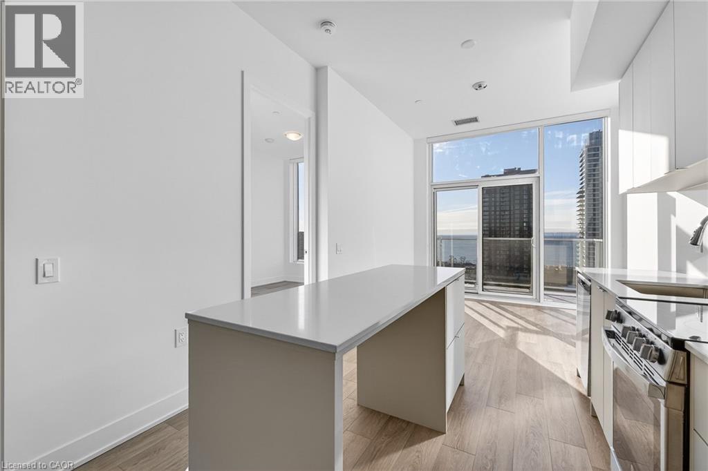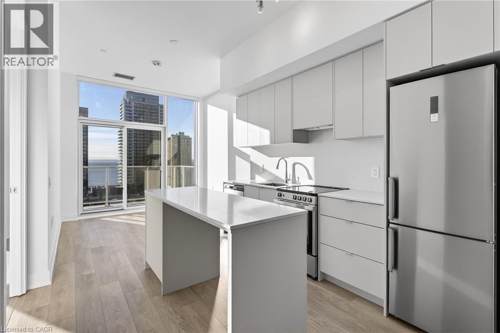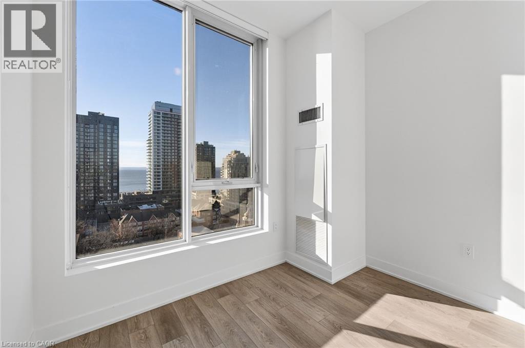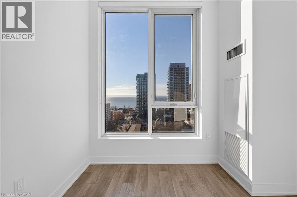 Welcome to the brand new, never-lived-in Martha James Condominiums by Mattamy Homes, ideally located in the heart of downtown Burlington. This rare lakeside 1 bedroom + den, 2 full bathroom suite offers a highly functional layout, featuring a spacious primary bedroom with a private ensuite and a versatile den ideal for a home office or guest space. Situated on the 13th floor with 10' ceilings, desirable lake-facing exposure, this unit showcases spectacular views of Lake Ontario, downtown Burlington, and stunning sunrises. The main living area is enhanced by floor-to-ceiling windows, filling the space with natural light and maximizing the view. The open-concept kitchen is designed for both style and functionality, complete with an island, stainless steel appliances, and seamless flow into the living and dining areas. Step out onto your private open balcony and enjoy elevated waterfront living. Additional features include in-suite laundry, smart home technology with keyless entry, and 1 underground parking space. Residents enjoy premium amenities including a fully equipped gym, yoga studio, and a stylish party/meeting room. Unbeatable location offering true downtown and waterfront living: approximately 1 km to Spencer Smith Park, the waterfront, pier, and scenic trails, 900 m to the Burlington Performing Arts Centre, 1.8km to Joseph Brant Hospital, 1.8km to the Skyway Bridge, and just steps to all the hotspots along Brant Street including restaurants, cafes, and patios. Enjoy great access to public transit and major routes, while being perfectly positioned to take in cultural events and the vibrant downtown atmosphere Burlington is known for. (id:4555)