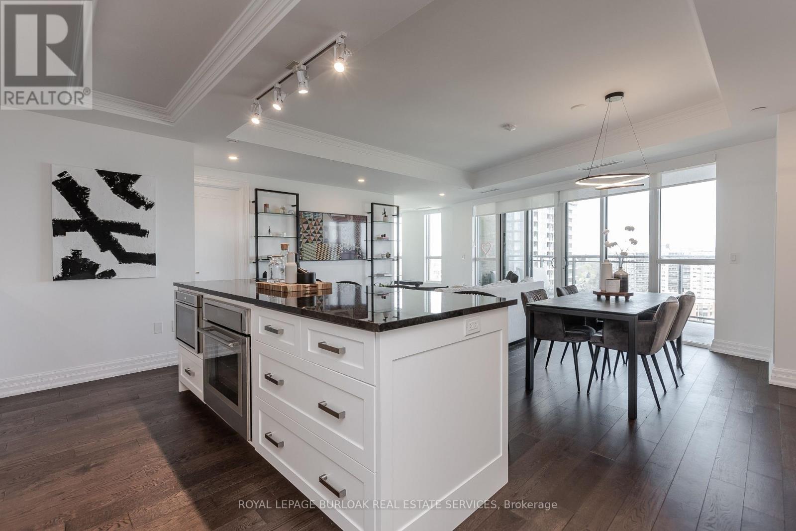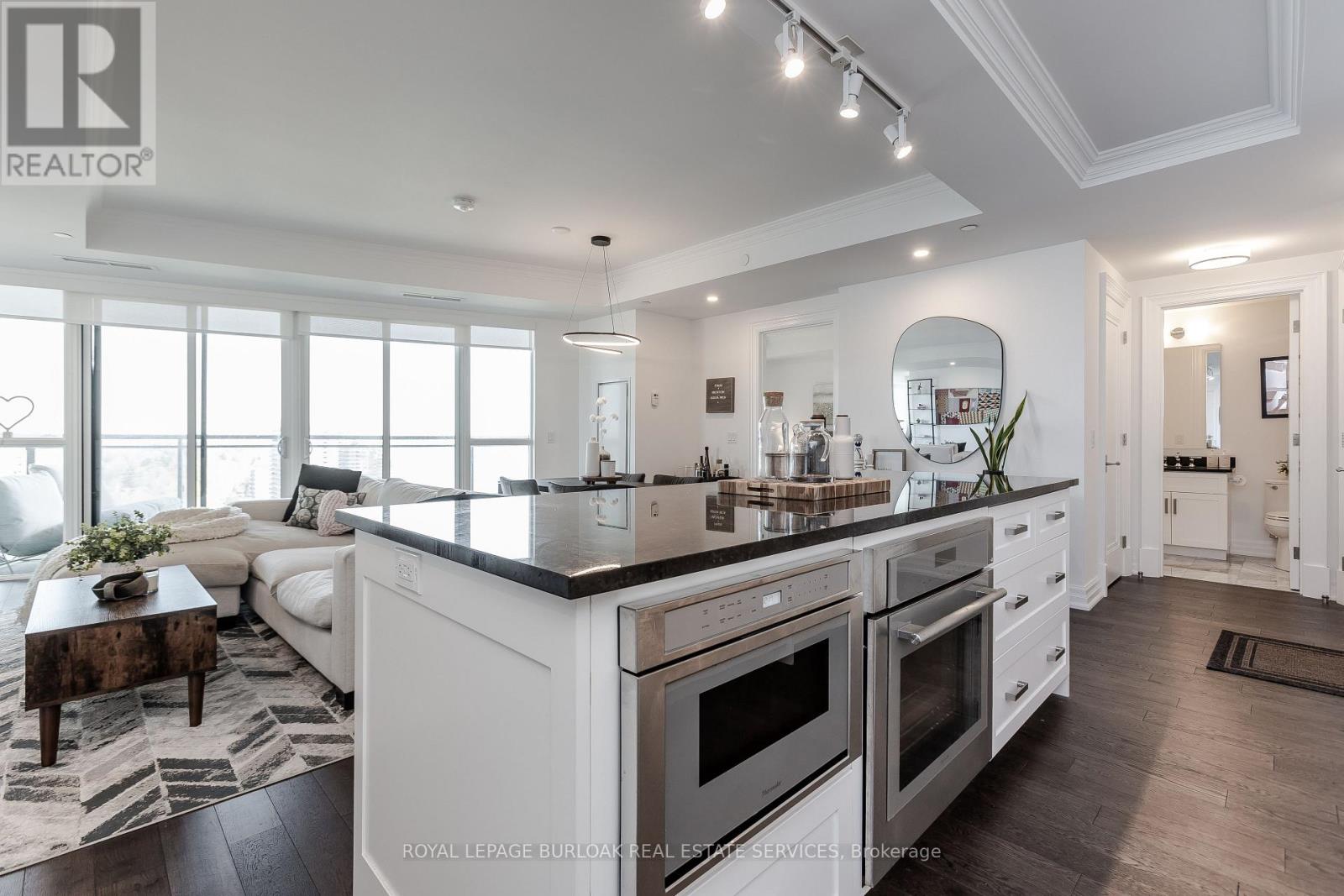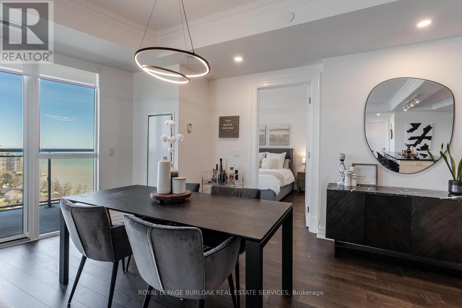 Experience unparalleled luxury at Bridgewater Residences on the lake. This stunning 1,269SF unit boasts a flawless layout and breathtaking, unobstructed views of Lake Ontario, from Burlington to the Toronto skyline. Every detail speaks of quality, from the hardwood floors to the high-end Thermador built in kitchen appliances, including a 5-burner gas range set in granite countertops. Floor-to-ceiling windows flood the open-concept living and dining area with natural light, while offering access to a spacious balcony equipped for BBQs. Both bedrooms feature spectacular views and luxurious en-suites-the primary with a 5-piece set including a separate tub and glass shower, all complemented by marble and granite finishes with heated floors. The secondary bedroom enjoys ensuite privileges and also boasts heated floors. A generous corner den provides a flexible space, ideal for a home office or gym, equipped with built-in cabinetry, which can be easily converted into a 3rd bedroom. Included are central vacuum and a garbage disposal unit. Enjoy the building's exclusive amenities: indoor pool, rooftop courtyard, dual gyms, games and party rooms, and a lakefront deck. Benefit from 24-hour concierge, bike storage, valet visitor parking, and two EV-ready parking spaces, enhancing this premium living experience. (id:4555)