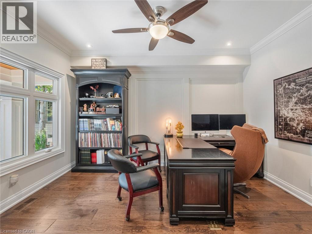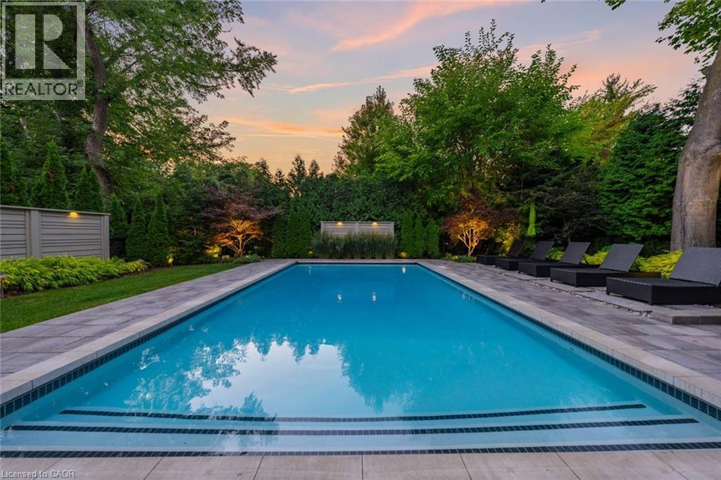 Set on prestigious Lakeshore Road in Roseland, one of Burlington’s most sought-after neighbourhoods this custom-built residence offers over 6,000 square feet of finely finished living space on a rare 200-foot-deep property. Located within the Tuck/ Nelson school district & just steps from the lake, it combines an exceptional address with remarkable scale & design.The main level is anchored by an elegant great room with a gas fireplace, custom built-ins with glass accents,& expansive windows overlooking the rear gardens. A private home office, formal dining area with a wet bar, & a chef’s kitchen designed for both daily living & entertaining set the tone for the home. The kitchen features a large quartz island with seating, dual dishwashers, dual Frigidaire Professional wall ovens, a gas range with decorative hood, warming drawer, microwave, & KitchenAid stainless steel refrigerator with ice& water. Custom soft-close cabinetry, a walk-in pantry, & a walkout to the covered patio complete this well-appointed space. A separate main floor laundry room with custom cabinetry, quartz counters, adds convenience. Upstairs, four bedrooms each feature their own private ensuite baths and custom closet organizers, including a self-contained in-law suite with a separate entrance featuring a living area, bedroom, and full bath ideal for extended family. The 3rd loft, currently used as a gym, offers flexibility as an additional bedroom or creative studio. The fully finished lower level extends the living space with a large recreation room with a wet bar, sitting area with gas fireplace, sixth bedroom with ensuite, music/media room,& a walk-up to the backyard. Set on a 200-foot-deep lot, the property offers rare privacy and scale, with a resort-style backyard featuring a heated saltwater pool, stone patio, covered terrace & outdoor kitchen. A three-car garage and additional additional parking complete this distinguished home, just minutes from downtown Burlington and the lakefront. (id:4555)