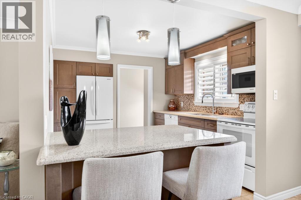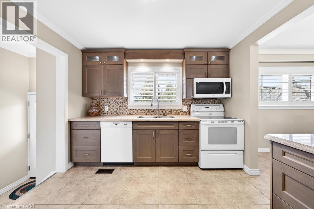 Solid, all brick bungalow with a Mid Century Modern vibe in the heart of downtown Burlington, offering timeless charm with thoughtful updates throughout. This well-maintained home features 3+1 bedrooms and 2 full bathrooms, ideal for families or those seeking flexible living space. The spacious living room has character and charm with a floor to ceiling stone fireplace and large updated windows. The renovated custom kitchen is a standout, complete with quartz countertops and separate dining area. A second living space is found in the lower level along with a 4th bedroom, 3 pc bath, and a huge laundry/storage/utility area to make your own. Major updates provide peace of mind, including a newer roof, washer and dryer, eavestroughs, gutter guards, irrigation system and a sump pump with weeping tile. This private and spacious corner lot is 63.64 x 144 deep, a unique gem offering tons of potential. Steps to Tom Thompson French Immersion Pubilc School and short walk to BCHS and the Burlington Go Station - perfect for commuters and families alike. Enjoy a highly walkable lifestyle on this very quiet street with easy access to downtown shopping, community events, parks, restaurants, waterfront, shops and more. A perfect blend of character, quality, and modern convenience in a prime location. (id:4555)