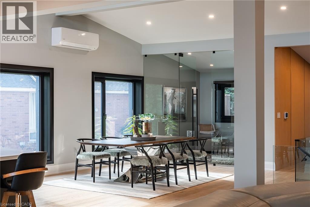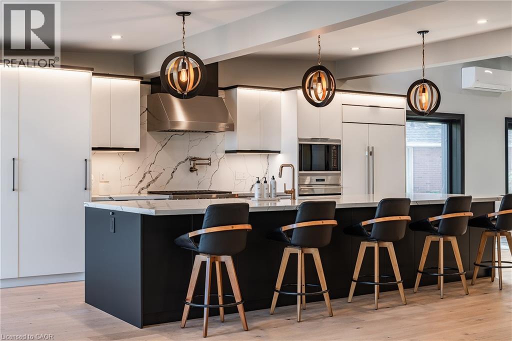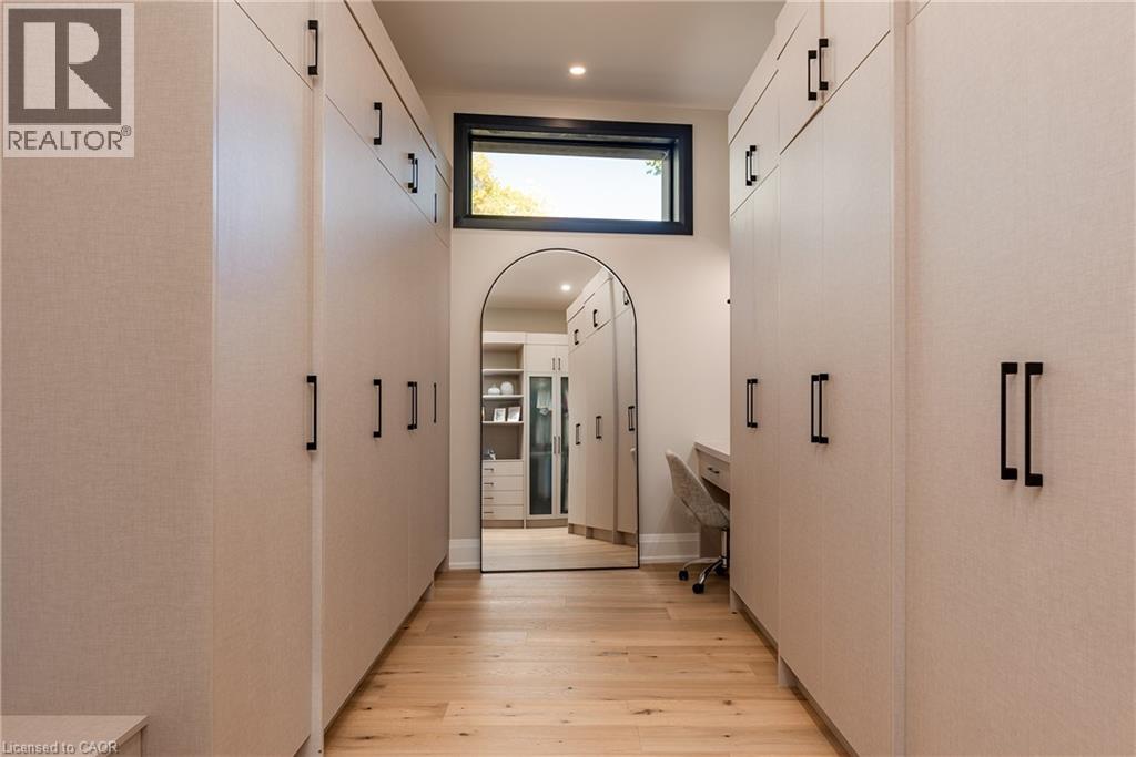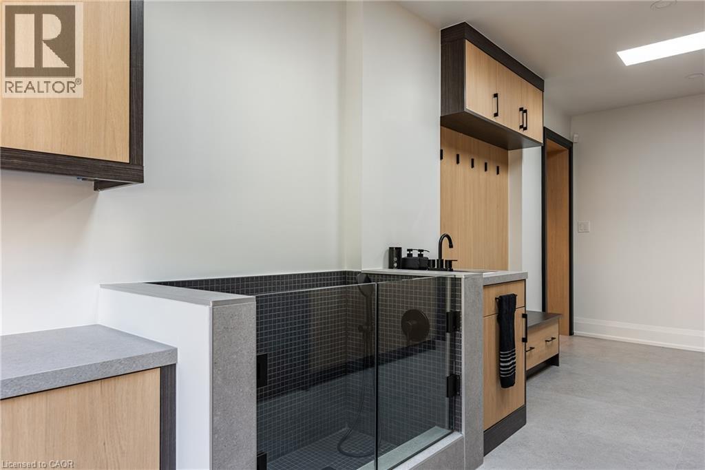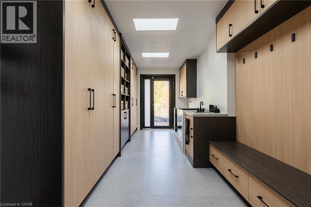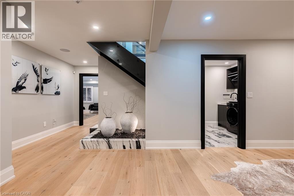 Natural serenity meets modern design at 121 Edgecliffe Place. Set on a rare 29,000 sq. ft. pie-shaped lakefront lot where Appleby Creek meets Lake Ontario, this exceptional property offers 105 feet of direct waterfront and 130 feet along the creek with riparian rights, creating an irreplaceable natural setting in the city. This fully renovated home offers over 5,200 sq. ft. of finished living space with floor-to-ceiling windows that draw the lake and landscape into every room. The open-concept main level features 12-foot peaked ceilings, engineered light hardwood, and dark-framed windows that frame panoramic southern views. A chef’s kitchen anchors the space with a large island and top-tier appliances, ideal for entertaining. The walkout lower level accommodates four bedrooms, each with its own ensuite and ductless air conditioning unit. The primary suite opens directly to the lakeside deck, featuring a spa-inspired ensuite with dual rain showers and a massive walk-in closet with custom cabinetry. Radiant in-floor heating extends throughout the home for year-round comfort. Multiple outdoor living spaces blur the line between indoors and out. A covered lower deck and expansive upper terrace with built-in BBQ maximize lakefront enjoyment and capture the home’s stunning setting. Modern. Peaceful. One of a kind on the water. (id:4555)