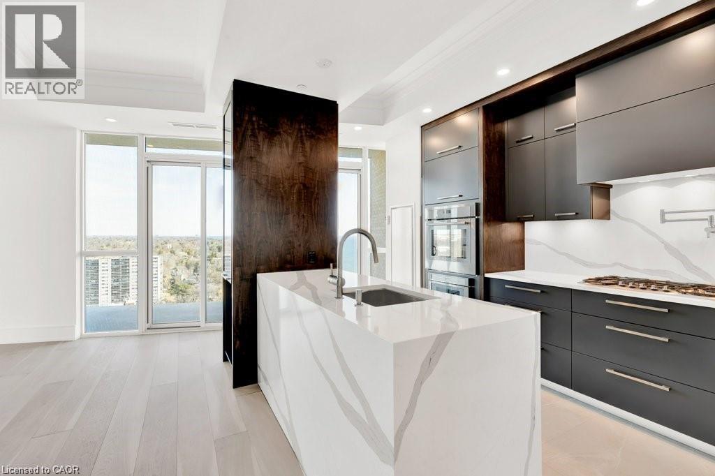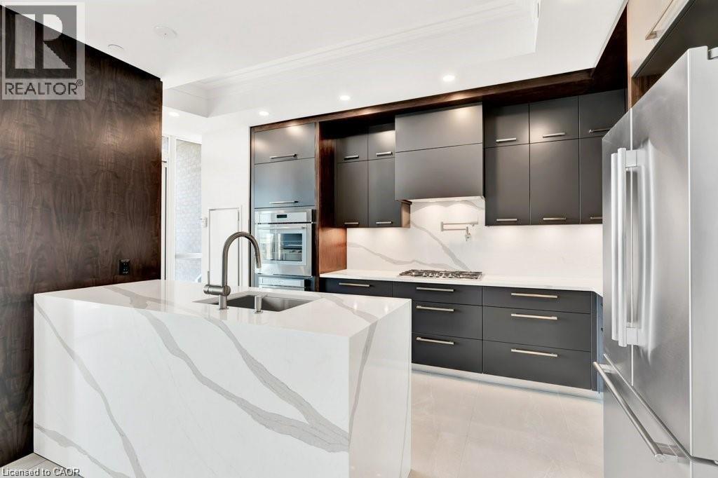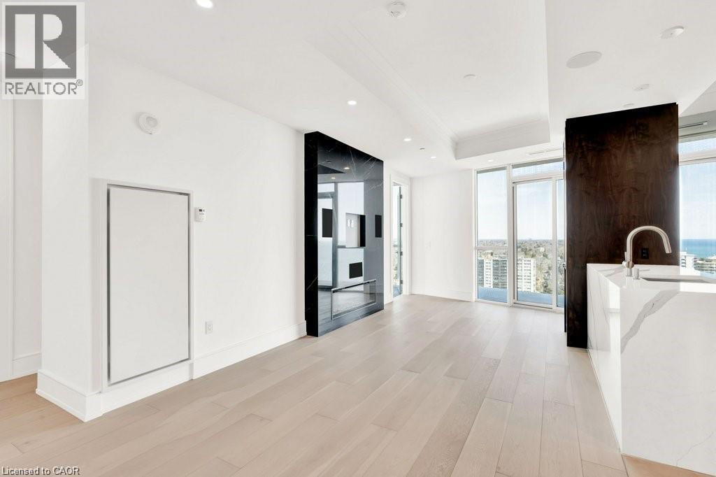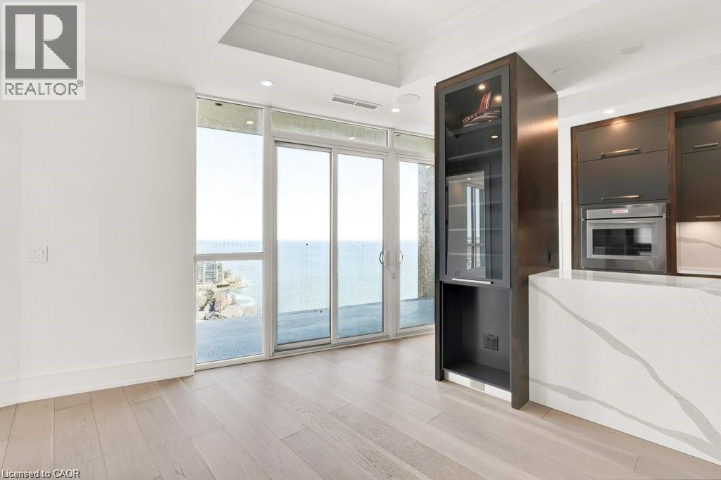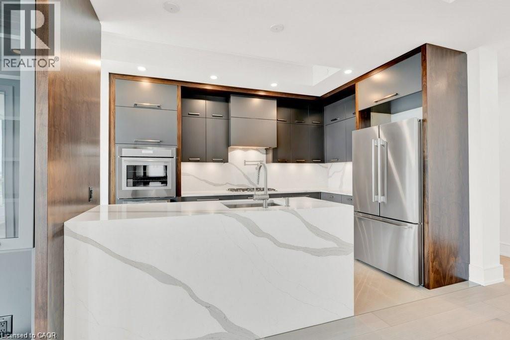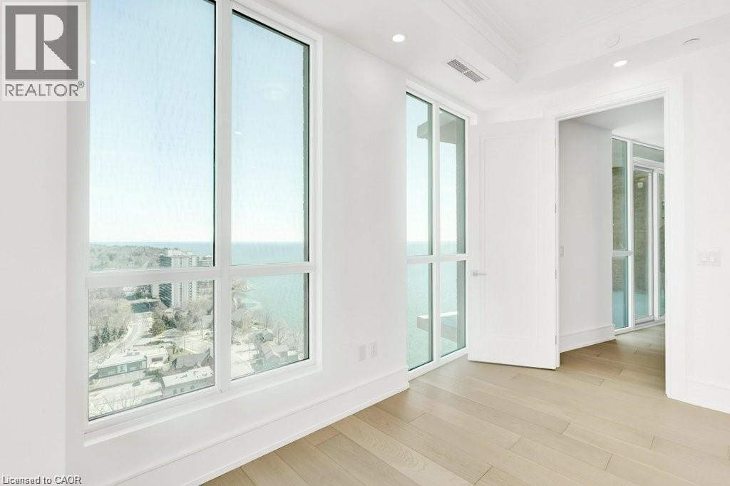Stunning Luxury Sub-Penthouse Suite at the exclusive Bridgewater Residences offering stylish resort style living on the Burlington waterfront. This elegantly appointed 2 Bed+Den, 2 Bath suite will take your breath away with spectacular Lake views & over $200K in upgrades; every room is sheer luxury. Chic engineered white oak floors, 7' doors, 9' tray ceilings, LED potlights, Designer Ciot Tile, b-i surround sound, auto. blinds & closet lights & more! Private Primary suite w/luxe ensuite, double closets w/custom organizers & w-o to large balcony. The bathrooms are pure opulence with heated marble floors, oversized w-i glass showers, quartz vanities & Kohler fixtures. 2nd Bedroom with Ensuite Privilege to stunning 4 pc bath w/heated floor. Chef's Kitchen w/Thermador panel appliances, gas cooktop w/Grohe pot filler, microwave drawer, custom walnut accent cabinetry to ceiling, s/s kick plates, pantry & quartz island w/waterfall. Living Room features stunning Lake views through floor to ceiling windows, gorgeous quartz feature wall w/b-i media & sleek horizontal fireplace. Ideal South-East exposure & views from every room w/floor to ceiling windows that capture panoramic lake & city views. The flexible floor plan offers Den with beautiful floor to ceiling views of the water; easily convertible to an Office for those working from home. Two large balconies offer stunning panoramic views of the Lake and Toronto skyline & escarpment Sunsets. 2 Parking (1 with Charger), 24 hr concierge, valet visitor parking, rooftop lounge, gym, party room, Pearle Hotel & Indoor Pool access. Easy hwy & transit access. Enjoy an easy Lakefront Lifestyle, steps to everything downtown Burlington has to offer; unique shops, fine restaurants, art gallery, theatre & the award winning waterfront. (id:4555)