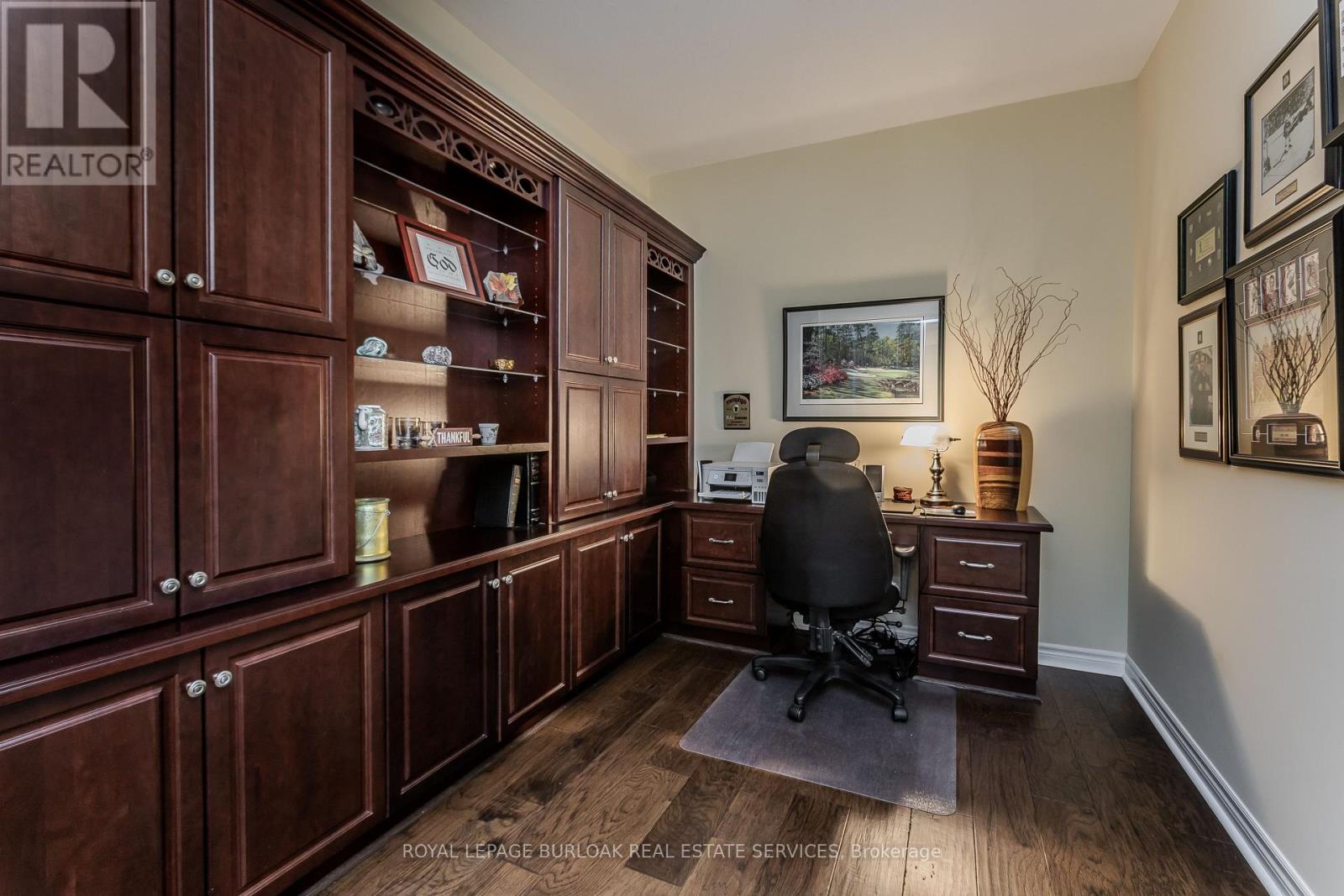 Welcome to this beautifully designed condo in The Dovercourt, a well-maintained low-rise building nestled in the sought-after Aldershot community. Offering one of the larger custom layouts in the building, this customized suite blends space, functionality, and style in a prime location-just mins to the GO Station, QEW, Royal Botanical Gardens, Burlington Golf & Country Club, and everyday amenities. Step inside to discover a bright and inviting open-concept layout, with hardwood flooring throughout the main living areas. The kitchen is a true focal point, featuring quartz countertops, an oversized breakfast bar perfect for casual dining or gathering with guests, a stylish tile backsplash, black stainless steel appliances, and ample cabinetry to meet all your storage needs. Overlooking the main living space, it connects beautifully to the dining and living areas. The spacious living room is filled with natural light and showcases a tray ceiling with a beam accent, along with walkout access to a private balcony. A versatile den offers the potential to convert into an additional bedroom, while a separate home office with French doors provides the ideal work-from-home setup. The primary bedroom is generously sized and designed as a private retreat, complete with dual closets and a well-appointed 3-piece ensuite featuring an oversized granite vanity and a walk-in shower. A second bedroom also offers direct access to the balcony, creating a bright and airy space for family or guests. A 4-piece main bathroom adds further convenience. Additional features include a storage locker and two parking spaces-one underground and one surface. Residents enjoy access to a party/media room within this well-managed building. This is a rare opportunity to own a spacious, move-in-ready condo with a flexible layout in one of Burlington's most convenient and connected locations-perfect for professionals, downsizers, or those seeking low-maintenance living without compromising on space. (id:4555)