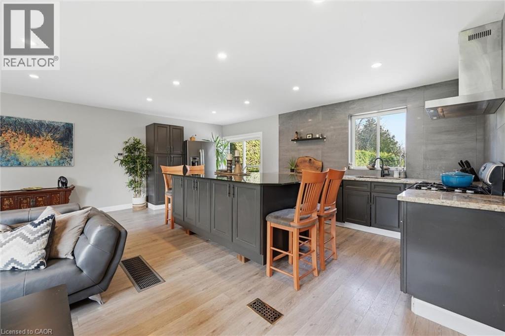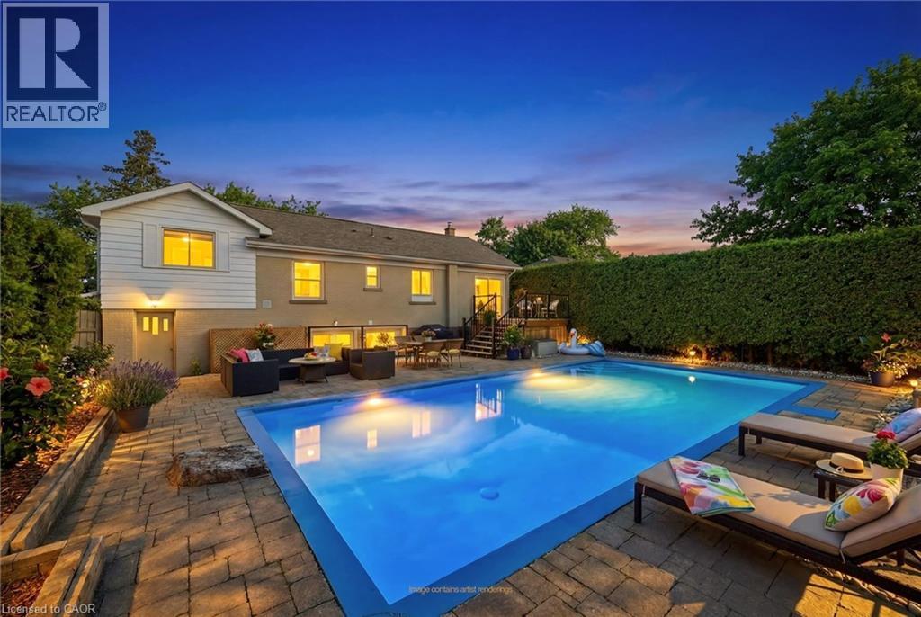 Tucked onto a 60 x 120 corner lot and surrounded by mature cedars for year-round privacy, this beautifully updated home in Mountainside offers space, style, and flexibility that’s hard to find. The main level features a bright, open-concept layout designed for everyday living and entertaining. A large island anchors the kitchen, complemented by modern tile feature walls and recessed lighting throughout. The space flows seamlessly into a spacious living area filled with natural light. This level offers three well-sized bedrooms and two tastefully updated full bathrooms -one with a spa like walk-in glass shower, the other with main floor laundry and a freestanding soaker tub. The backyard is built for summer, featuring a large inground concrete pool, expansive lounge area, green space and pool house. The fully finished lower level offers a separate entrance, kitchen, bedroom, full bath, rec room, and wood-burning fireplace—ideal for multi-generational living or income potential, or may come in handy for pool party guests who may want to extend their stay. Located in a quiet, family-friendly neighbourhood close to parks, schools, shopping, and highway access, this is a rare opportunity to own a well-appointed home in an established community at an exceptional value. (id:4555)