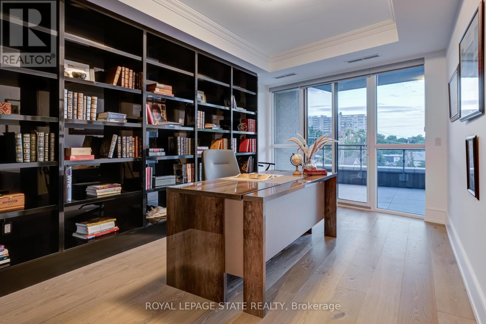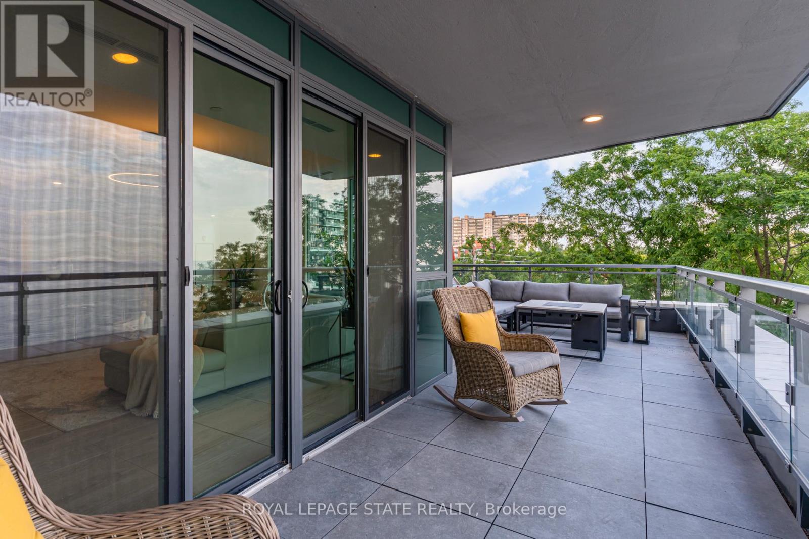 Luxury Waterfront Living in the Heart of Downtown Burlington at the prestigious Bridgewater Residences - where timeless elegance meets lakeside tranquility. Spanning 2,200 square feet of refined living space, plus an expansive 725+ square foot private wrap-around terrace, this southeast-facing corner suite offers breathtaking, unobstructed views of Lake Ontario. Designed with meticulous attention to detail, this 2- bedroom plus den, 3-bathroom residence is rich with luxury upgrades and sophisticated design elements. Soaring floor-to-ceiling windows flood the space with natural light, while the open-concept layout features a gas fireplace and a spectacular gourmet kitchen equipped with premium Thermador appliances, a generous granite island, and custom cabinetry - ideal for both everyday living and entertaining. The hotel-inspired primary suite is a true retreat, complete with terrace access, panoramic lake views, a spacious walk-in closet, and a spa-like ensuite featuring an oversized glass shower and elegant finishes. A second bedroom with ensuite and a separate den/home office (easily adaptable as a third bedroom) ensure flexibility and privacy for guests or family. A dedicated laundry room and a stylish powder room round out the suite's thoughtful layout. Step outside to your private terrace and take in the serenity of waterfront living - the perfect backdrop for morning coffee, summer dining, or evening relaxation. As a Bridgewater resident, enjoy access to resort-style amenities, including a rooftop terrace, party lounge, fitness centre, piano room, and VIP privileges at The Pearle Hotel & Spa, featuring a second gym and a luxurious indoor pool. This rare offering also includes two premium accessible parking spaces next to the elevator, as well as a private storage locker. Experience the best of Downtown Burlington - just steps to the Waterfront Trail, Spencer Smith Park, the Pier, and a vibrant mix of boutique shopping, fine dining, and cultural attractions. (id:4555)