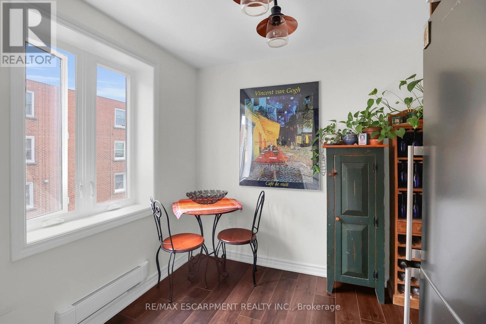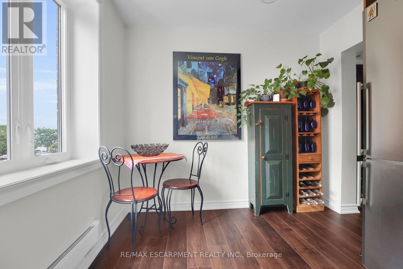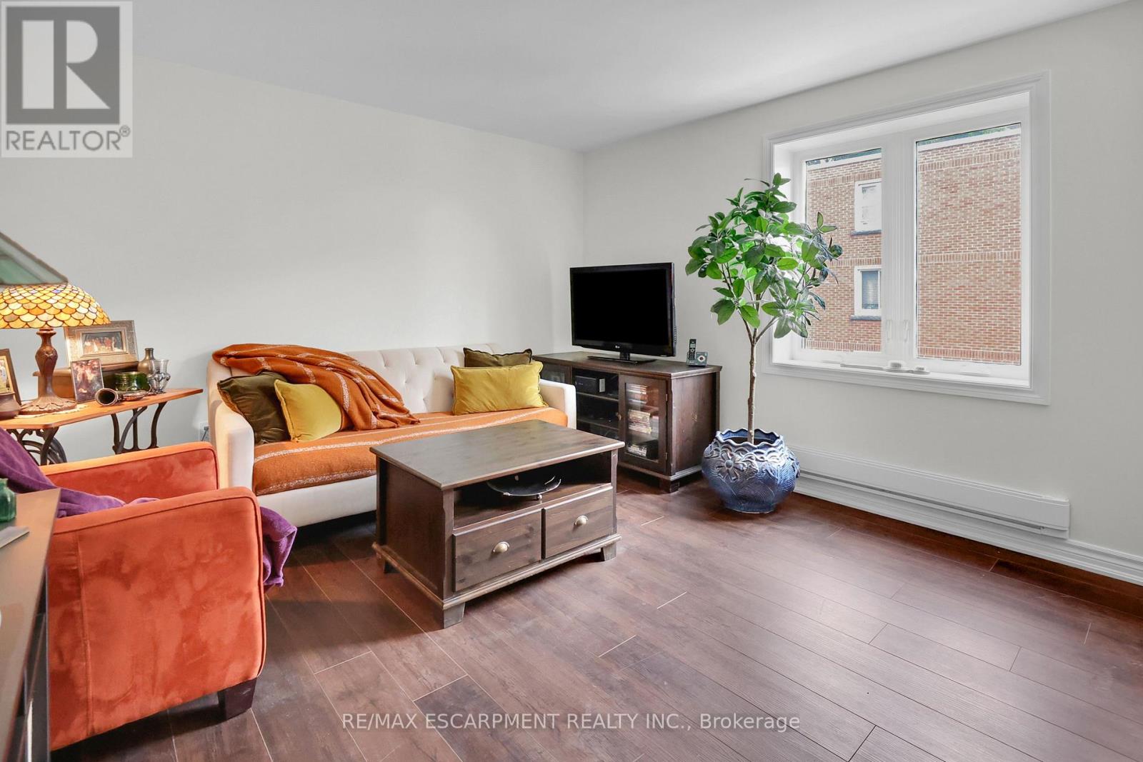 Welcome to 37-1347 Lakeshore Road, a beautiful fully renovated 2-bedroom, 1-bath co-op in the heart of downtown Burlington. Offering 832 sq ft of fully transformed space, this home blends modern function with vintage charm-just steps from Spencer Smith Park, the waterfront trail, and Lake Ontario views.Every detail has been thoughtfully upgraded, including new drywall and a full electrical overhaul for safety and modern living. New swing-out windows welcome fresh lake breezes, while dark wood-style floors add warmth throughout.The kitchen shines with burnished copper fixtures, butcher block counters, and a classic white farmhouse sink. The bathroom echoes a 1949 film noir aesthetic, fully tiled in black and white with a vintage-style sink. Refined finishes-bronze hardware, modern wainscotting, detailed trim, and a spacious French-door closet-enhance the space.Equipped with premium compact Blomberg appliances, this unit balances style and efficiency. A black fire-rated front door with Deco silver numbering completes the look, merging heritage with contemporary design.Steps to the lake, trails, dining, and with easy highway access, this is Burlington living at its best-a rare find for those who value style, quality, and location. Your lakeside lifestyle starts her. (id:4555)