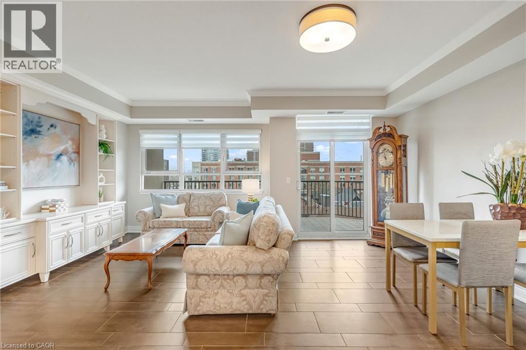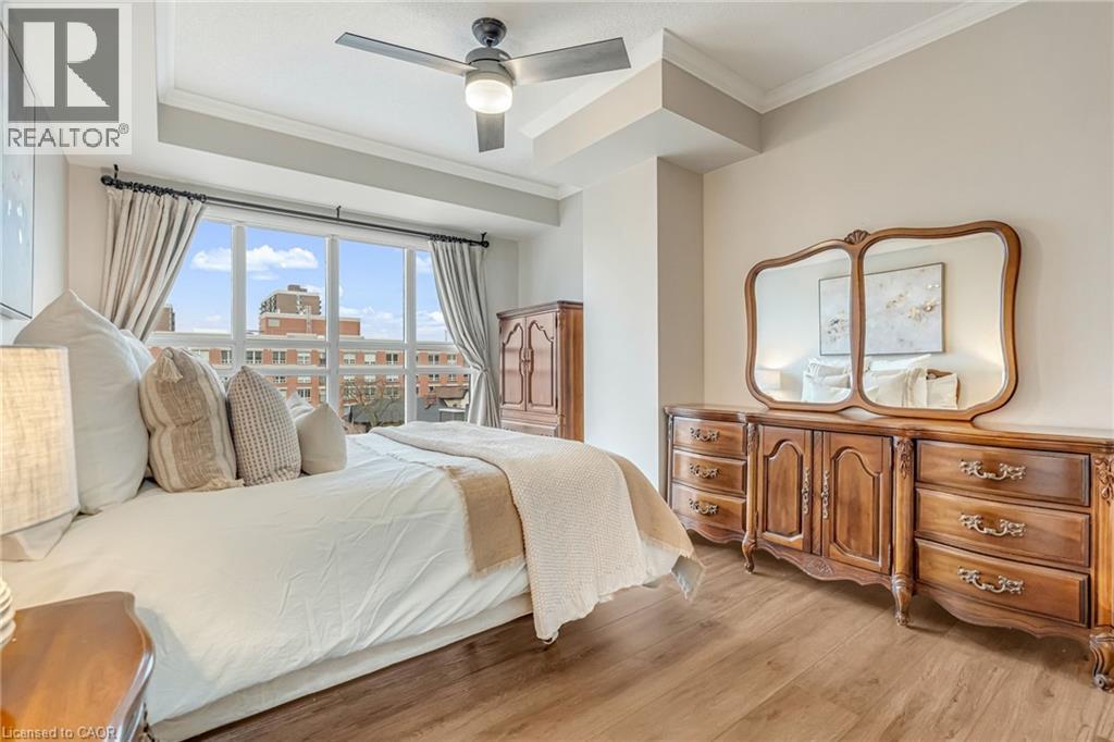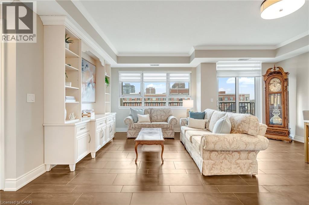 Location, location. Welcome to The Baxter, one of downtown Burlington’s most desirable condo residences, where everything you need is right at your doorstep; restaurants, boutique shopping, grocery stores, the lakefront, Spencer Smith Park, and scenic walking and biking trails. This spacious and beautifully updated one-bed, one-bath suite offers approximately 871 sq ft. of thoughtfully designed living space. The unit has been tastefully renovated with a custom kitchen featuring soft-close cabinetry, Caesarstone countertops, pot drawers, and custom millwork, complemented by new flooring and updated lighting throughout. A large north-facing balcony extends your living space outdoors and overlooks The Village Square. Additional highlights include ensuite laundry, an oversized storage locker conveniently located just across the hall, and secure underground parking. Residents enjoy recently renovated common areas, concierge service, and exceptional value with all-inclusive maintenance fees covering heat, hydro, water, parking, locker, and as of June 1, 2026 will also include high-speed internet and cable with streaming services. An ideal opportunity to enjoy a low-maintenance lifestyle in Burlington’s vibrant and ever-growing downtown core. (id:4555)