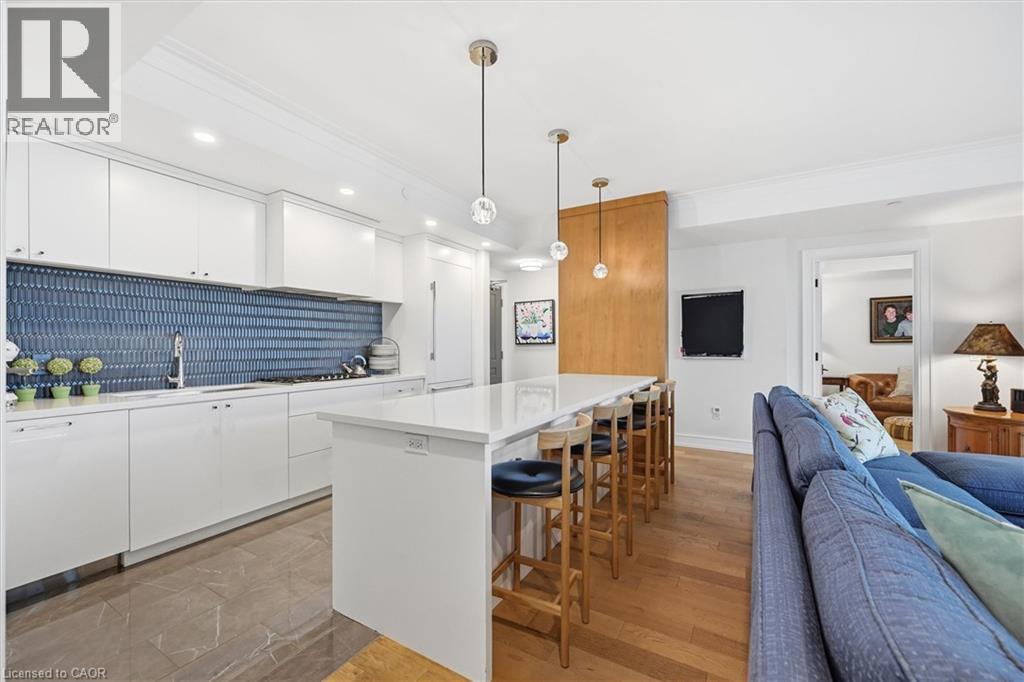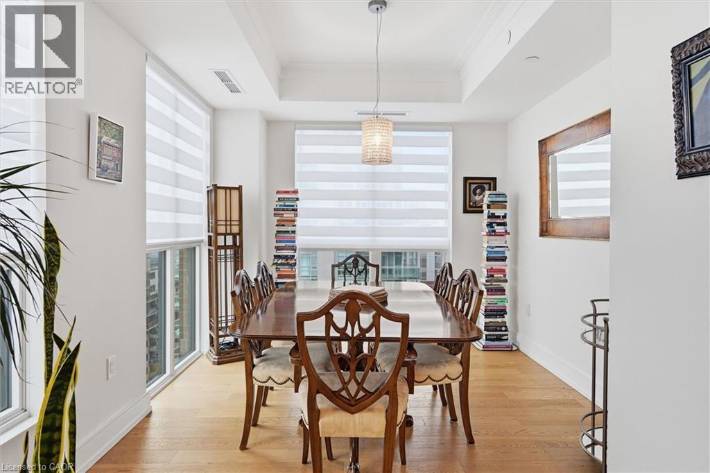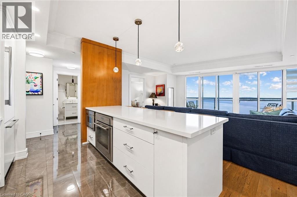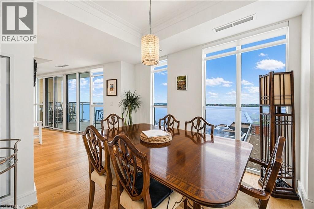 Welcome to this exceptional corner residence, where refined living meets breathtaking, unobstructed views of Lake Ontario. Perfectly positioned in the heart of downtown Burlington, this coveted address places you just steps from acclaimed restaurants, boutique shops, cafés, the Performing Arts theatre, Spencer Smith Waterfront Park, the Waterfront Trail, the Art Gallery of Burlington, and Burlington Beach. Bridgewater Private Residences, seamlessly connected to the Pearl Luxury Hotel, offer an unparalleled lifestyle of comfort and sophistication. Residents enjoy privileged access to the Pearl Spa indoor pool and fitness centre, along with an array of premium amenities including a 24-hour concierge, elegant party and games lounge, additional fitness facilities, a rooftop terrace with sweeping lake views, bike storage, and valet visitor parking. This beautifully appointed 1,253 sq. ft. Gluckstein-designed suite showcases elevated finishes throughout, including custom cabinetry and marble flooring. The thoughtfully curated layout features two bedrooms, each with a private ensuite, as well as a dedicated dining room ideal for entertaining. Expansive floor-to-ceiling windows complete with automatic blinds, flood the space with natural light while framing the spectacular waterfront backdrop. Step onto the 133 sq. ft. private balcony to unwind and take in the serene, ever-changing lake views. Additional features include two underground parking spaces and a storage locker, offering both convenience and peace of mind. A rare opportunity to own a premier waterfront residence in one of Burlington’s most distinguished buildings. (id:4555)