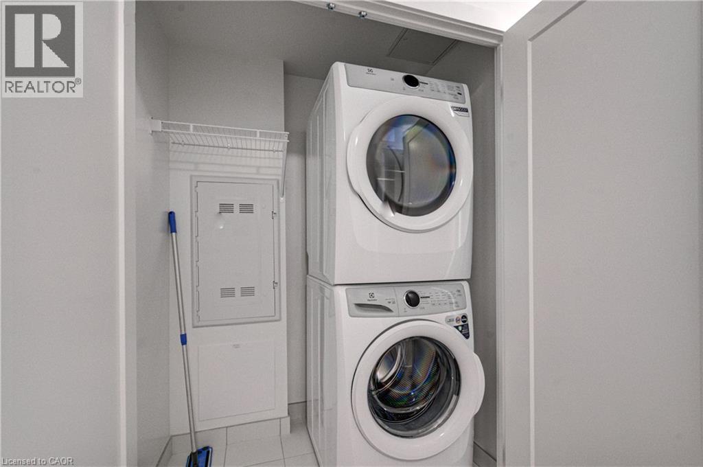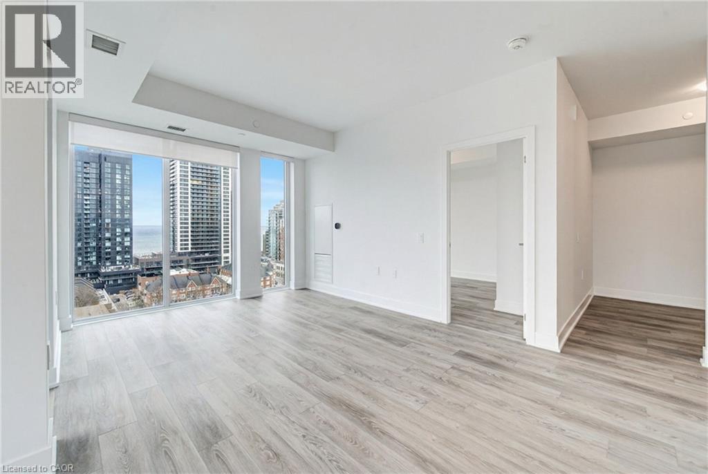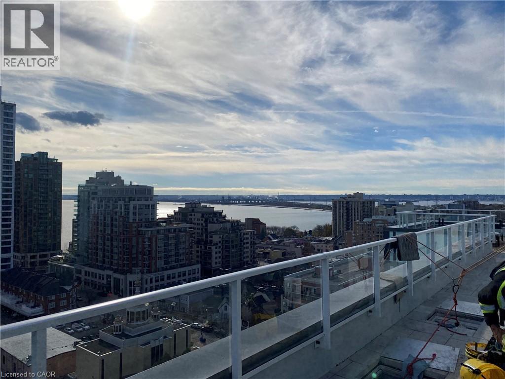 Welcome to one of the largest suites in the newly built Martha James building, an exceptional 949 sq ft corner unit. This upgraded 2-bedroom + den, 2-bath residence is filled with natural light & enjoys panoramic views of Lake Ontario along with warm morning sun exposure. Thoughtfully designed, the open-concept layout features 9 ft ceilings, floor-to-ceiling windows, sleek vinyl flooring, motorized roller shades, mirrored closet doors & Rogers WiFi included. The modern kitchen is equipped with full-size stainless steel appliances, a built-in microwave, quartz countertops with a full quartz backsplash and upgraded finishes throughout-perfect for both everyday living & entertaining. The kitchen area was designed to allow space for a table & the S/E exposure in this area leads to a sliding glass door W/O to the private balcony. The primary bedroom offers great views & boasts an impressive 3-pce ensuite bathroom as well as double closet area with mirrored doors. The 2nd bedroom is generous in size & offers direct access to the main 4-pce bathroom. The main living area is ideal for entertaining & it is designed to take full advantage of the panoramic views with the floor to ceiling windows. The versatile den offers ideal space for a home office or additional living area. Please note the ensuite laundry area. Enjoy the added value of a premium parking spot & an oversized locker (117 SQ FT with electrical outlet, P4-A)-a rare & highly desirable feature. Ideally located just moments from shopping, dining, waterfront trails, parks, Go & Via transit, QEW, 407 and 403 highways, this stunning corner suite delivers upscale living in Downtown Burlington. Residents enjoy 24/7 concierge service, an elegant lobby lounge, smart parcel system. Triple AAA tenant. Min 1 year prefer long term lease. NON smoker. NO pets. Provide Credit check with OREA rental appl. Internet is included. 2 bed, 2 bath + 1 den suite. Tenant to pay all utilities incl, water, hydro & tenants insurance. (id:4555)