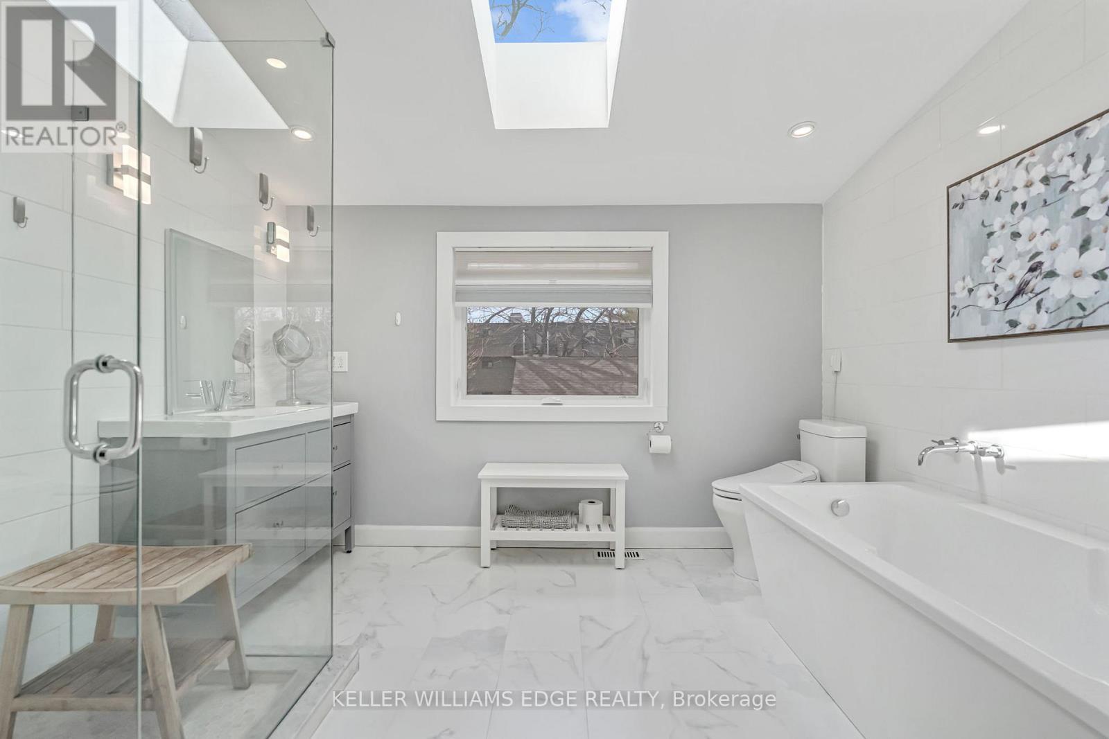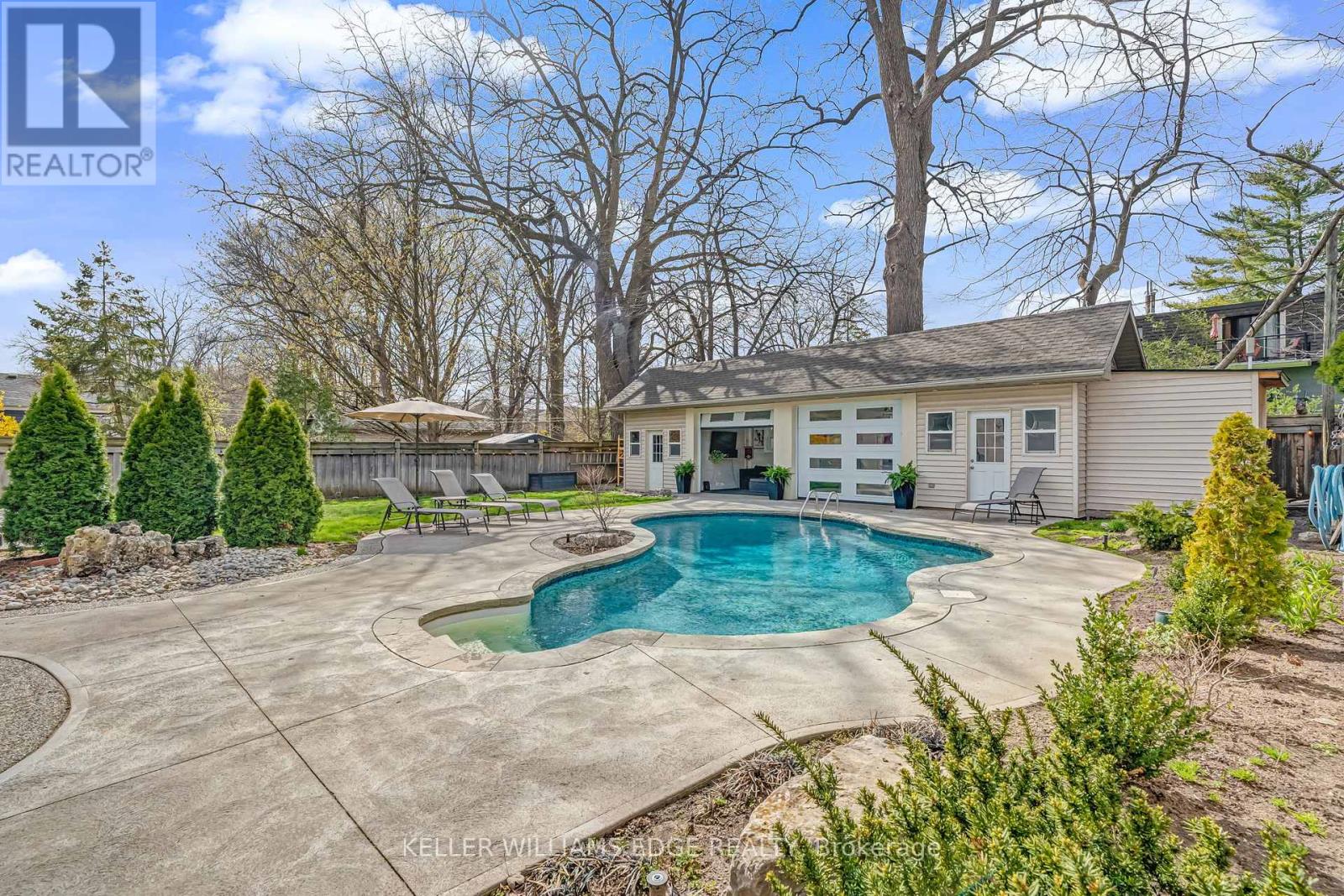 There's a reason people fight to get onto Deyncourt Drive - and this bungaloft is exactly why. Extensively renovated in 2018 on a stunning 65 x 140 ft lot in Burlington's coveted Downtown Central neighbourhood, this is the kind of home where the layout just makes sense, the finishes feel right, and the backyard makes you forget the rest of the world exists. Step inside and the vaulted ceiling opens things up immediately. A floor-to-ceiling stone feature wall with gas fireplace anchors the living and dining space, hardwood floors run throughout, and the kitchen delivers everything a family or entertainer could want: stainless built-in appliances, chef's gas range, massive island, and endless counter space - all bathed in natural light from skylights above. The floorplan is genuinely thoughtful - two bedrooms and a 3-piece bath tucked quietly along their own private wing on the main level, while a half-flight up, the primary suite feels like a world apart. Walk-through closet, freestanding tub, glass shower, skylit and serene, overlooking the backyard. Main floor laundry, two sets of sliding doors on opposite sides of the home - every detail considered. The backyard is the closer. Saltwater pool just steps from an infrared sauna, full bath, and a 419 sq ft heated pool house - permitted and winterized with a year-round living room and workshop. Whether it becomes a she-shed, man cave, or studio, it's a space people don't expect to find. A fully finished basement adds over 1,275 sq ft more for whatever life calls for. Steps to the vibrant core - downtown Burlington, the waterfront, top-rated schools, and Burlington GO. Homes like this on streets like this don't come around often. (id:4555)