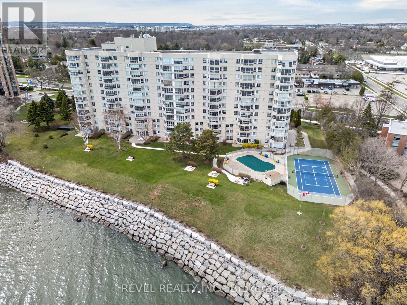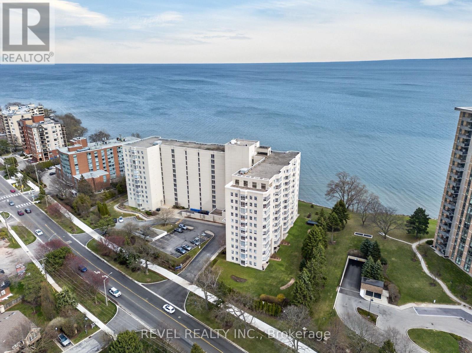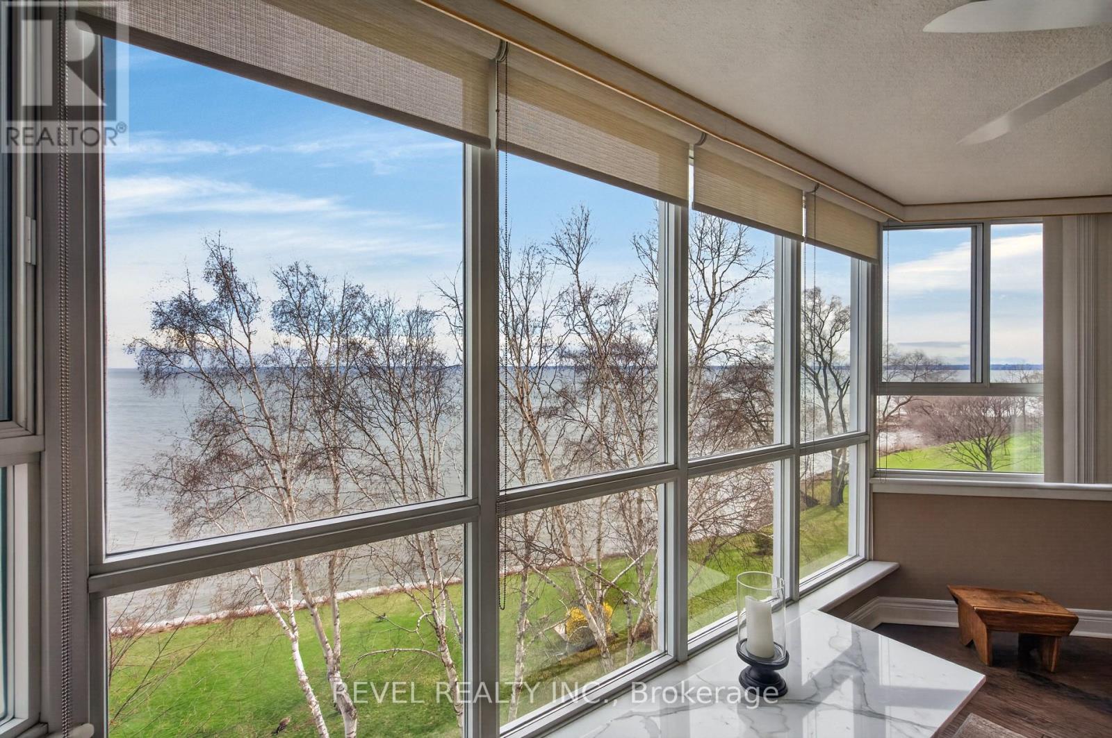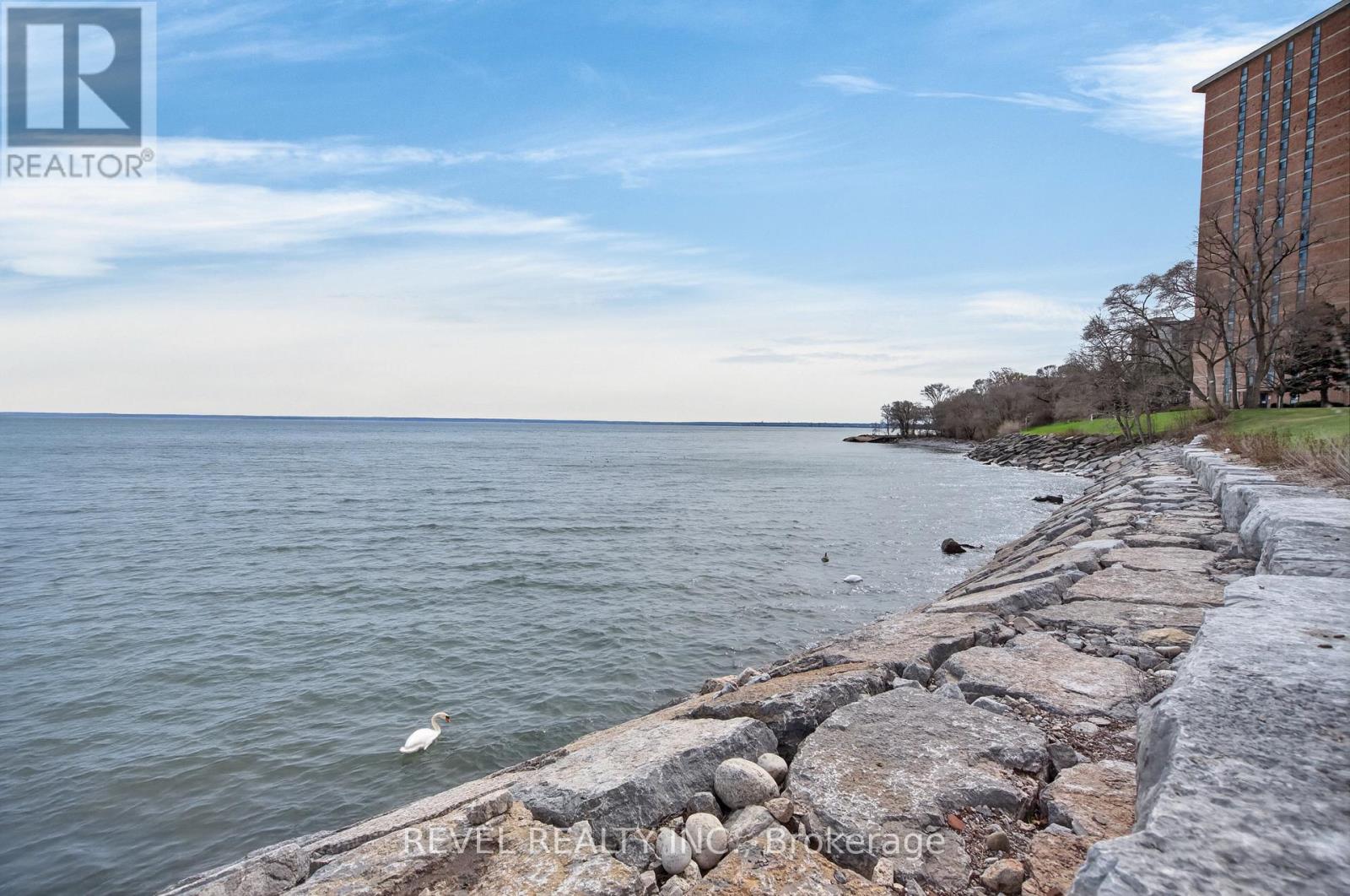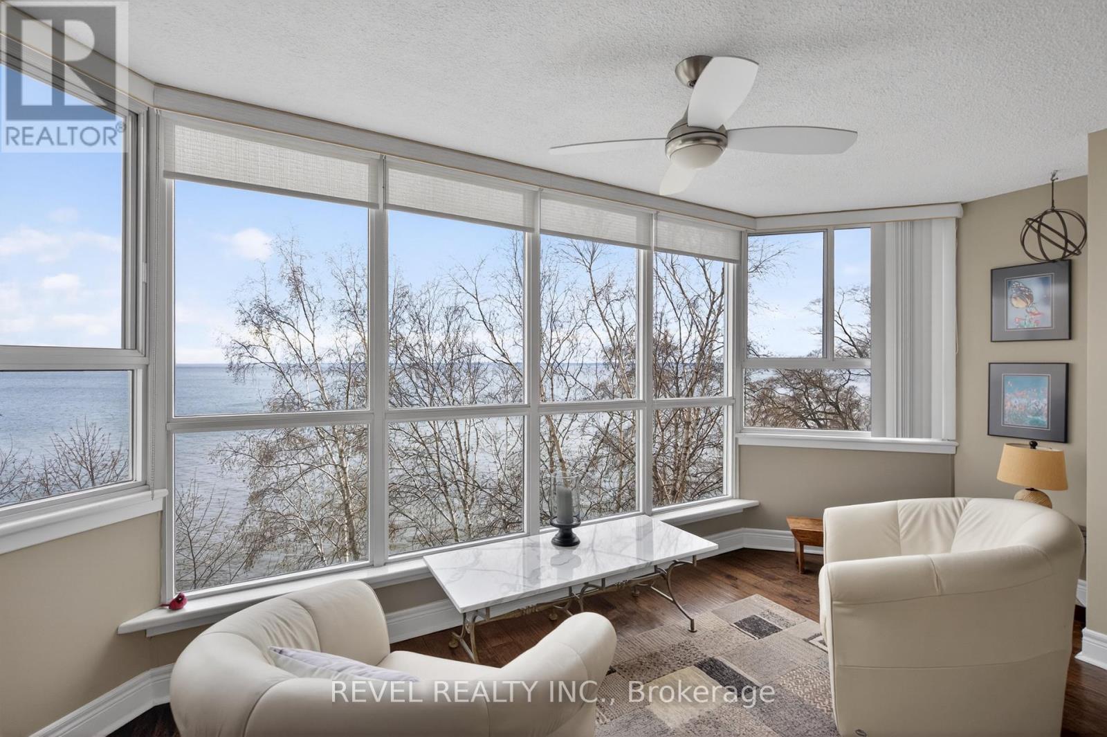 Welcome to Royal Vista! Stunning lakefront living with fantastic views. This gorgeous and spacious unit boasts top to bottom renovations showcasing the perfect location overlooking Lake Ontario.Upon entry you'll be greeted by a beautiful open concept living room/dining room complete with additional sitting space in front of the panoramic windows making the massive living space bright and inviting, perfect for entertaining guests or getting lost in the gorgeous views.A fully updated kitchen including newer stainless steel appliances, stone counters with a tile backsplash and clean cabinetry add to the warmth and appeal.The generous master bedroom includes an updated en suite bathroom with subway tile around the bathtub, new vanity and flooring. A second spacious bedroom plus additional bathroom with glass shower provide even more comfort and living space.Carpet free, with luxurious hand scraped wood flooring, new trim, in suite laundry and loads of closet and storage space make this unit one of a kind.Royal Vista also includes top notch amenities including a party room with a full kitchen, a full gym along with a dry sauna. Once the weather warms there's also a large outdoor pool a tennis court which can also be used for pickleball.Units in this building don't often come up, especially ones with this view and attention to detail. Check out this unique, exquisite place before it's gone! (id:4555)