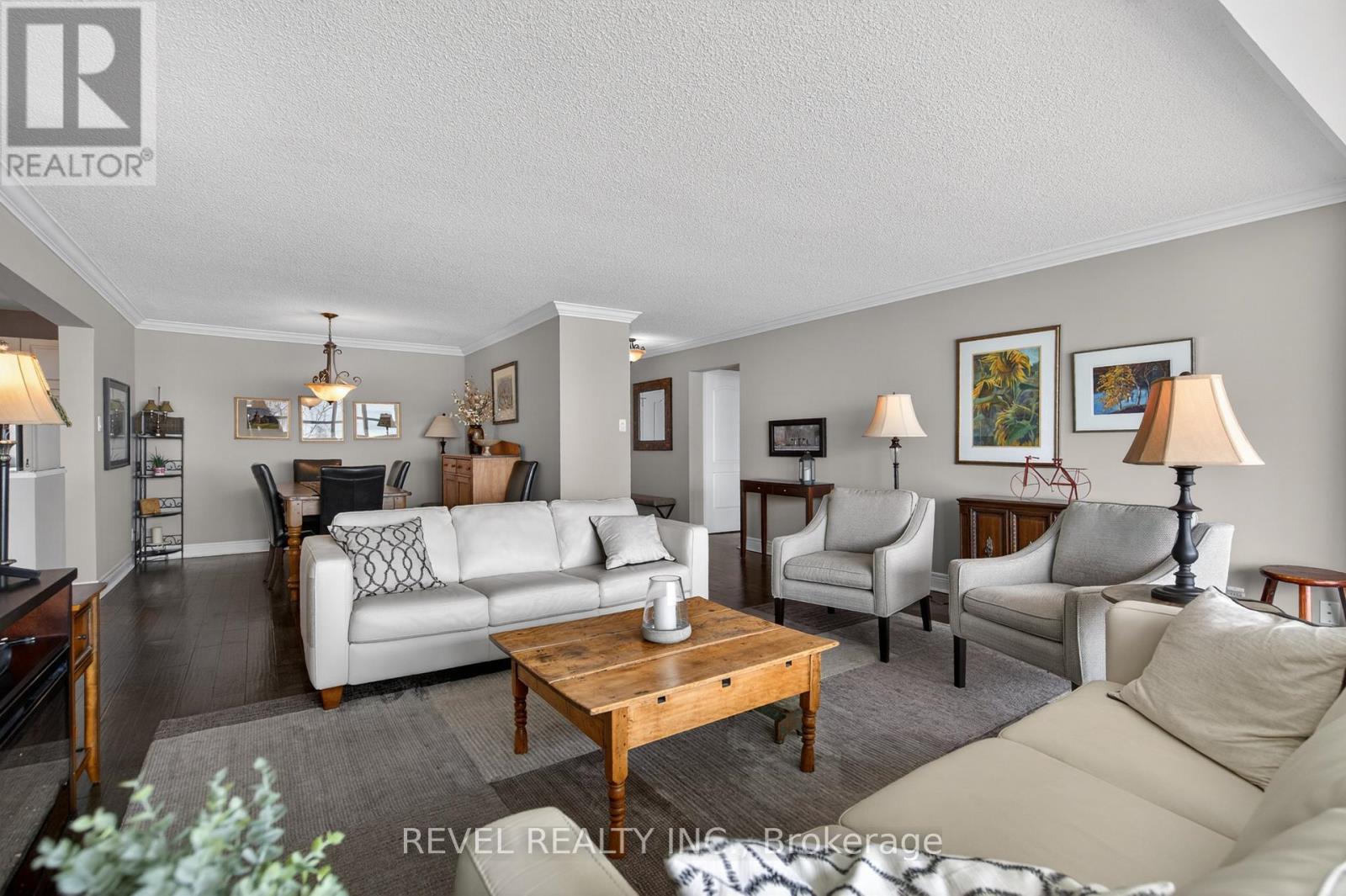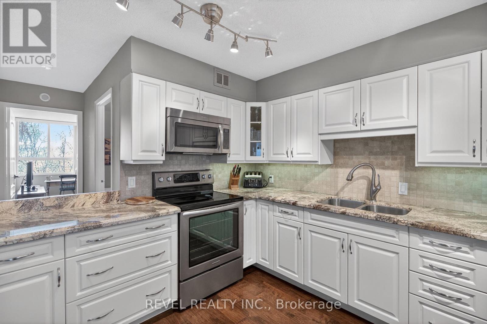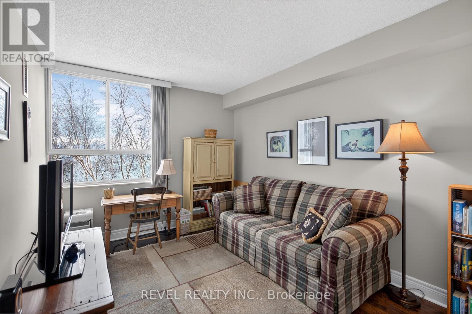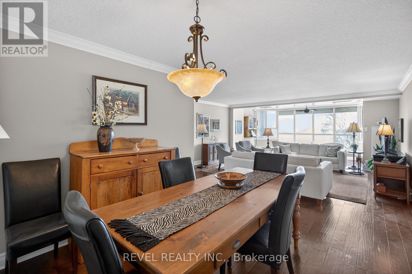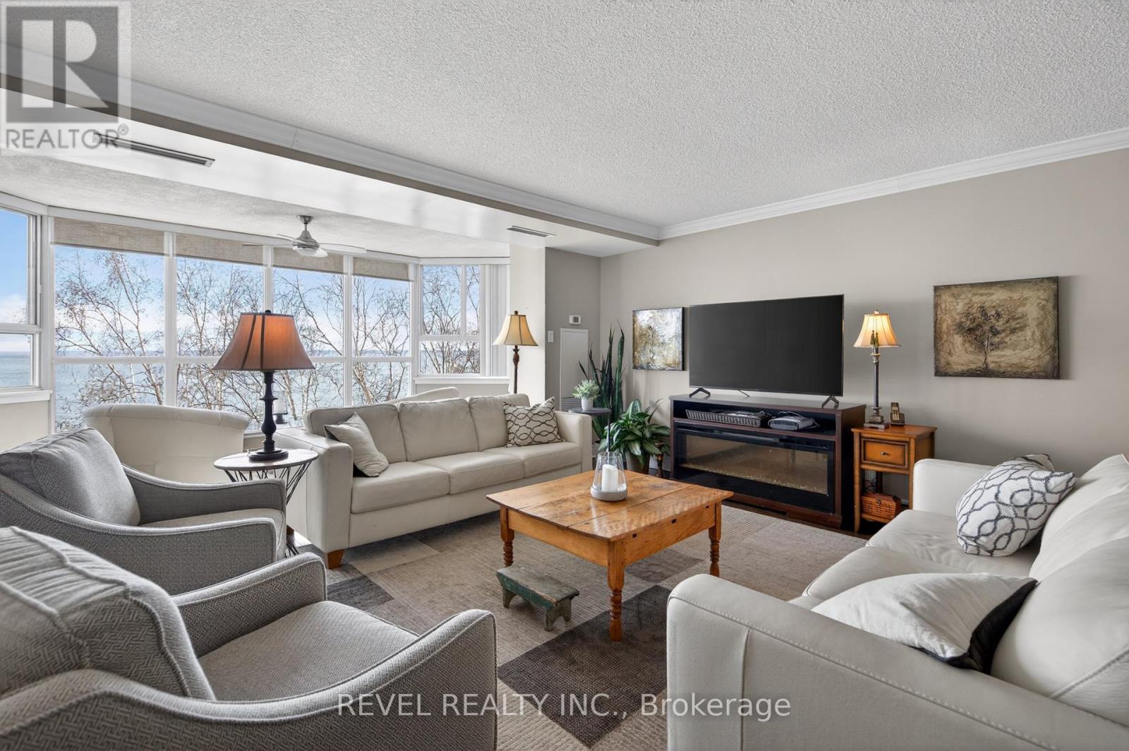 Welcome to Royal Vista! Stunning lakefront living with fantastic views. This gorgeous and spacious unit boasts top to bottom renovations showcasing the perfect location overlooking Lake Ontario.Upon entry you'll be greeted by a beautiful open concept living room/dining room complete with additional sitting space in front of the panoramic windows making the massive living space bright and inviting, perfect for entertaining guests or getting lost in the gorgeous views.A fully updated kitchen including newer stainless steel appliances, stone counters with a tile backsplash and clean cabinetry add to the warmth and appeal.The generous master bedroom includes an updated en suite bathroom with subway tile around the bathtub, new vanity and flooring. A second spacious bedroom plus additional bathroom with glass shower provide even more comfort and living space.Carpet free, with luxurious hand scraped wood flooring, new trim, in suite laundry and loads of closet and storage space make this unit one of a kind.Royal Vista also includes top notch amenities including a party room with a full kitchen, a full gym along with a dry sauna. Once the weather warms there's also a large outdoor pool a tennis court which can also be used for pickleball.Units in this building don't often come up, especially ones with this view and attention to detail. Check out this unique, exquisite place before it's gone! (id:4555)