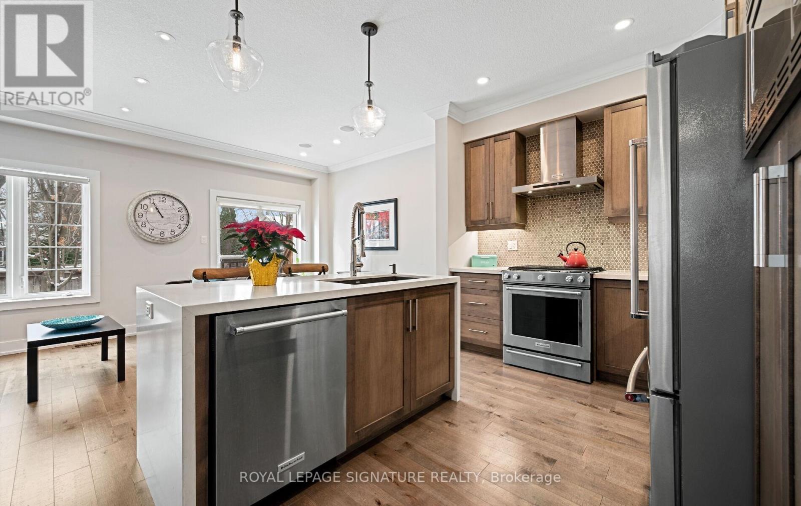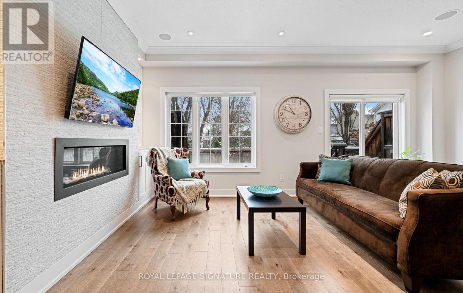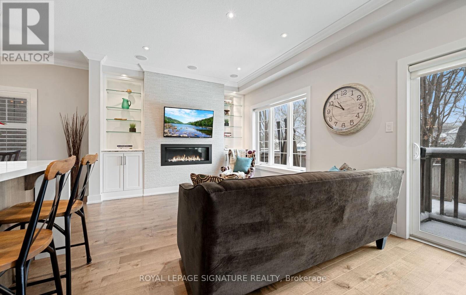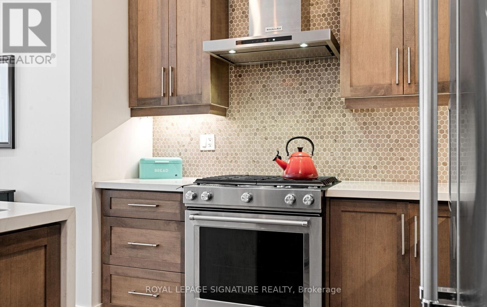 Welcome to refined executive living just moments from Downtown Burlington and the vibrant Brant Street corridor. This rare end-unit condo townhouse offers approx. 2,000 sq. ft. of beautifully finished space (1,473 sq. ft. above grade + 527 sq. ft. below), blending upscale design with unmatched urban convenience near the lakefront, boutique shops, dining, Spencer Smith Park, GO Transit, and major highways.The bright, open-concept main level features 9-ft ceilings, rich flooring, designer lighting,and expansive windows that maximize natural light-an advantage of the premium end-unit location. The chef-inspired KitchenAid kitchen impresses with custom cabinetry, a waterfall quartz island, and a 5-burner gas range, all flowing into the elegant dining and living areas.A striking stone gas fireplace with custom built-ins, a convenient 2-piece powder room, and whole-home audio with integrated home theatre elevate the space for everyday comfort and high-end entertaining.Upstairs, three generous bedrooms include a serene primary retreat with walk-in closet and spa-like ensuite. A stylish 4-piece main bath and second-floor laundry add to the thoughtful executive design.The fully finished lower level extends the lifestyle with a refined recreation room featuring wood-look flooring, LED pot lights, frosted glass doors, and a spa-inspired 3-piece bath with heated floors-ideal for a media room, office, gym, or guest suite.Smart home upgrades include Lutron lighting and Google Nest controls, providing modern comfort and efficiency.Set within a top-rated school district and close to parks, trails, and Burlington's signature waterfront, this home delivers the perfect blend of luxury, location, and lifestyle-ideal for professionals, downsizers, and families seeking executive living near Burlington's most coveted amenities. (id:4555)