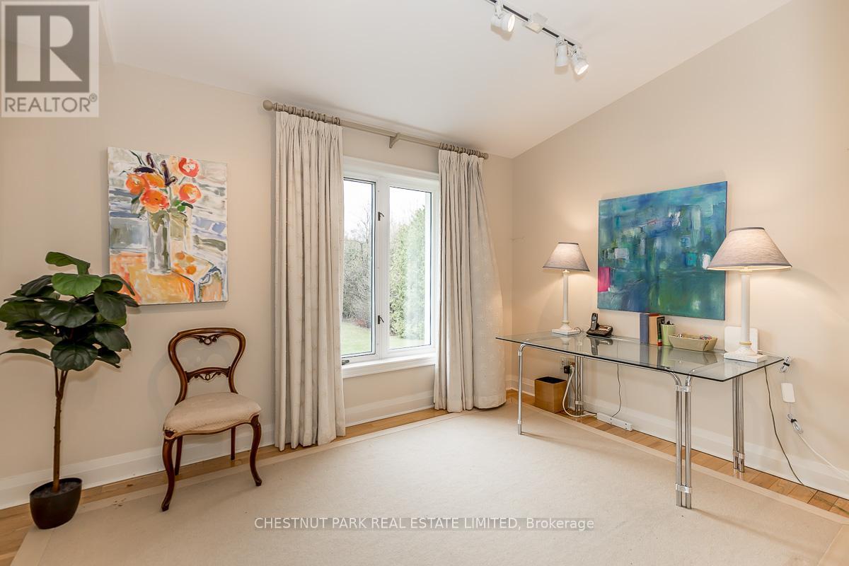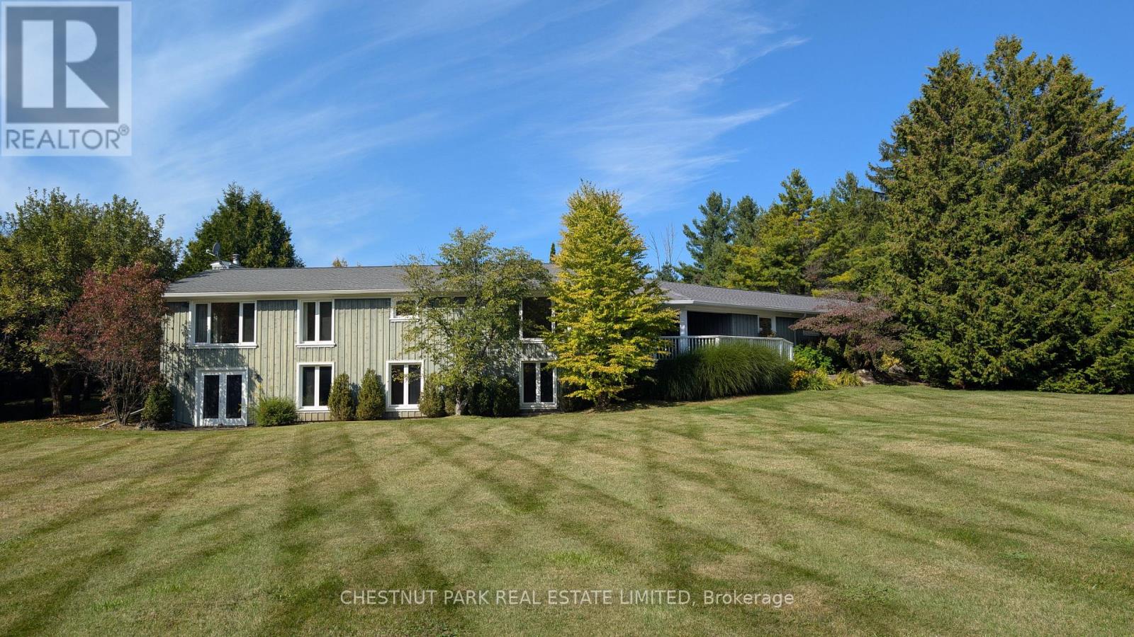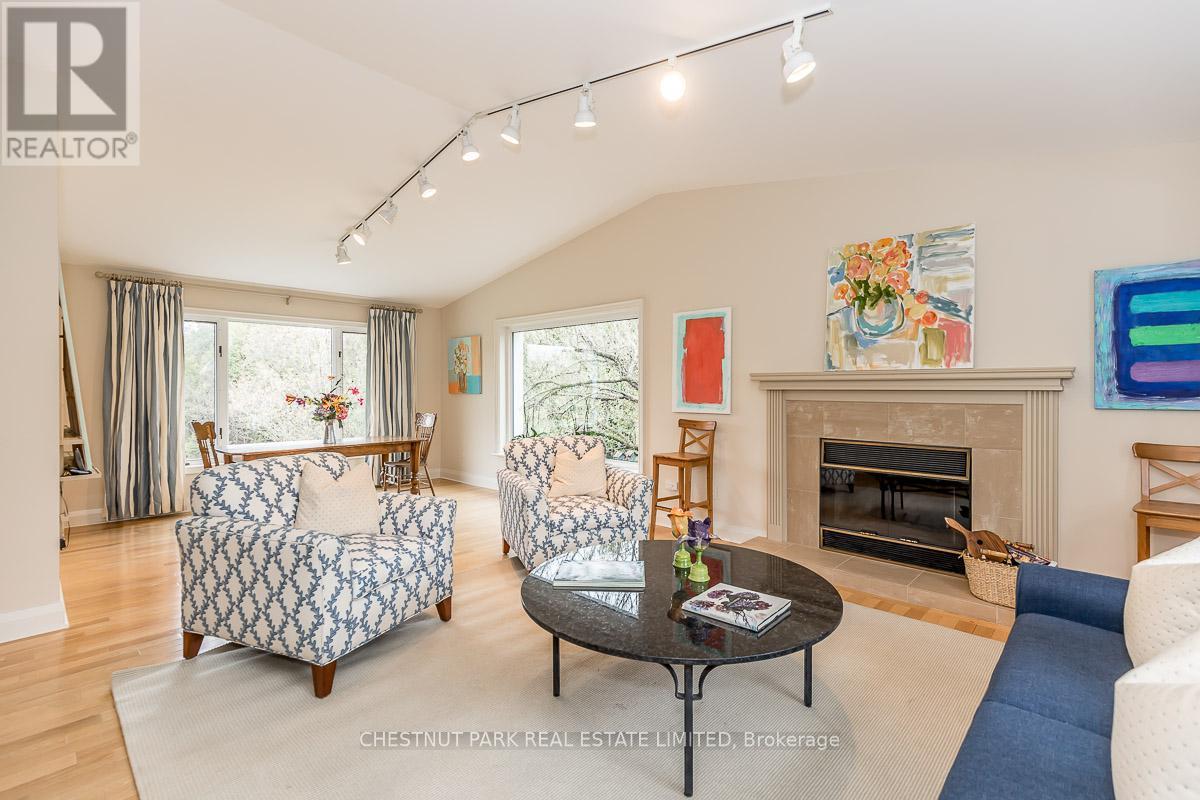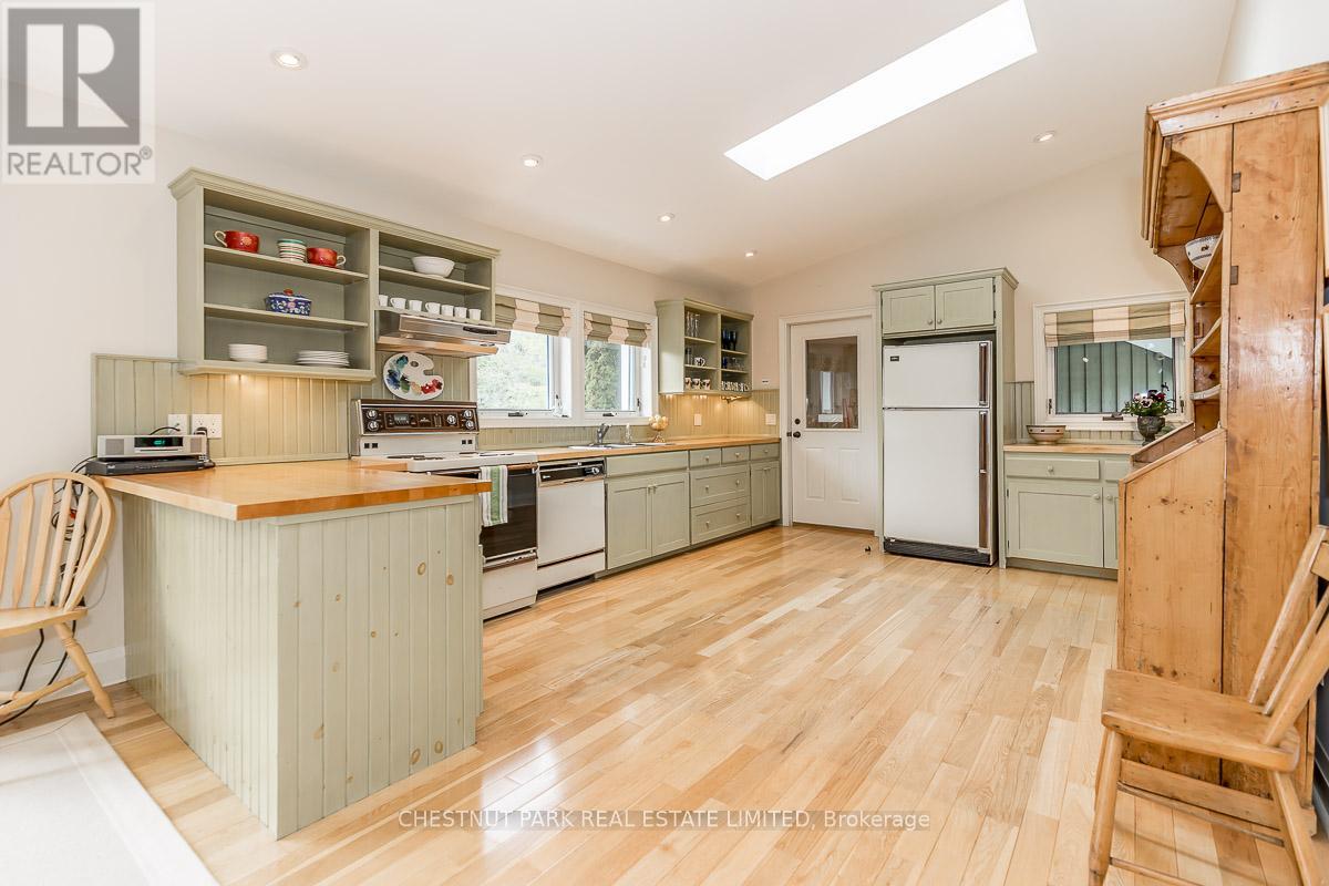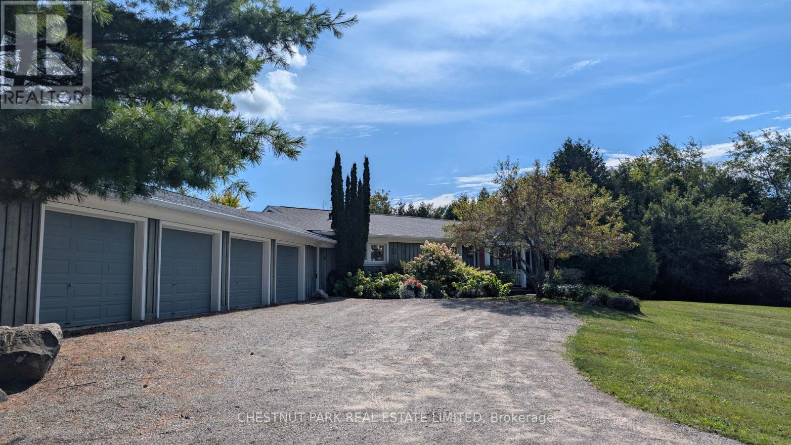 This bright sun-filled bungalow offers the perfect balance of comfort, charm, and quiet privacy! Set on 3.76 acres of peaceful countryside, with beautiful vaulted ceilings and an open-concept layout, the main floor feels spacious and inviting, ideal for everyday living and family gatherings. The living room features a cozy wood-burning fireplace and expansive windows with lovely views of the property. A spacious kitchen with a dedicated eating area provides plenty of room to create your dream culinary space. Step out to a private, covered deck, a quiet spot to enjoy morning coffee or an evening breeze. The mudroom with built-in hooks and cupboards for easy organization connects the home to an attached 4-car garage. Downstairs, the fully finished lower level offers a large family room with a gas fireplace, built-in entertainment unit, and walk-out access to a level lawn surrounded by trees perfect for kids, pets, or simply enjoying the outdoors. Well-maintained and full of potential, this is a wonderful opportunity to create your ideal family home in a peaceful, private setting. (id:4555)