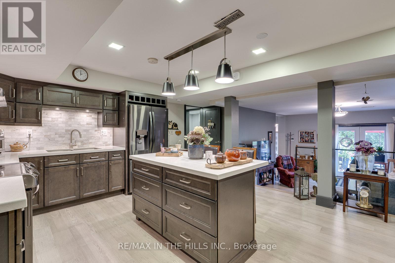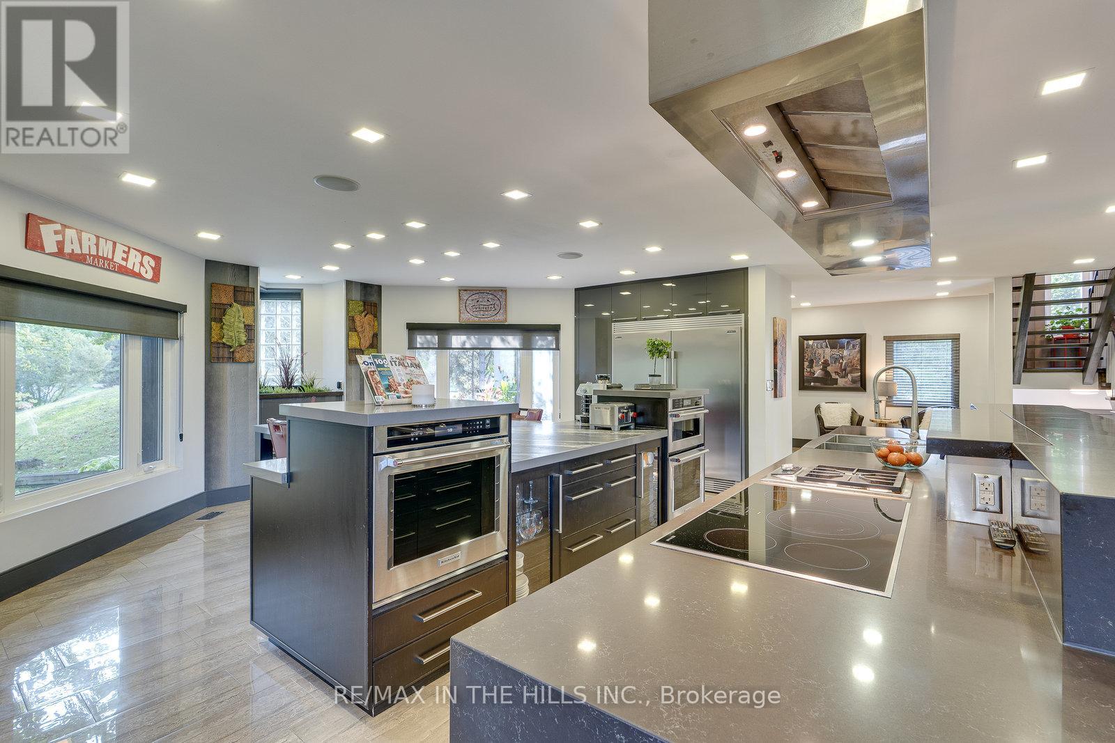 Modern Elegance Meets Natural Serenity Welcome to a truly exceptional residence where innovative design & luxurious finishes are nestled within acres of forested, park-like beauty. This fully transformed home offers a seamless blend of contemporary sophistication & natural charm. Step into the ultra-modern kitchen, thoughtfully designed for entertaining. Featuring a massive granite island, high-end appliances, double ovens, double dishwashers & a hidden telescoping TV, this space is both functional & stylish. A walk-in pantry with a separate entry adds convenience. The primary suite is a private retreat, complete with its own balcony overlooking the tranquil forest. Indulge in the unique 8-piece His & Her ensuite, showcasing a glass shower with dual heads & body jets, creating a spa-like experience. Soaring ceilings & expansive glass elements bathe the home in natural light, enhancing its open & airy ambiance. Enjoy evening sunsets or a nightcap from the third-level lookout deck, offering panoramic views of the surrounding landscape. The walk-out basement provides a comfortable & private space for extended family or guests, featuring a secondary kitchen, living area, bedroom, full bath, office & its own patio with access to vegetable gardens. A unique 4 car garage includes a dedicated workshop & a rear bay door to access the yard. Wonderful landscaping with easy-care gardens surrounding the backyard fire pit are perfect for BBQs & marshmallow roasting. A flat grassy area has room for soccer games & a secondary driveway offers ample space for spillover parking or even a spot for your RV. Rarely does a property of this caliber become available in such an established rural subdivision. With its unmatched amenities & serene setting, this home is a must-see. Schedule your private tour today & experience the perfect harmony of luxury & nature. (id:4555)