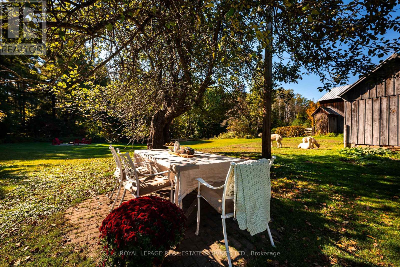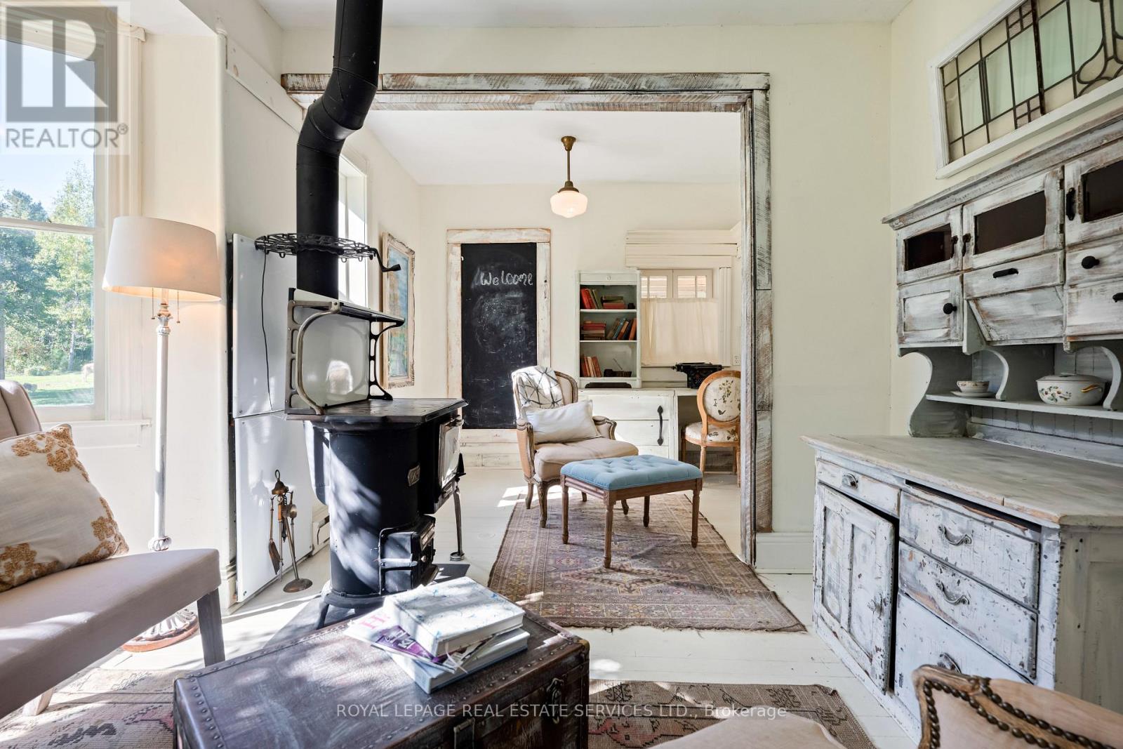 Two homes and one magical location, perfect for homesteading nestled on 25.5 acres of carefully maintained with organic practices under the protection of the Nottawasaga Conservation and (Oakridge Moraine protection easement). For over a decade, this land has been organically maintained, loved, nurtured, and left unharmed by chemicals ready for your next chapter of slow, meaningful living. The main residence is a love letter to simpler days, with original wide plank floors, a wood-burning fireplace in the kitchen, and a layout that invites warmth and connection. Share casual meals around the kitchen island or gather for unforgettable dinners in the grand dining room with hidden pantry. The living room radiates rustic elegance, while every bedroom holds its own kind of magic. The primary retreat includes a walk-in closet, studio space, and a fully wheelchair-accessible bathroom. A bright and airy sunroom offers the perfect place to sip morning coffee, read a book, or simply watch the seasons unfold in quiet beauty. A completely separate guest cottage provides space for visitors or 'Airbnb' potential, but with so much serenity, you may choose to keep it all to yourself. With so many areas to relax, indoors and out, there's no need for a cottage escape when you have it all right here. Geothermal and baseboard heating, plus wood fireplaces, keep the home efficient and cozy. A fresh spring-fed well provides excellent water potability, while a spring-fed pond adds a touch of wild beauty to the landscape. Surrounded by hundreds of acres of protected forest, you'll enjoy unmatched privacy, your own network of trails for hiking, snowshoeing or skiing, and the joy of watching animals roam freely or cared for in pens and a charming chicken coop. Just 25 minutes to Orangeville and a short drive to Hockley Valley. Imagine living the dream in this magical location that can be fully sustainable. (id:4555)