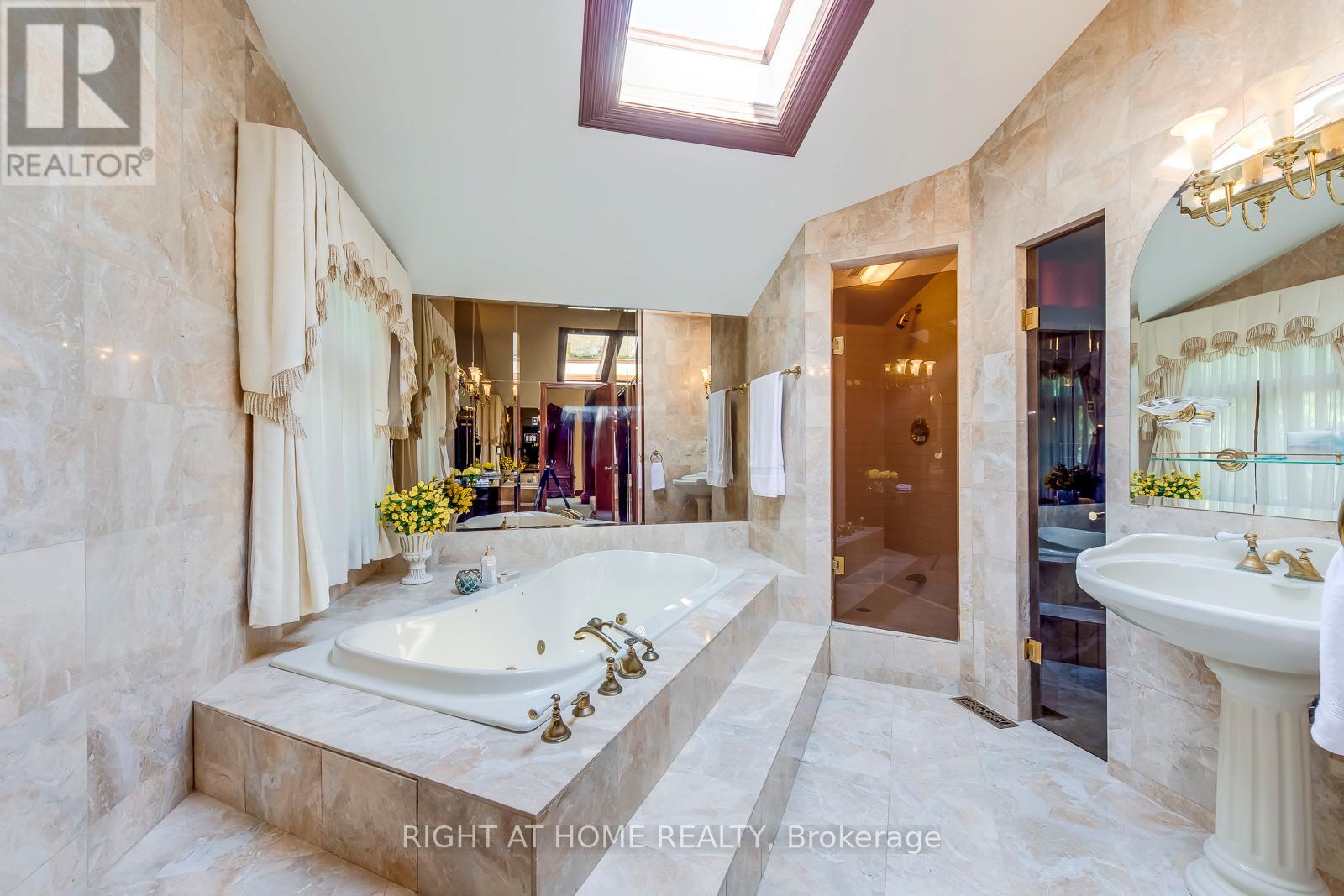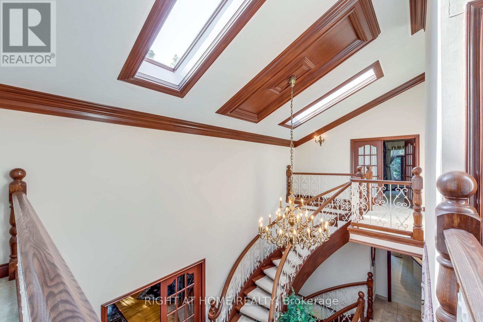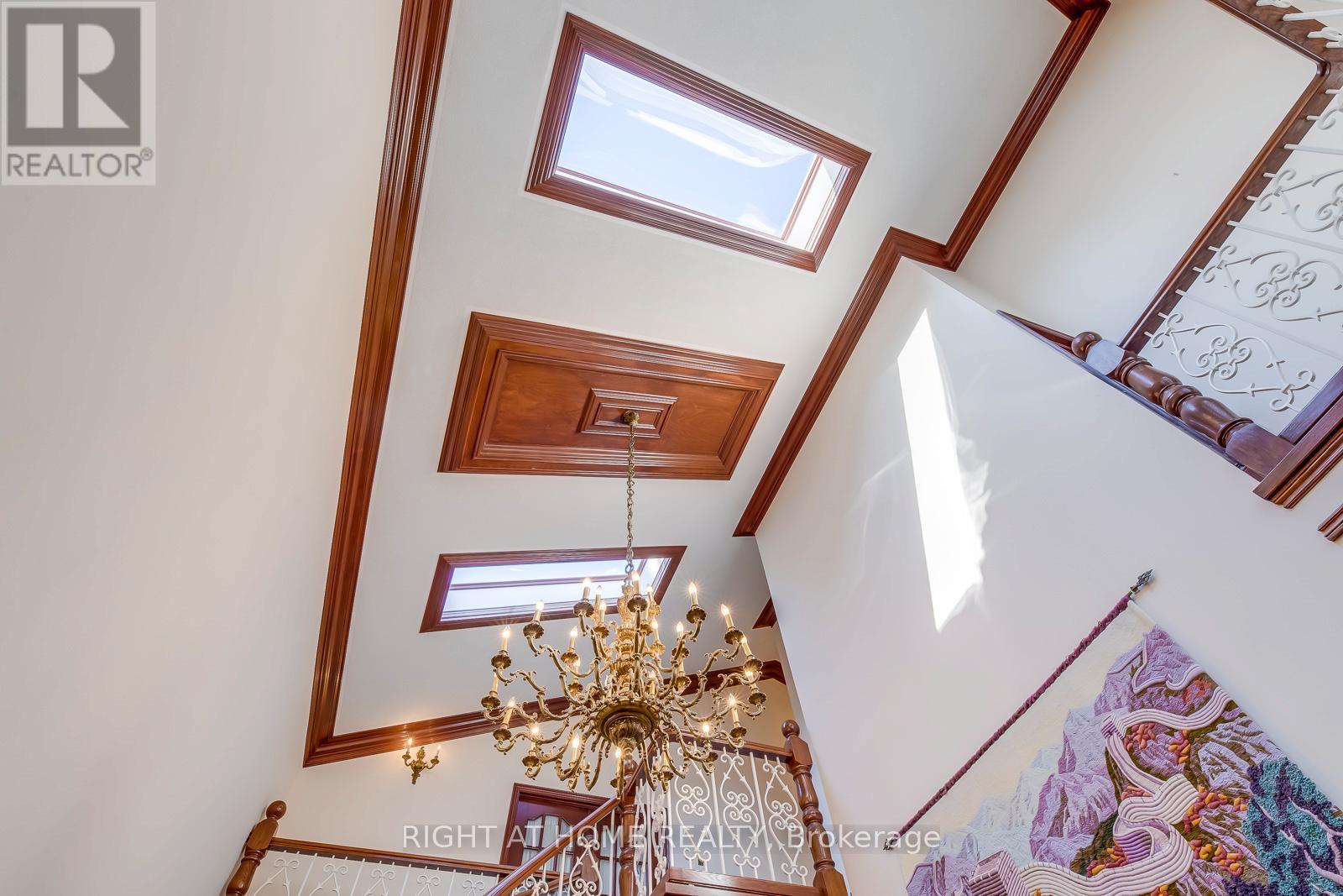 Experience refined living at its finest in this extraordinary custom-built estate, where timeless elegance meets superior craftsmanship. From the moment you step through the beautifully landscaped stone-walled courtyard and into the grand foyer, every detail speaks to exceptional quality and thoughtful design. Soaring cathedral ceilings with three skylights bathe the interior in natural light, while striking wrought iron and oak floating staircases add architectural drama and sophistication. This five-bedroom residence offers a seamless blend of luxury and comfort, featuring multiple stone and wood-burning fireplaces, rich crown moulding throughout, and spa-inspired marble bathrooms. The intelligently designed layout is both spacious and functional, ideal for everyday living and lavish entertaining. A rare 4-car garage, with total parking for up to 12 vehicles, provides ample space for guests and family alike. The fully finished lower walkout basement is a true retreat, complete with a private fitness studio, an elegant recreation lounge with custom made wet bar, a relaxing spa room, sauna, and a cozy fireplace, perfect for unwinding or hosting in style. A rare opportunity to own a home where elegance, warmth, and comfort come together in perfect harmony. (id:4555)